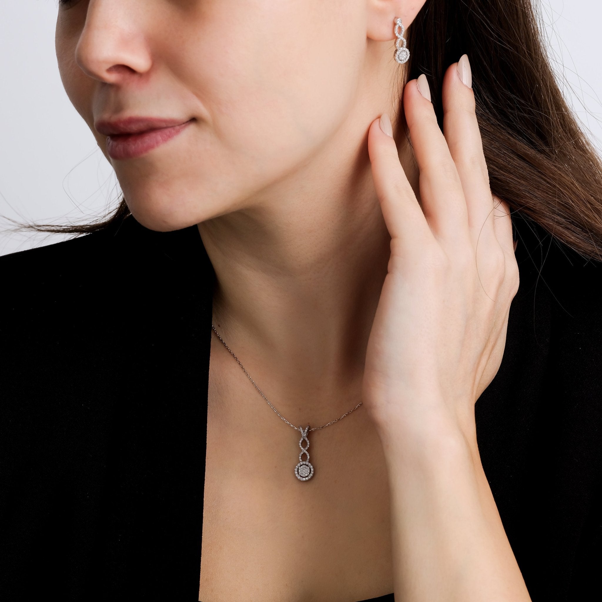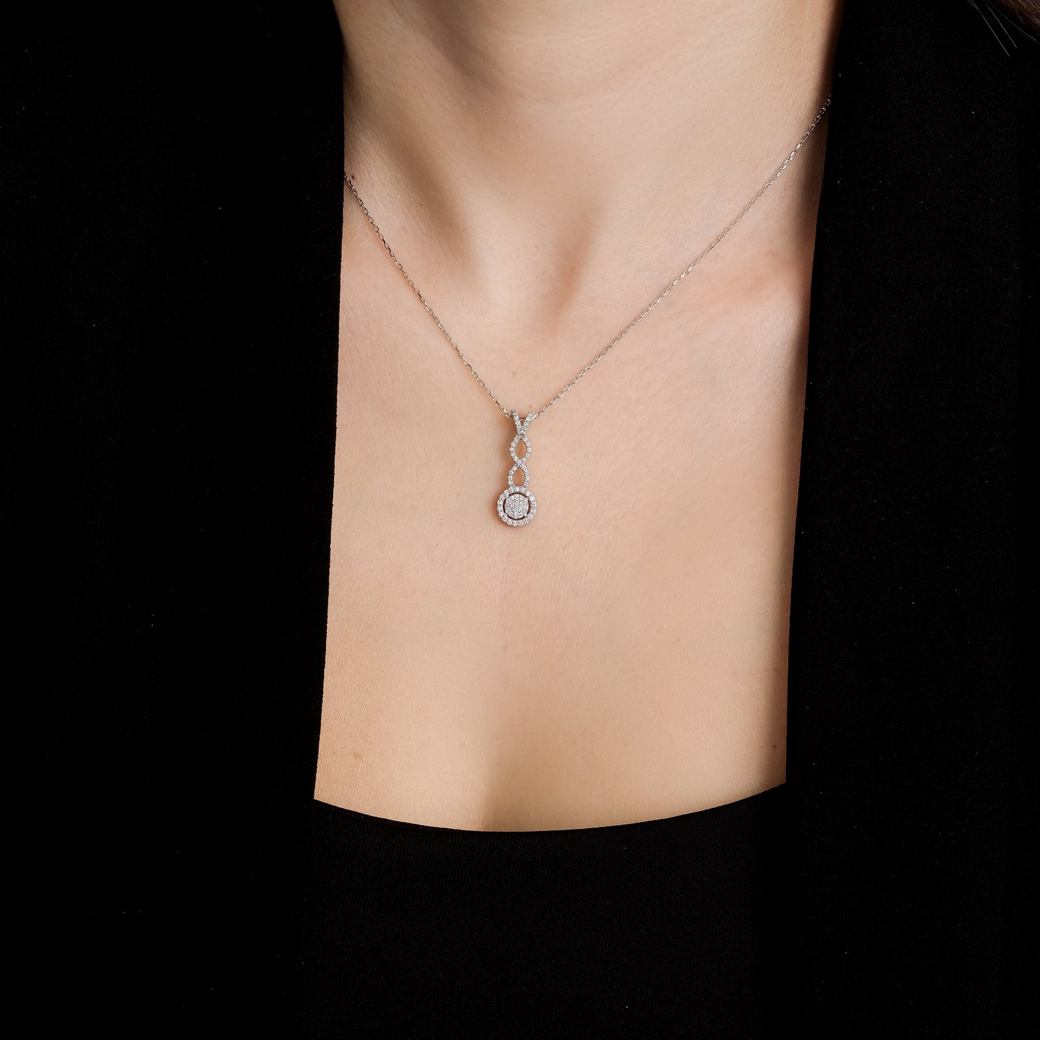 0.30 Karat Yuvarlak Kesim Pırlanta Özel Tasarım Kolye modeli, yaklaşık 4.45 gr ağırlığında 14 Ayar Beyaz Altın kullanılarak özel olarak tasarlanmıştır.