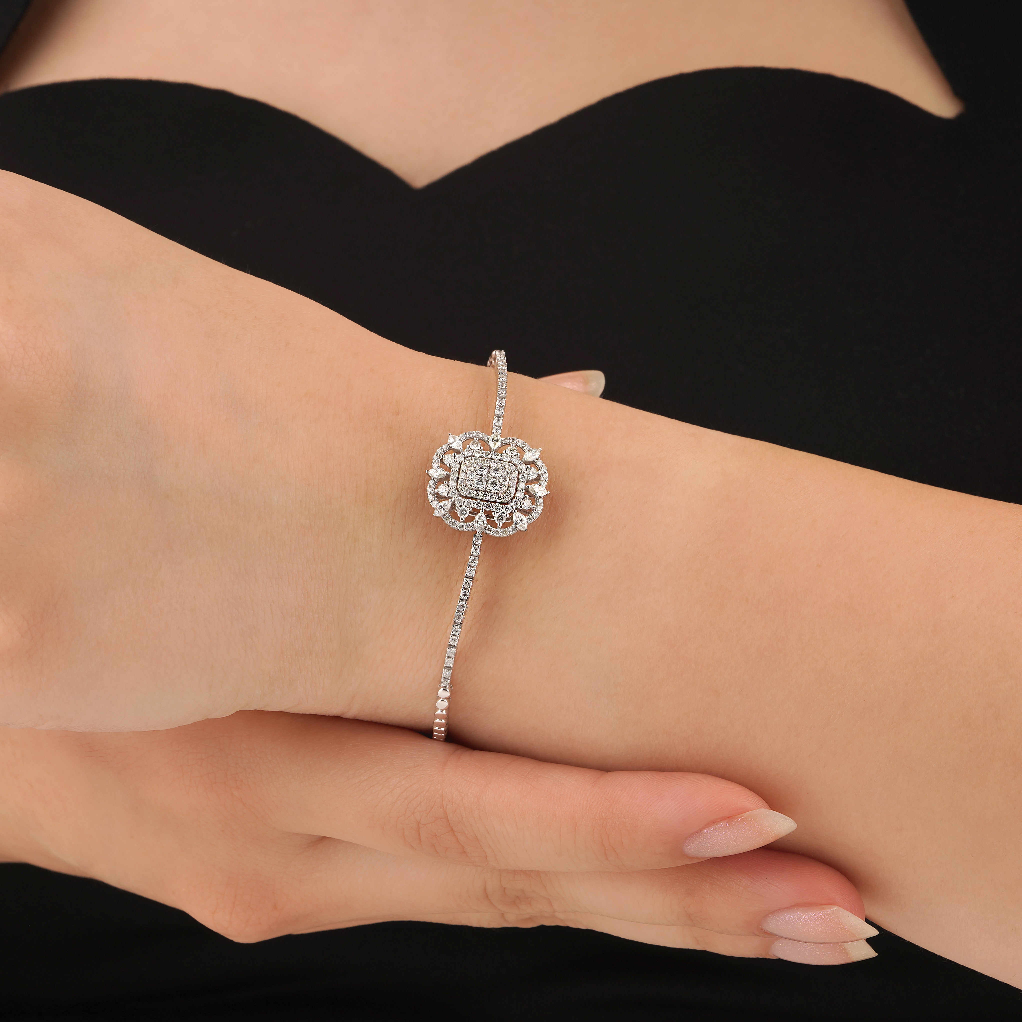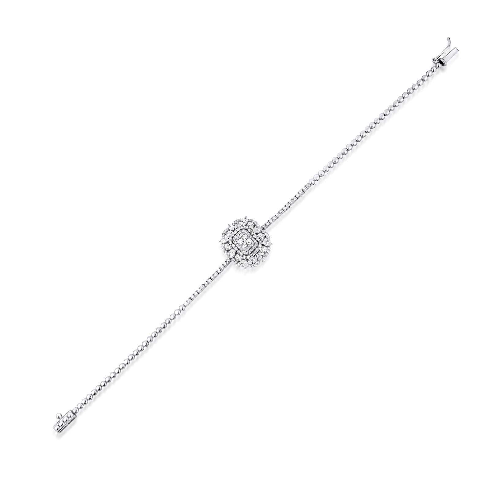 1.20 Karat Pırlanta Tasarım Bileklik modeli, yaklaşık 6.96 gr ağırlığında 14 Ayar Beyaz Altın kullanılarak özel olarak tasarlanmıştır.