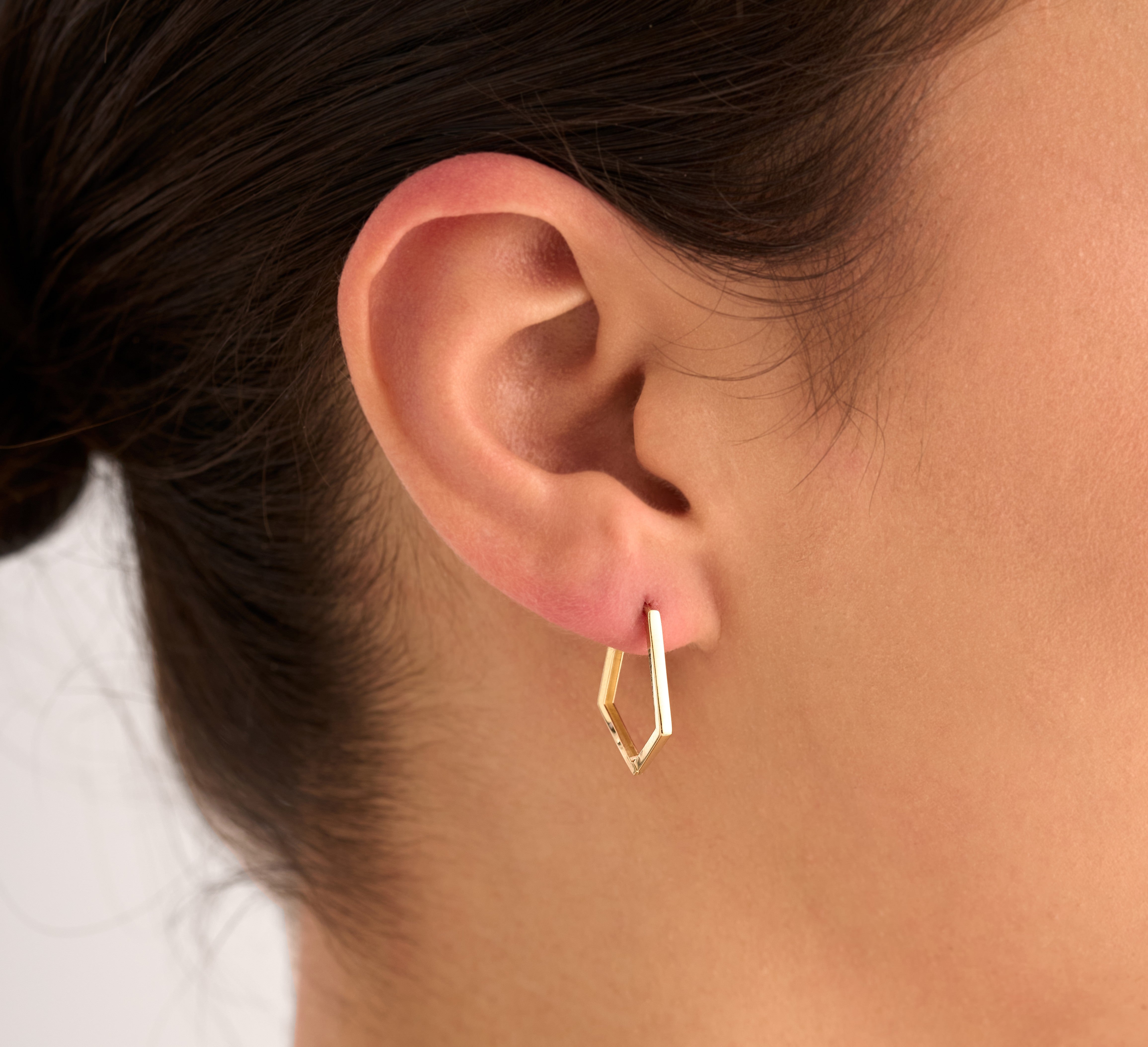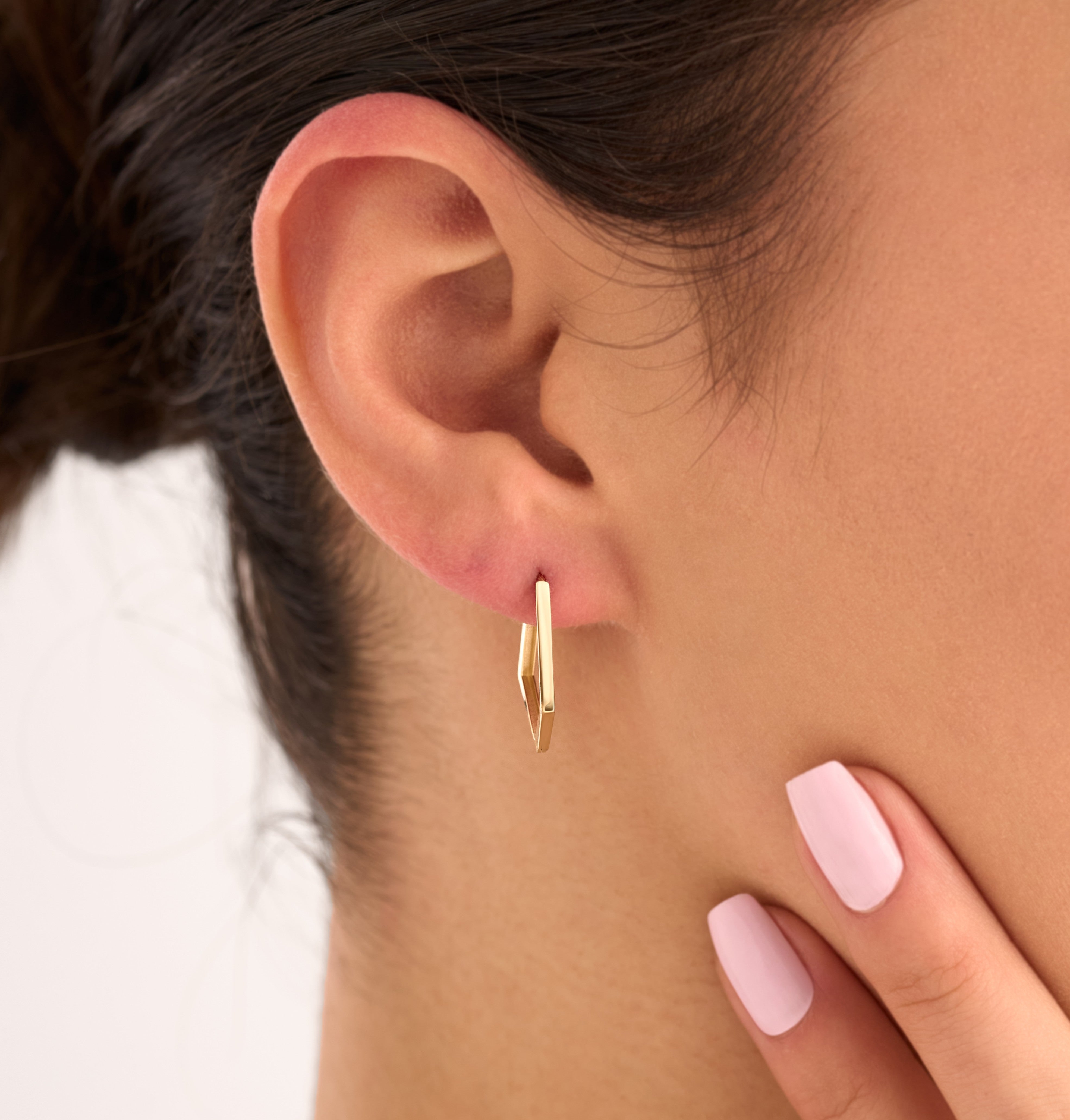Özel Tasarım Kıte model Altın Küpe modeli, yaklaşık 1.55 gr ağırlığında 14 Ayar Sarı Altın kullanılarak özel olarak tasarlanmıştır.