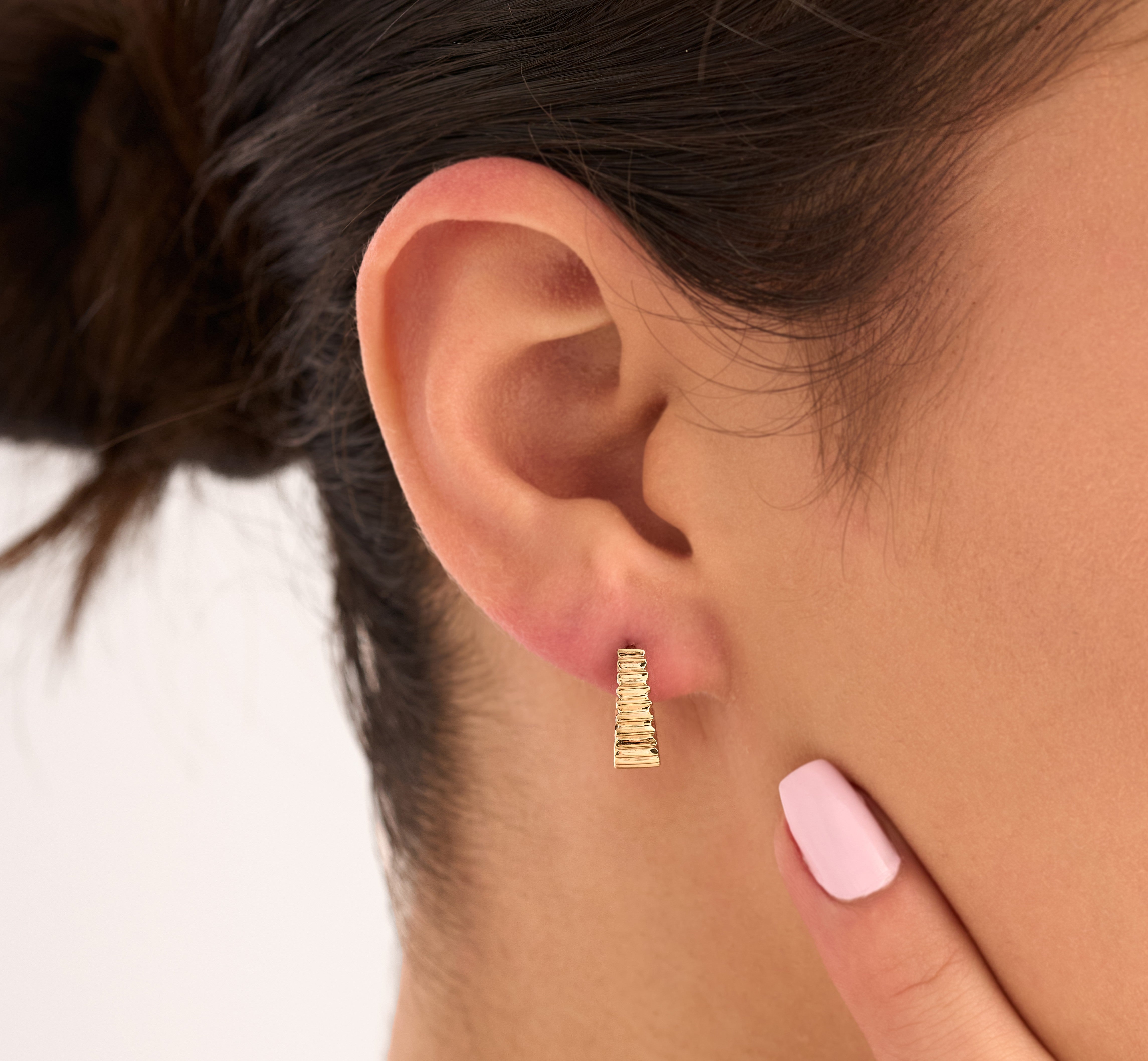 Özel Tasarım Küpe modeli, yaklaşık 3.19 gr ağırlığında 14 Ayar Sarı Altın kullanılarak özel olarak tasarlanmıştır.