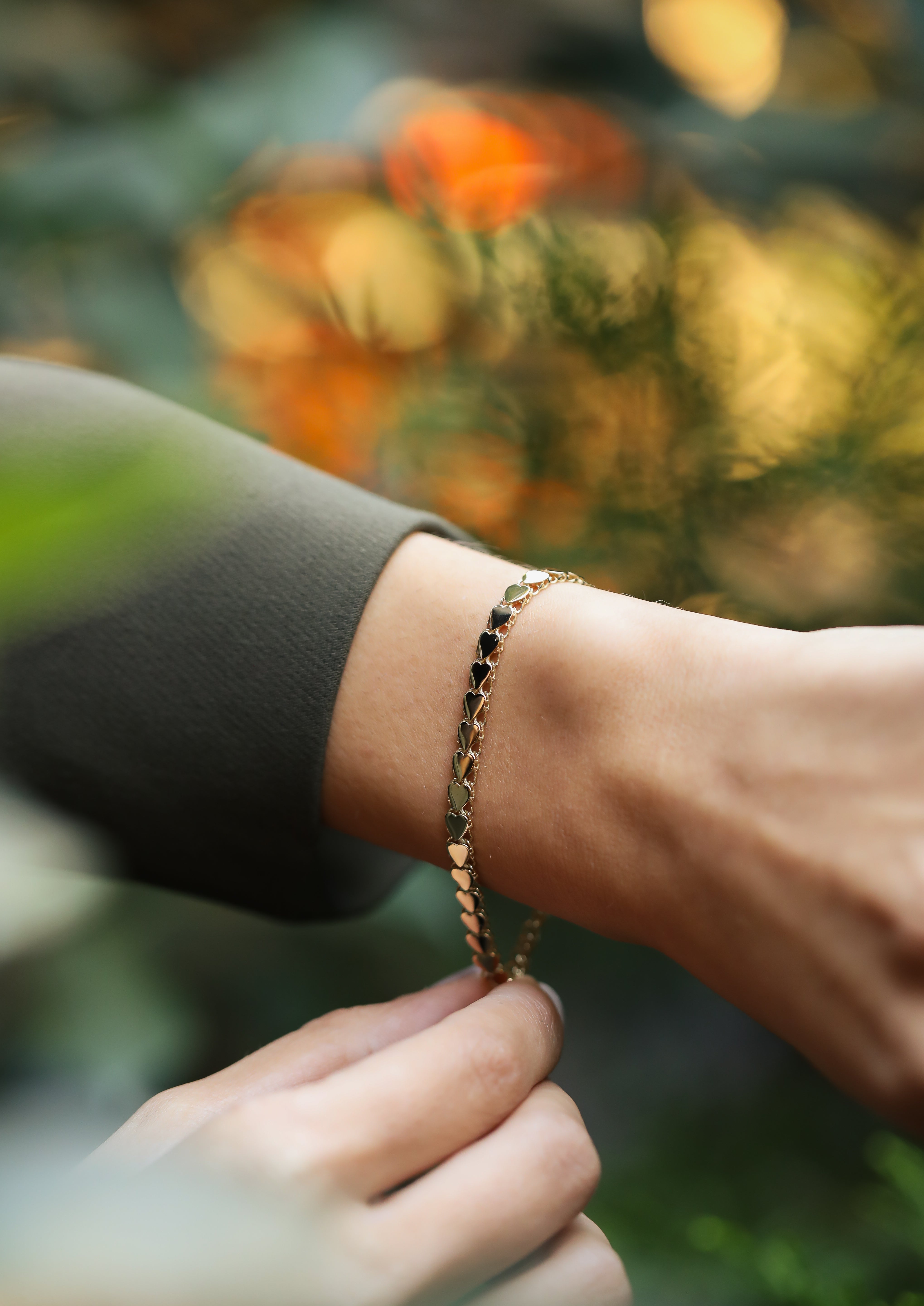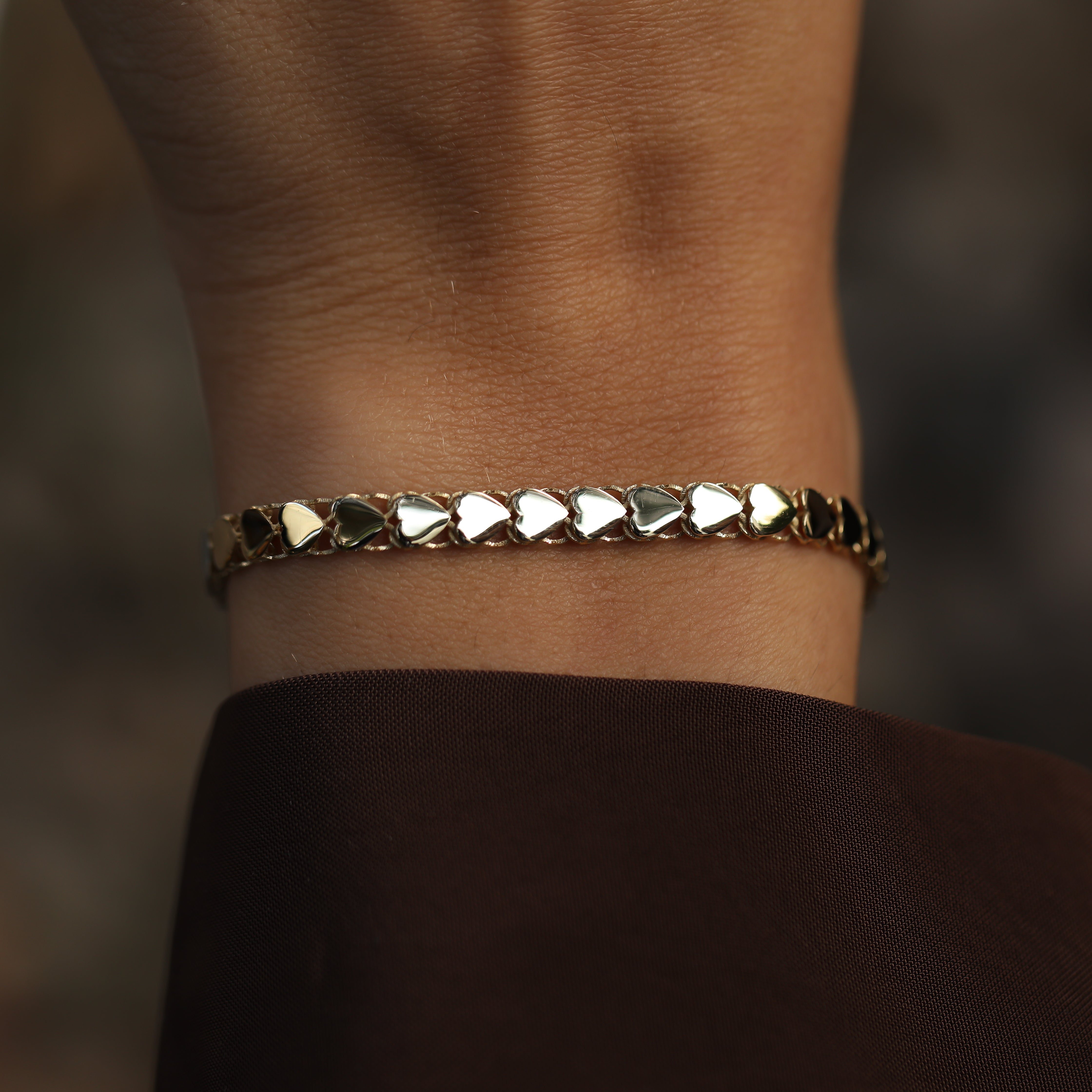 Kalp Halkalı Minimal Bileklik modeli, yaklaşık 4.77 gr ağırlığında 14 Ayar Sarı Altın kullanılarak özel olarak tasarlanmıştır.