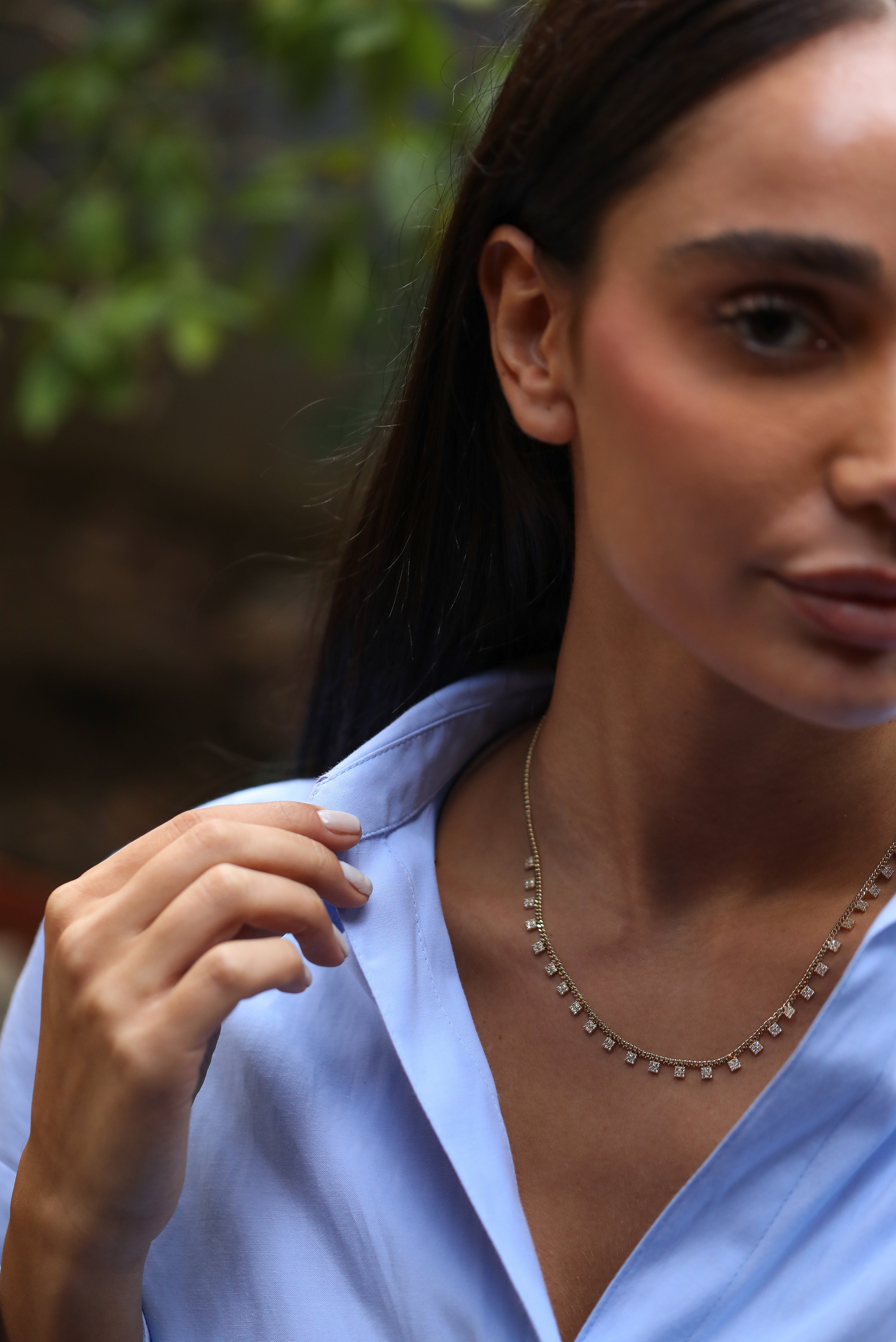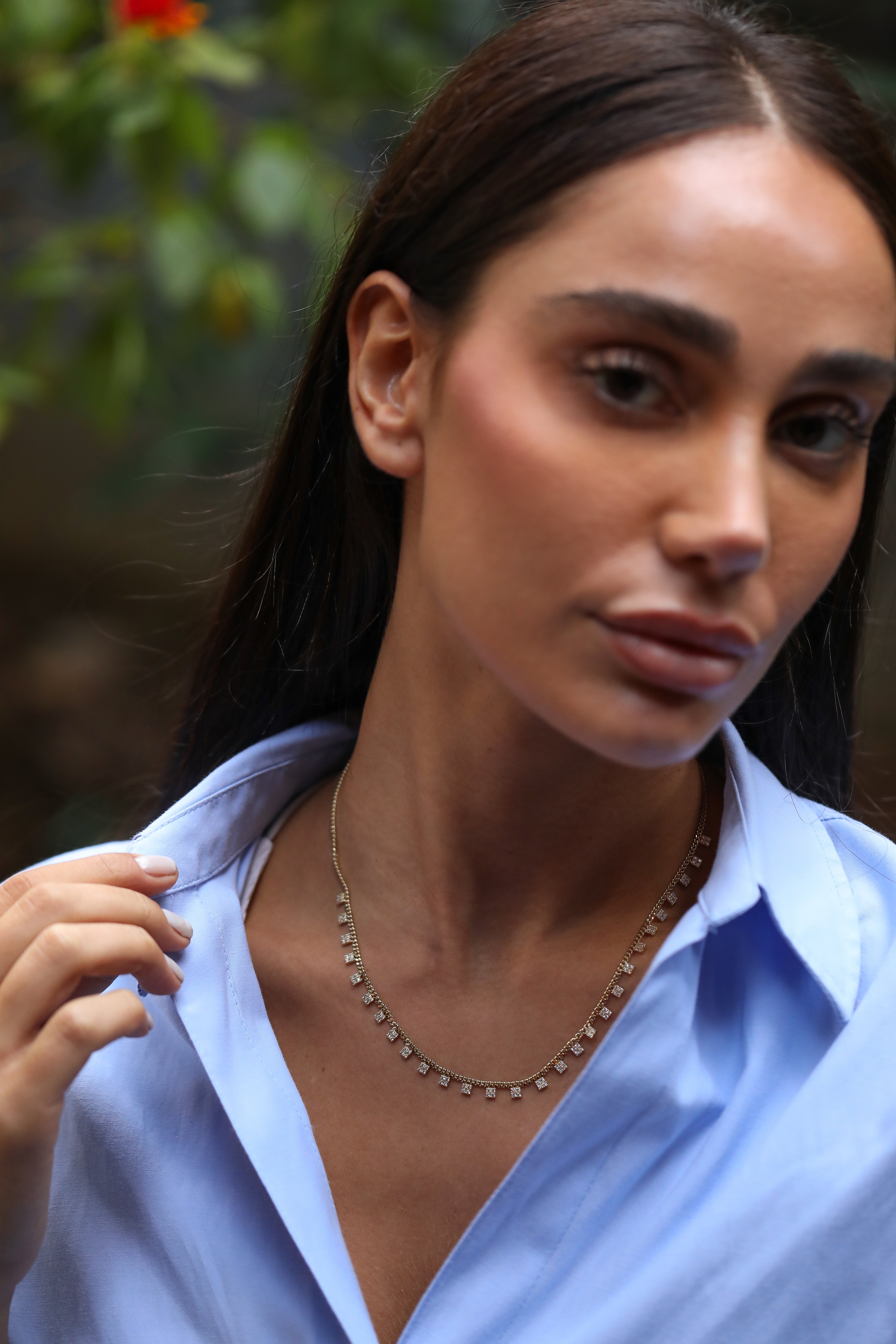 Kare Sallantılı Pırlanta Kolye modeli, yaklaşık 10.09 gr ağırlığında 14 Ayar Sarı Altın kullanılarak özel olarak tasarlanmıştır.