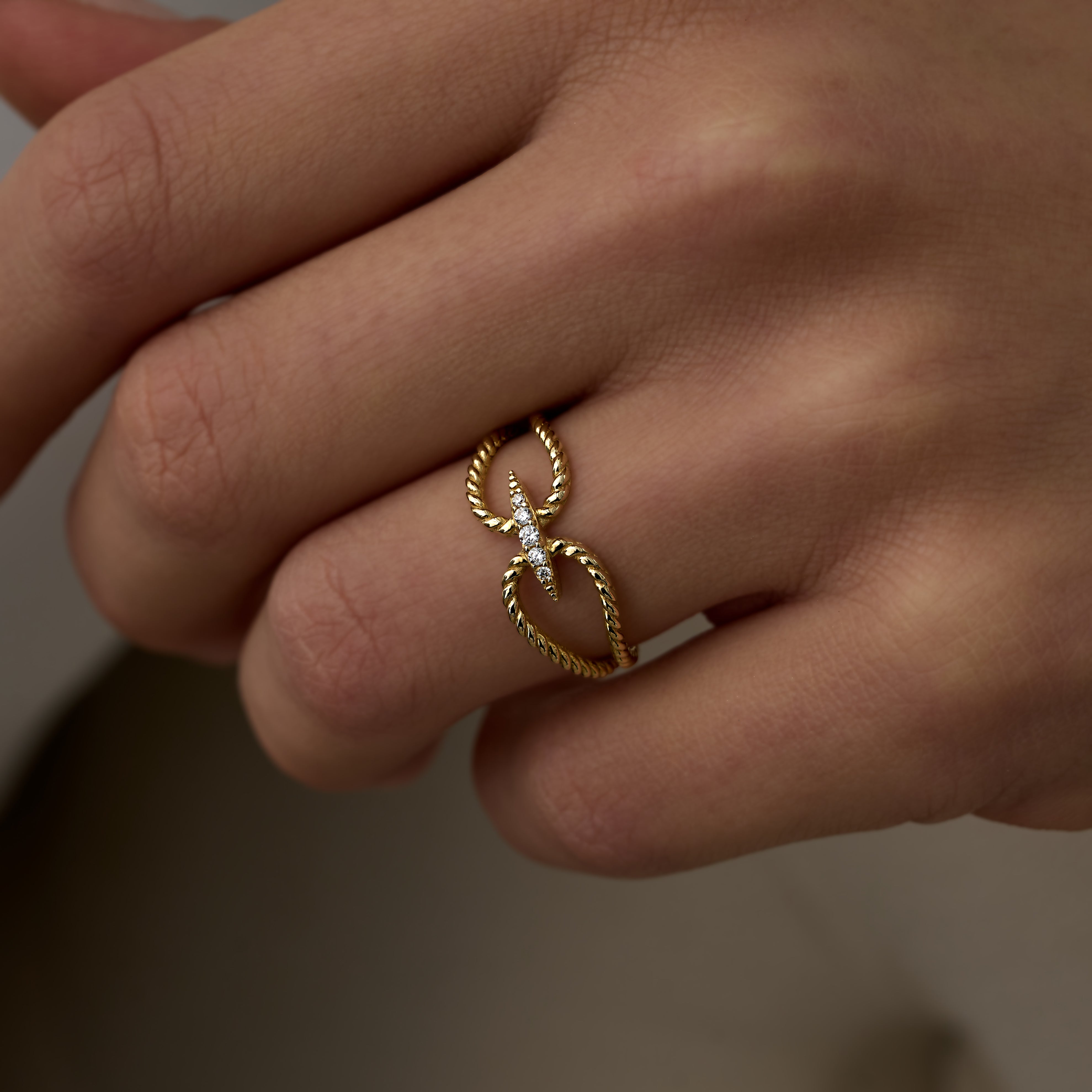 14 Ayar Minimal Çift Burgulu Vintage Altın Yüzük RG029