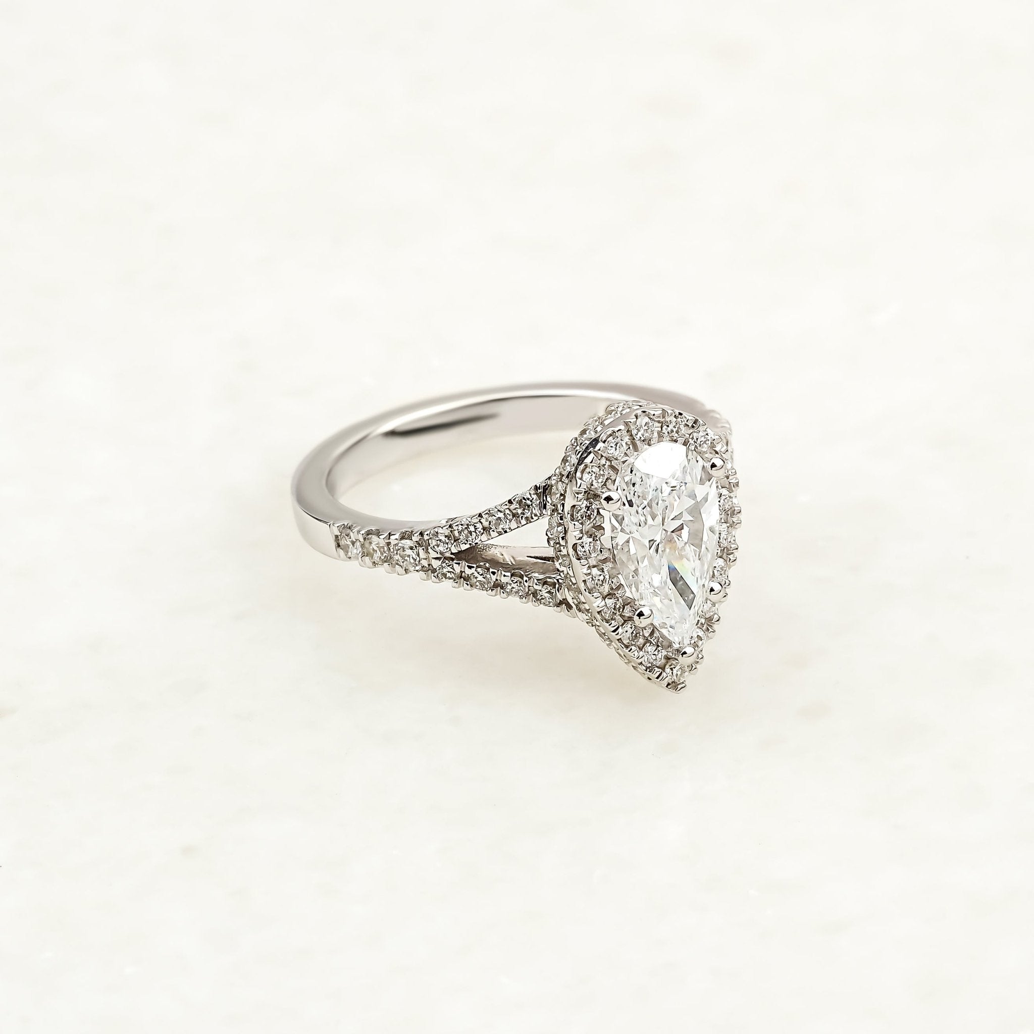 0.90 Karat Merkez Damla & 0.30 Karat Kenar GIA Sertifikalı Pırlanta Tasarım Yüzük modeli, yaklaşık 1.20 gr ağırlığında 14 Ayar Beyaz Altın kullanılarak özel olarak tasarlanmıştır.