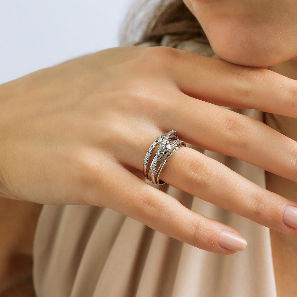 0.42 Karat Pırlanta Yüzük modeli, yaklaşık 5.00 gr ağırlığında 14 Ayar Beyaz Altın kullanılarak özel olarak tasarlanmıştır.