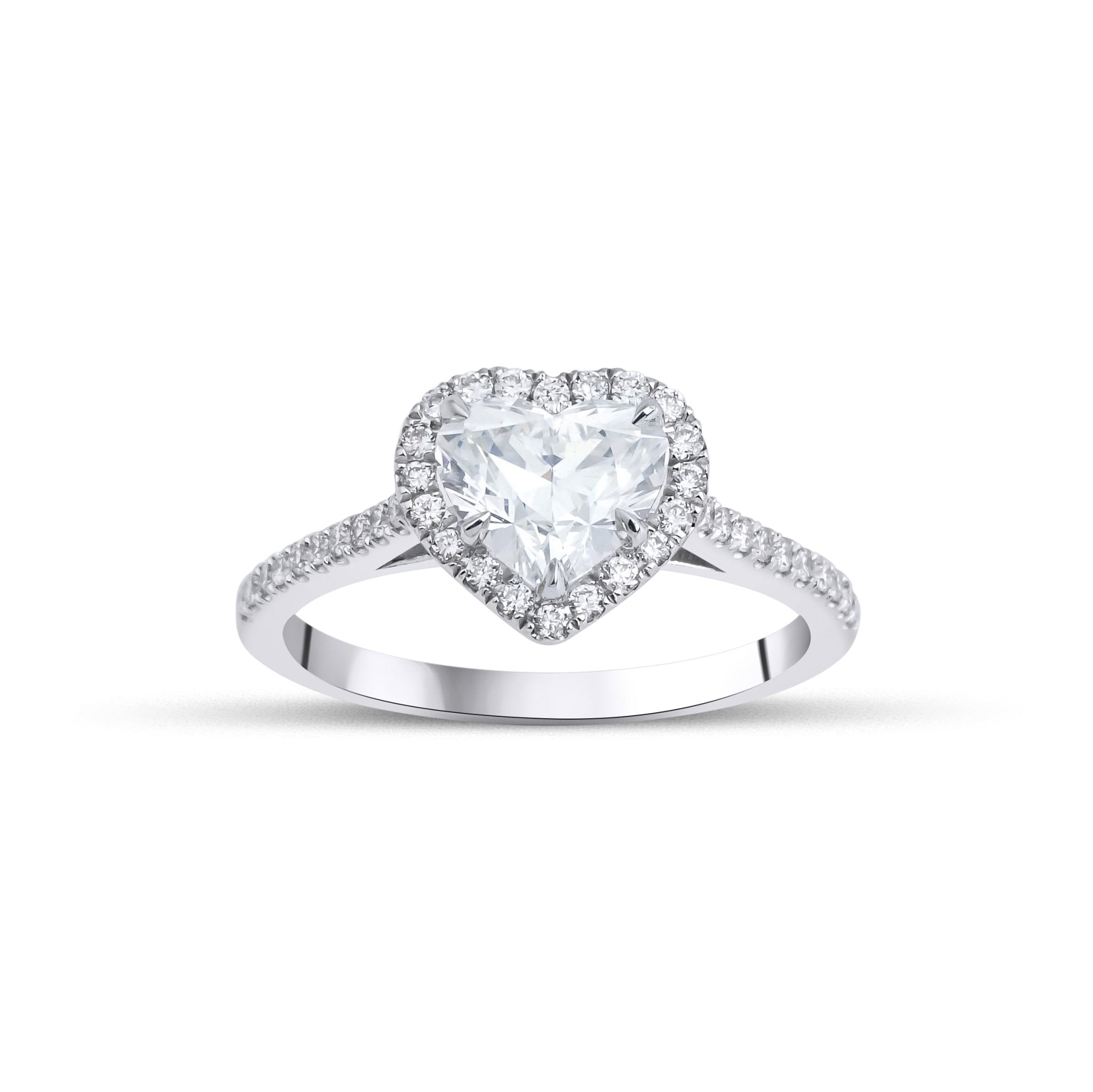 1.30 Karat Kalp Kesim GIA/HRD Sertifikalı Tektaş Pırlanta Yüzük modeli, yaklaşık 4.22 gr ağırlığında 14 Ayar Beyaz Altın kullanılarak özel olarak tasarlanmıştır.