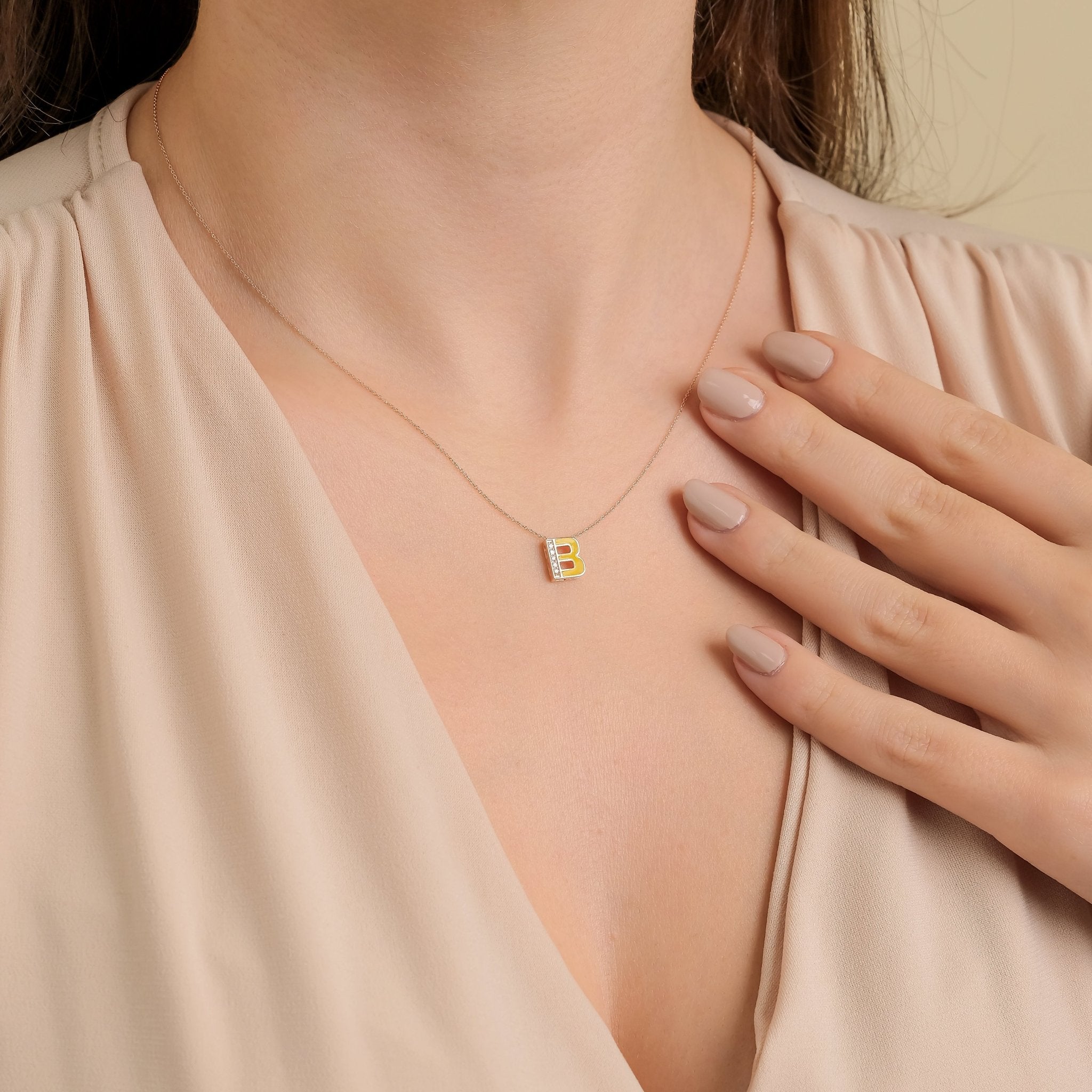 0.09 Karat Pırlanta Renkli Harfli Kolye - RNF0946 | Pırlanta Kolye | Ronaff Pırlanta | Tektaş Yüzük, Pırlanta Yüzük, Kolye, Küpe