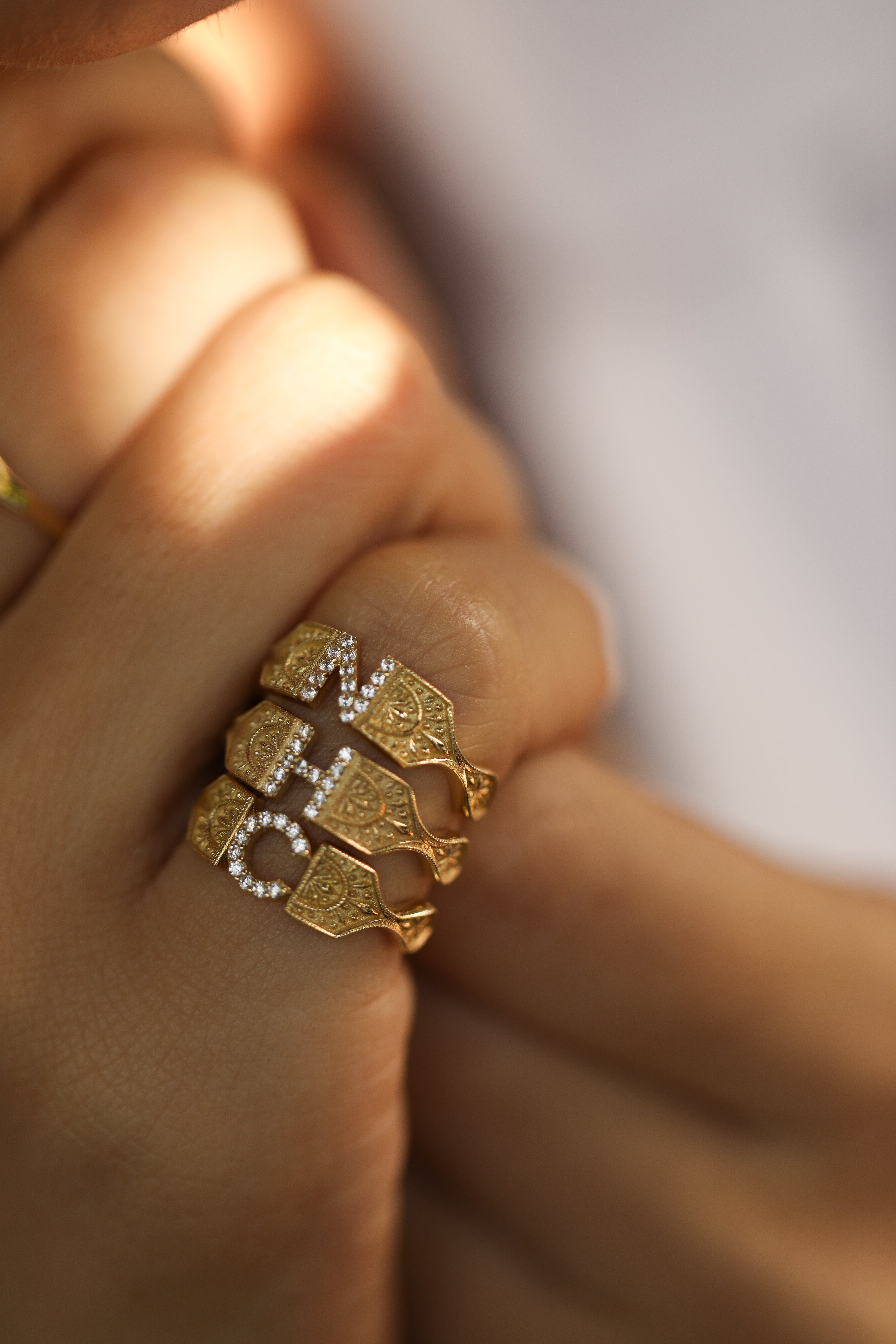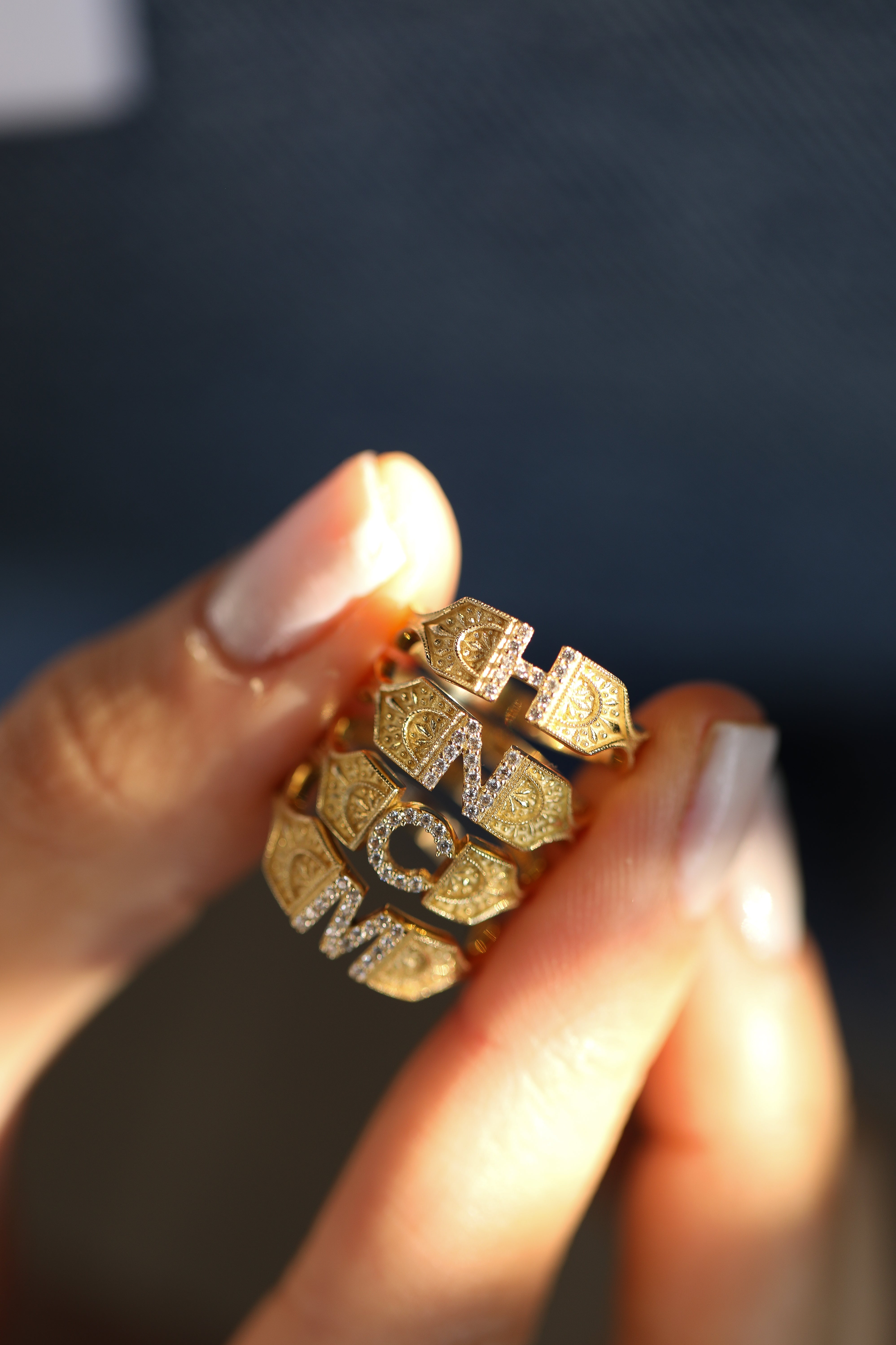Vintage N Harf Pırlanta Yüzük modeli, yaklaşık 1.79 gr ağırlığında 14 Ayar Sarı Altın kullanılarak özel olarak tasarlanmıştır.