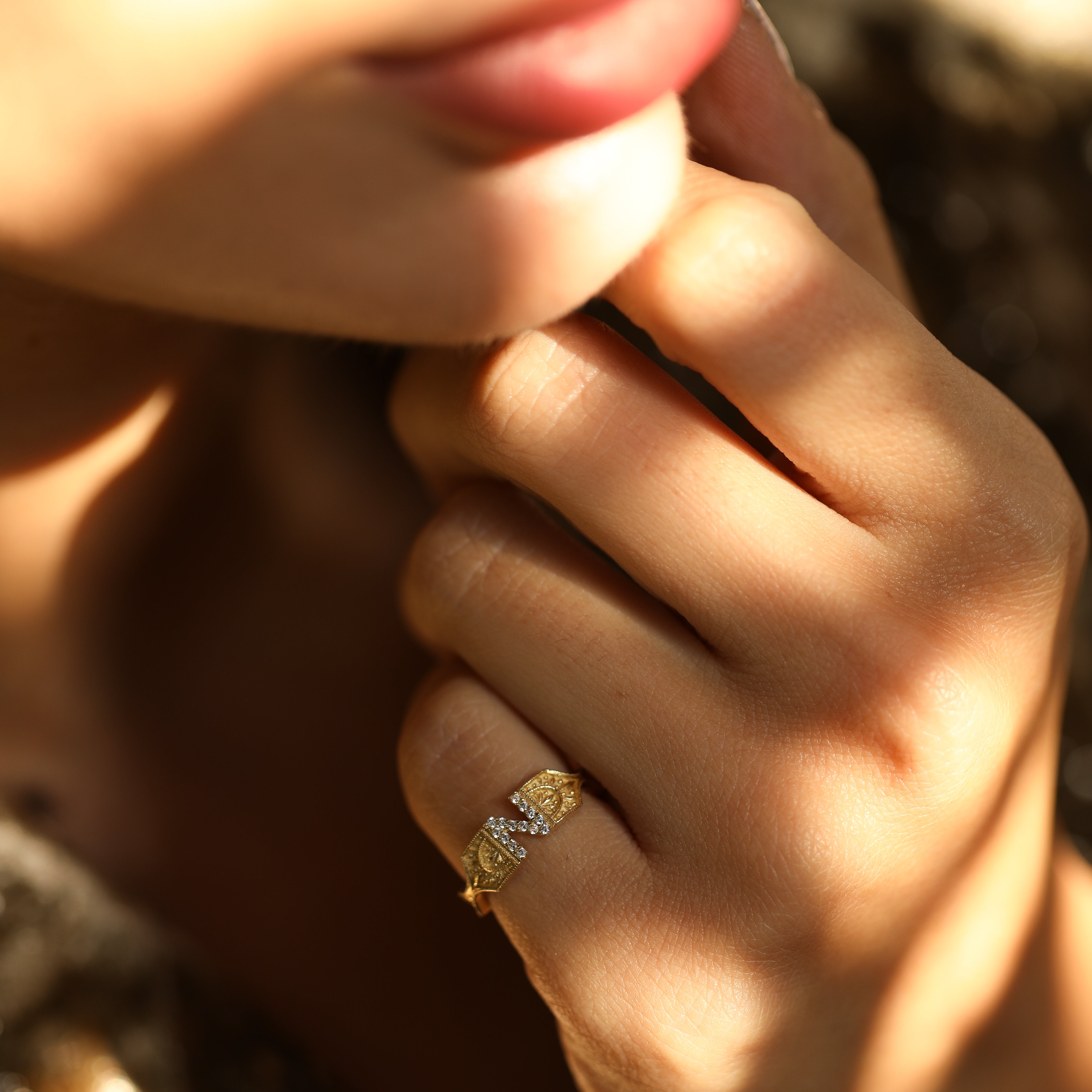 14 Ayar Vintage N Harf Pırlanta Yüzük RG044