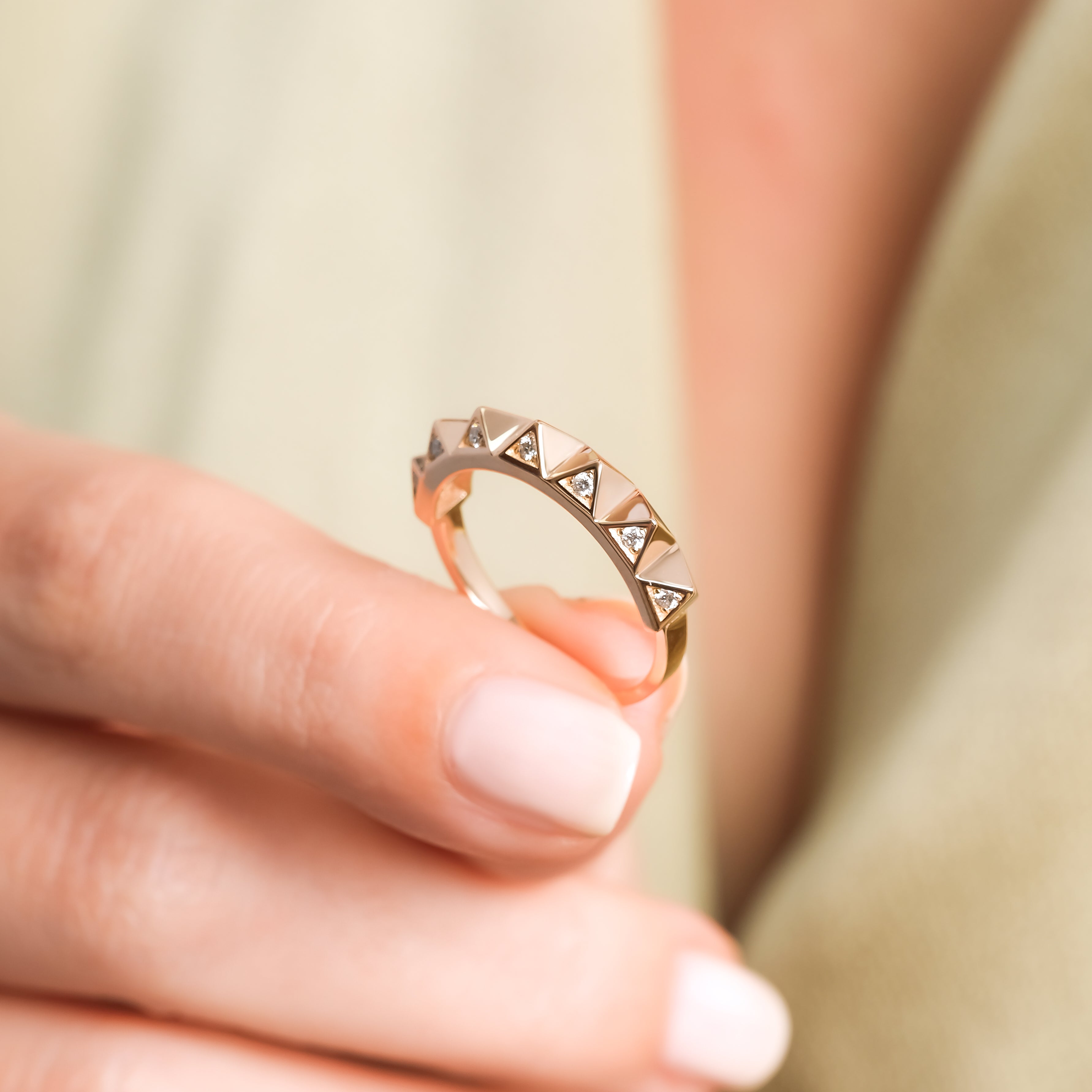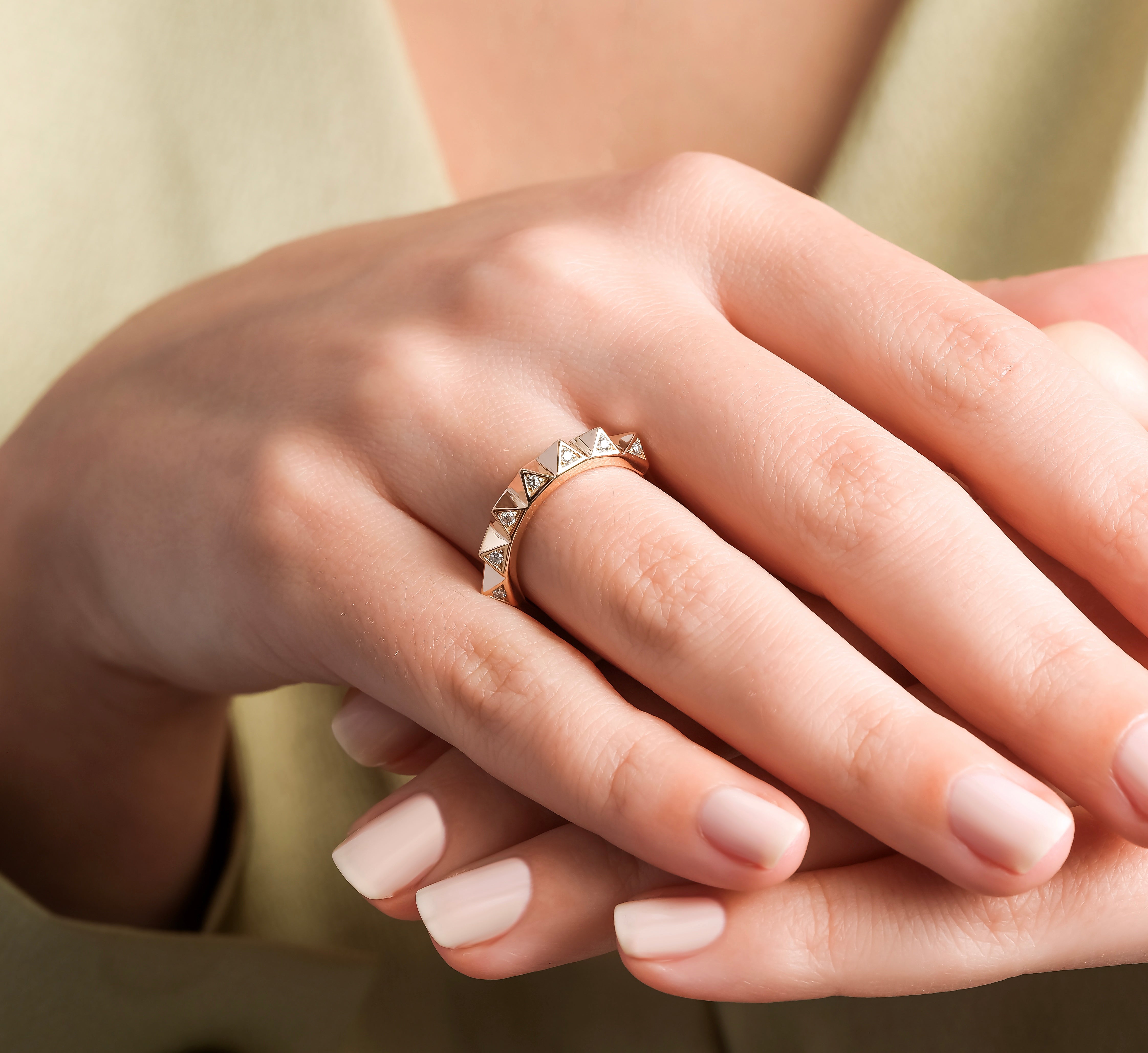 0.10 Karat  Pırlantalı Vintage Yüzük modeli, yaklaşık 3.21 gr ağırlığında 14 Ayar Rose Altın kullanılarak özel olarak tasarlanmıştır.