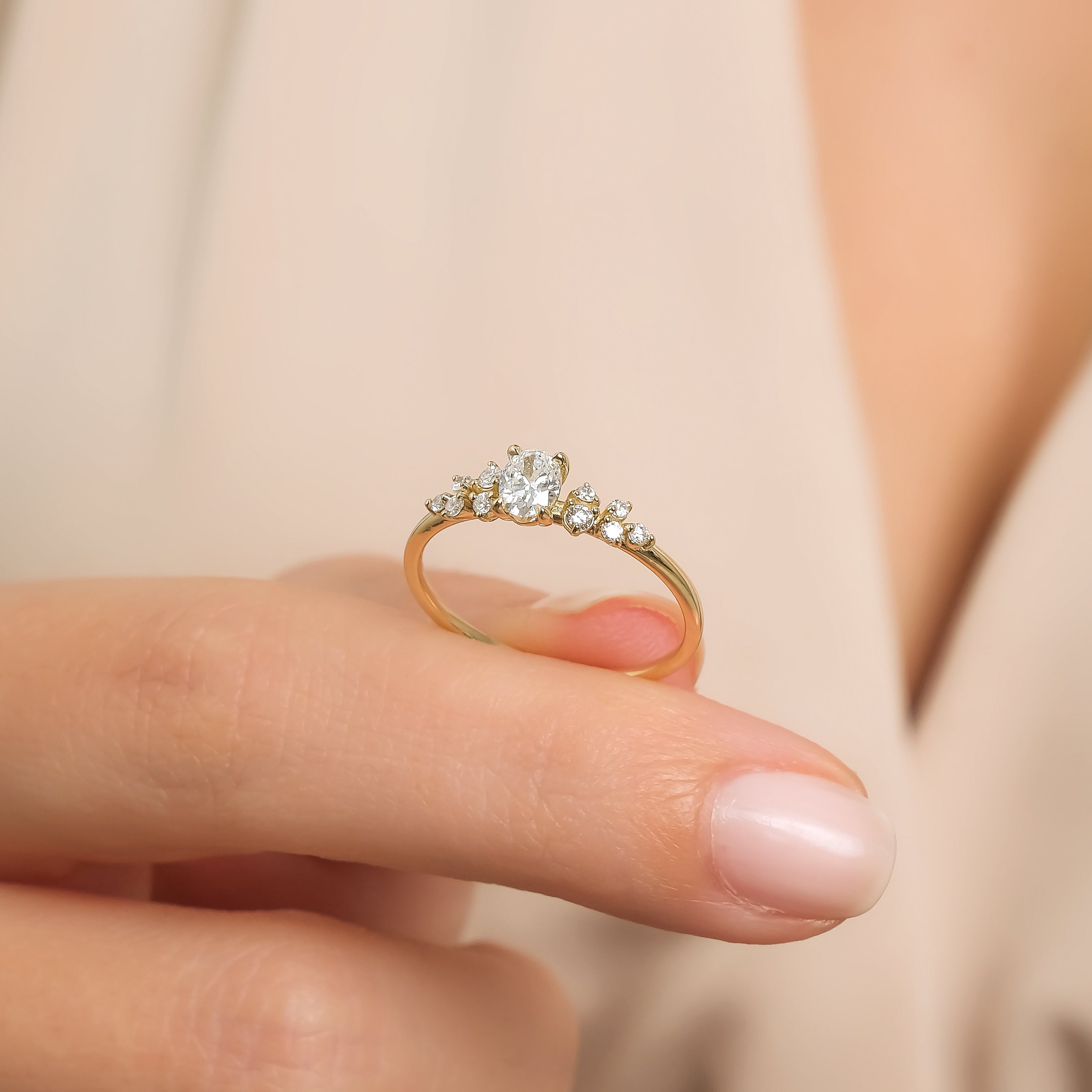 0.30 Karat Oval & 0.08 Karat Yuvarlak Kesim GIA Sertifikalı Tektaş Yüzük modeli, yaklaşık 3.55 gr ağırlığında 14 Ayar Sarı Altın kullanılarak özel olarak tasarlanmıştır.
