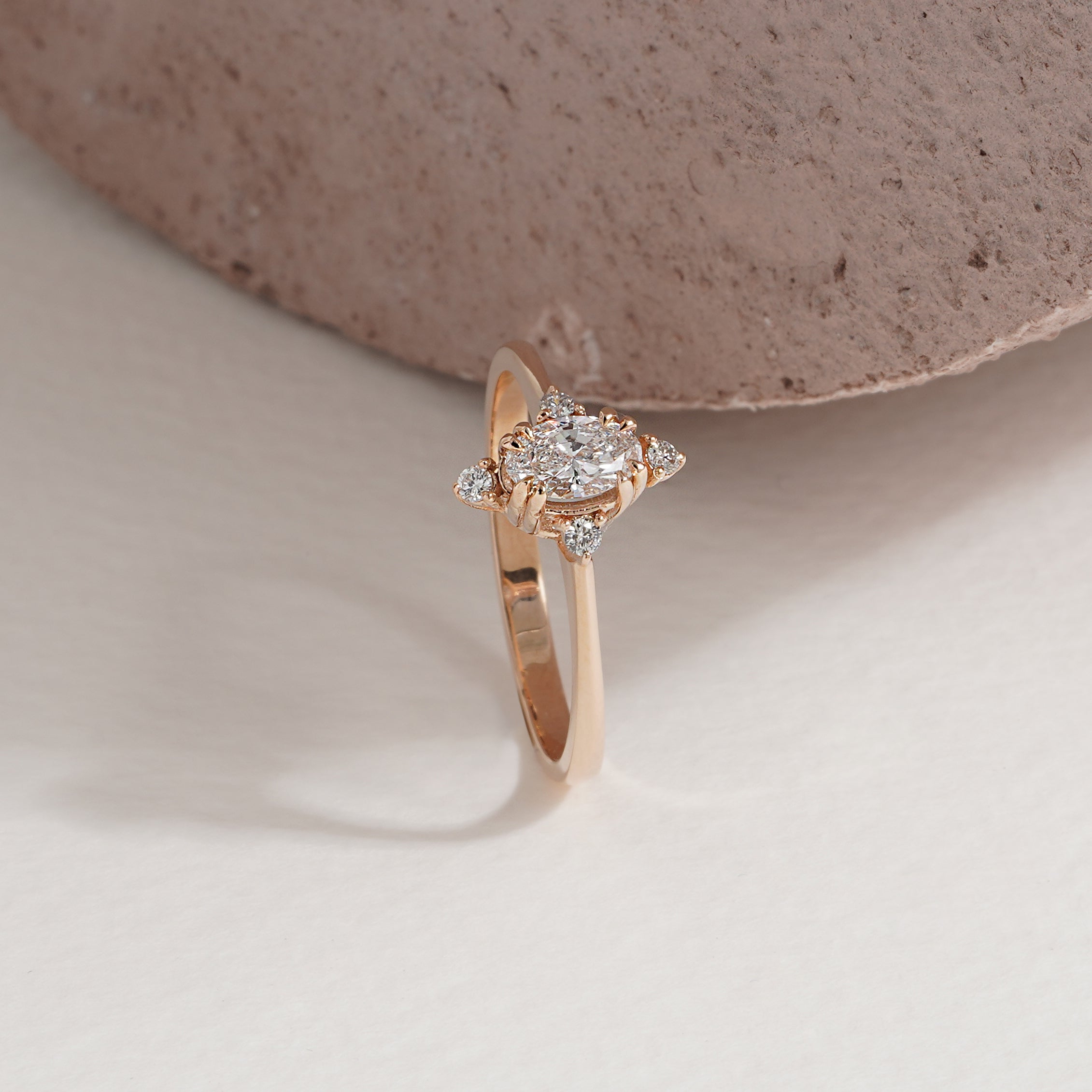 0.32 Karat Oval Kesim RonaffPırlanta Sertifikalı Vintage Pırlanta Yüzük modeli, yaklaşık 1.63 gr ağırlığında 14 Ayar Rose Altın kullanılarak özel olarak tasarlanmıştır.