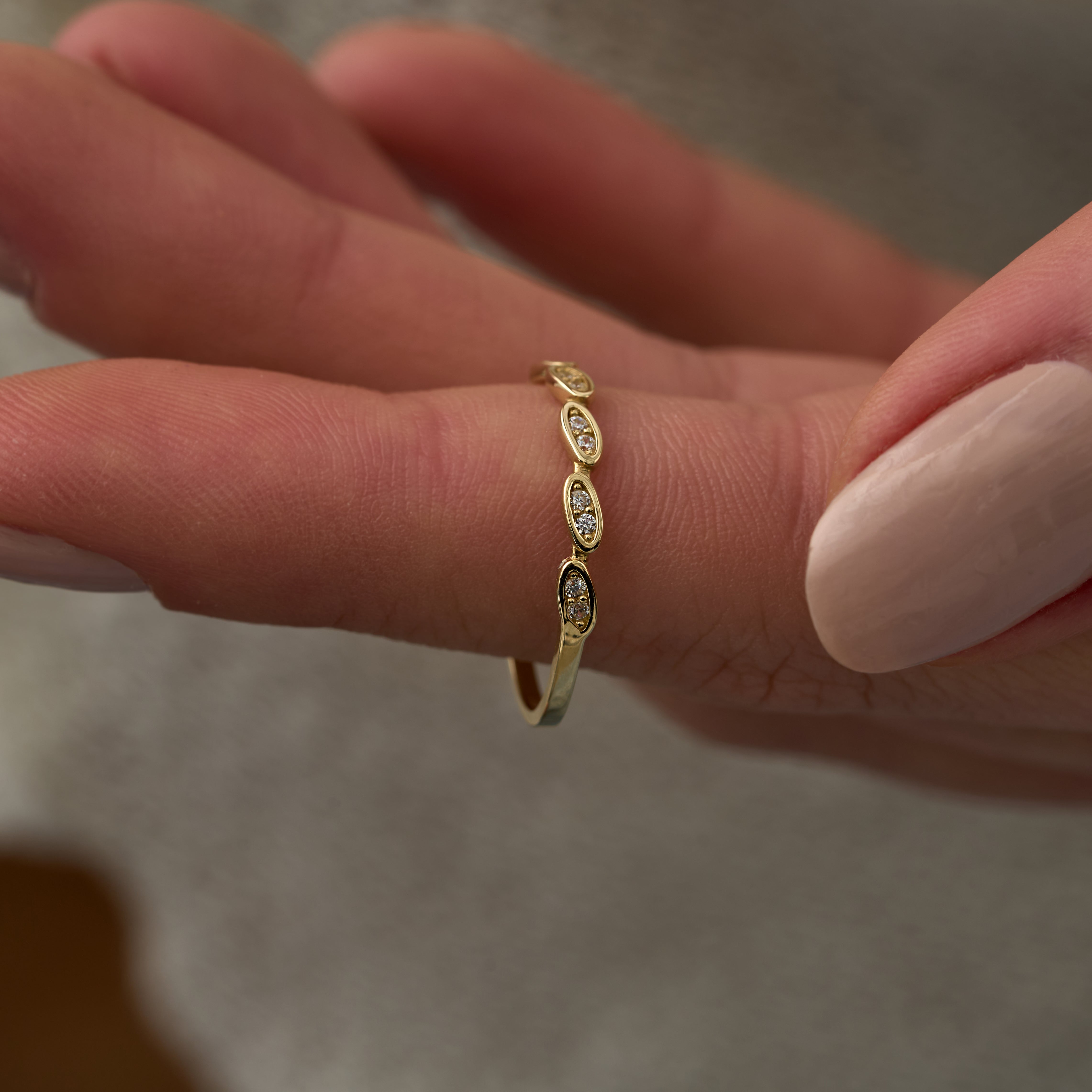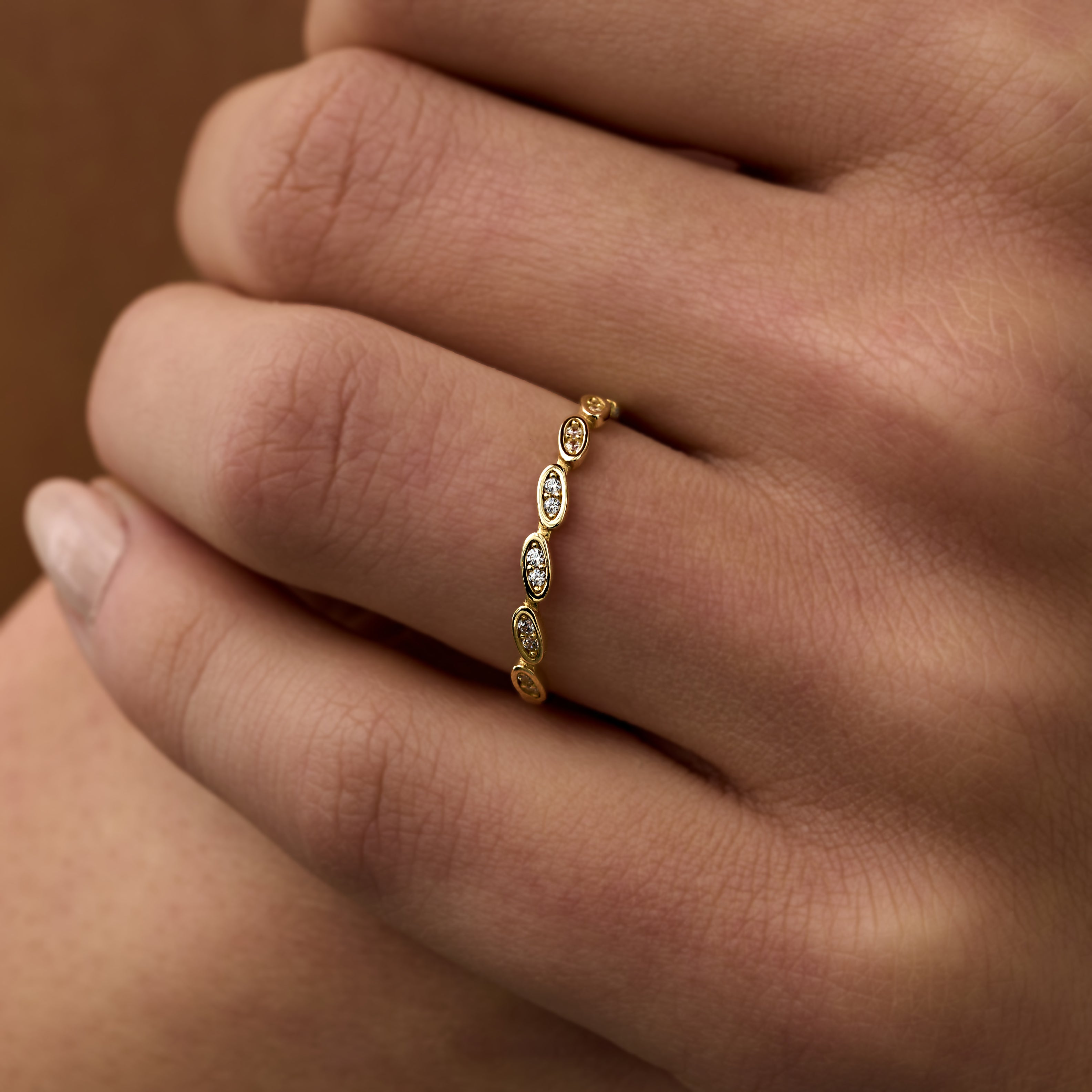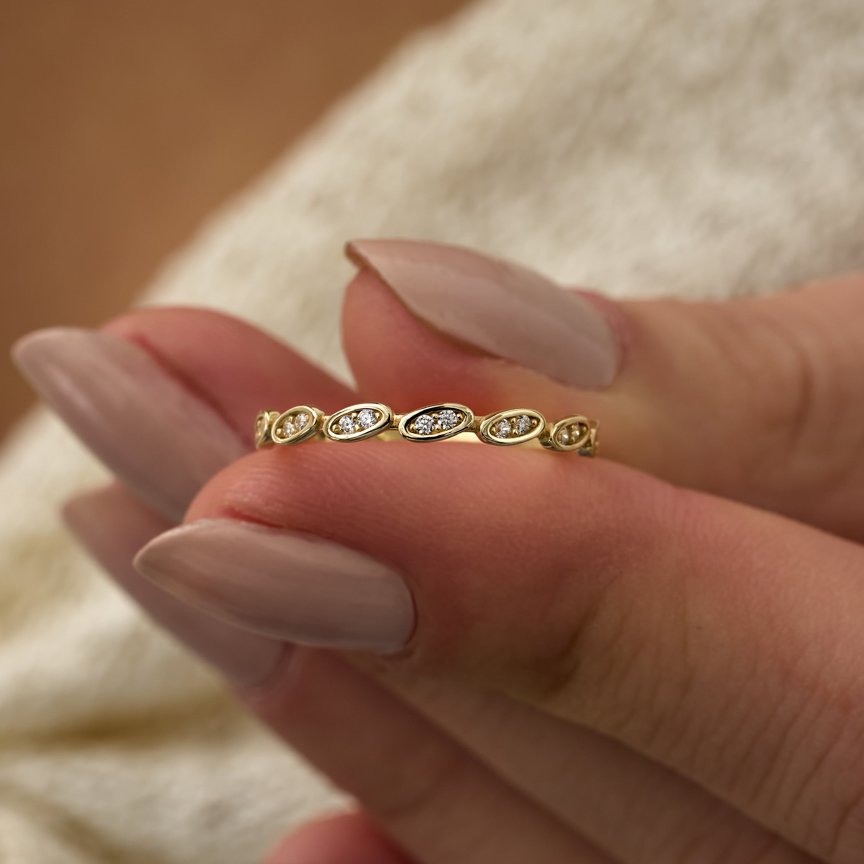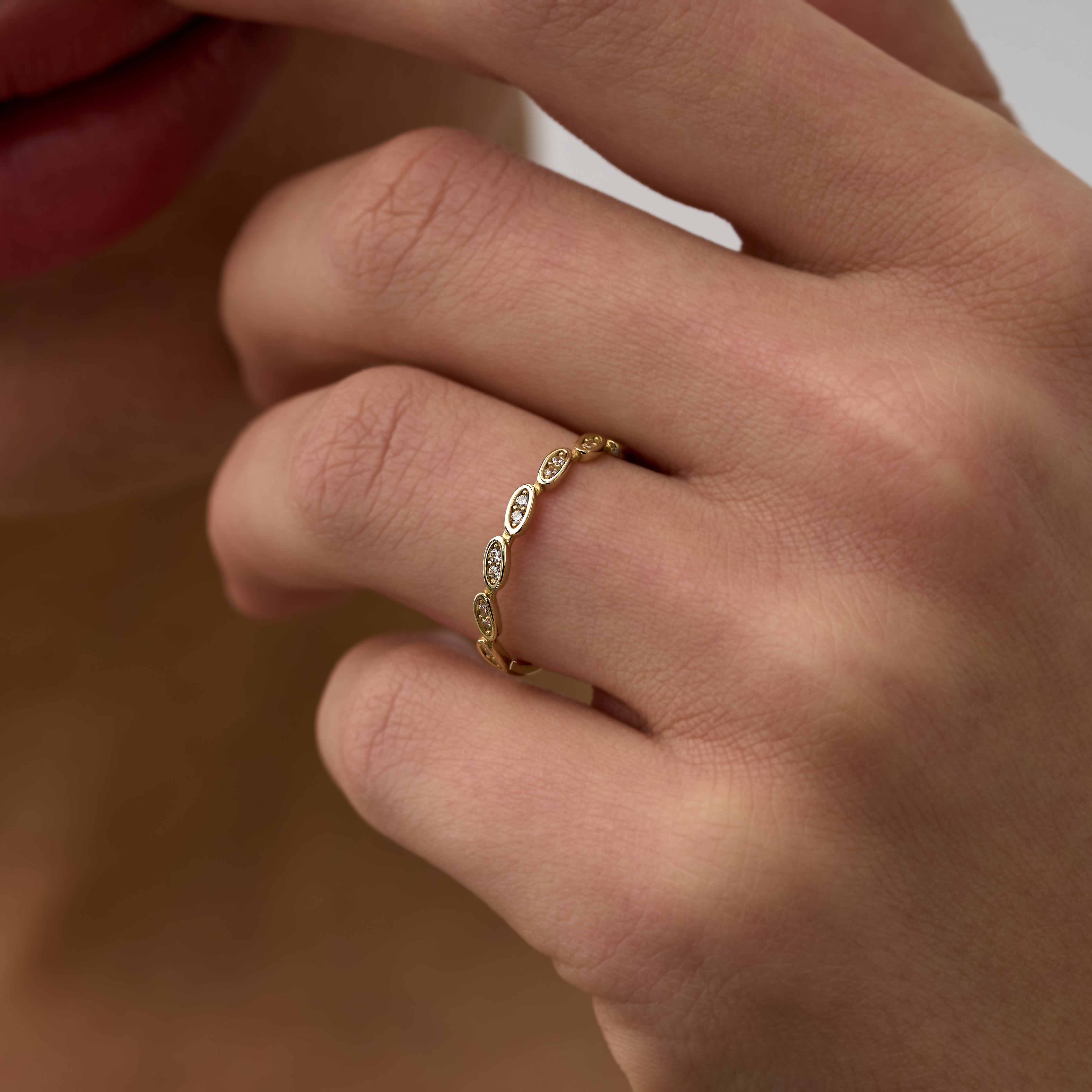 14 Ayar Altın Oval Sıralı Pırlanta Yüzük RG066