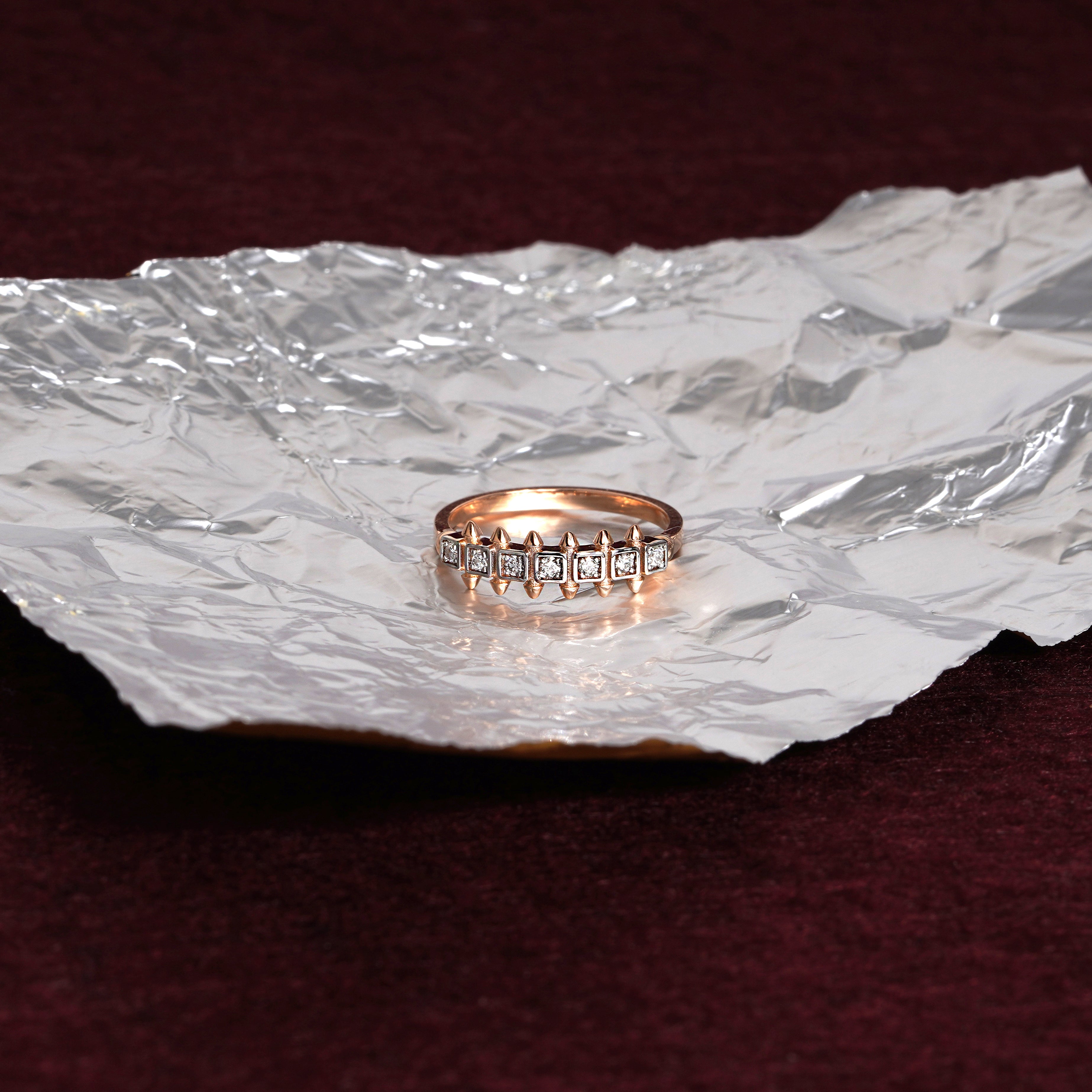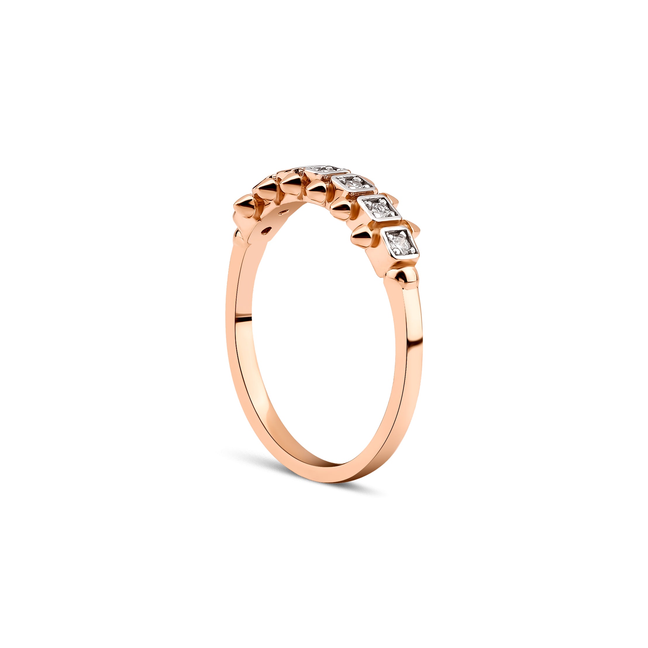 0.12 Karat Yarımtur Pırlantalı Vintage Yüzük modeli, yaklaşık 2.51 gr ağırlığında 14 Ayar Rose Altın kullanılarak özel olarak tasarlanmıştır.