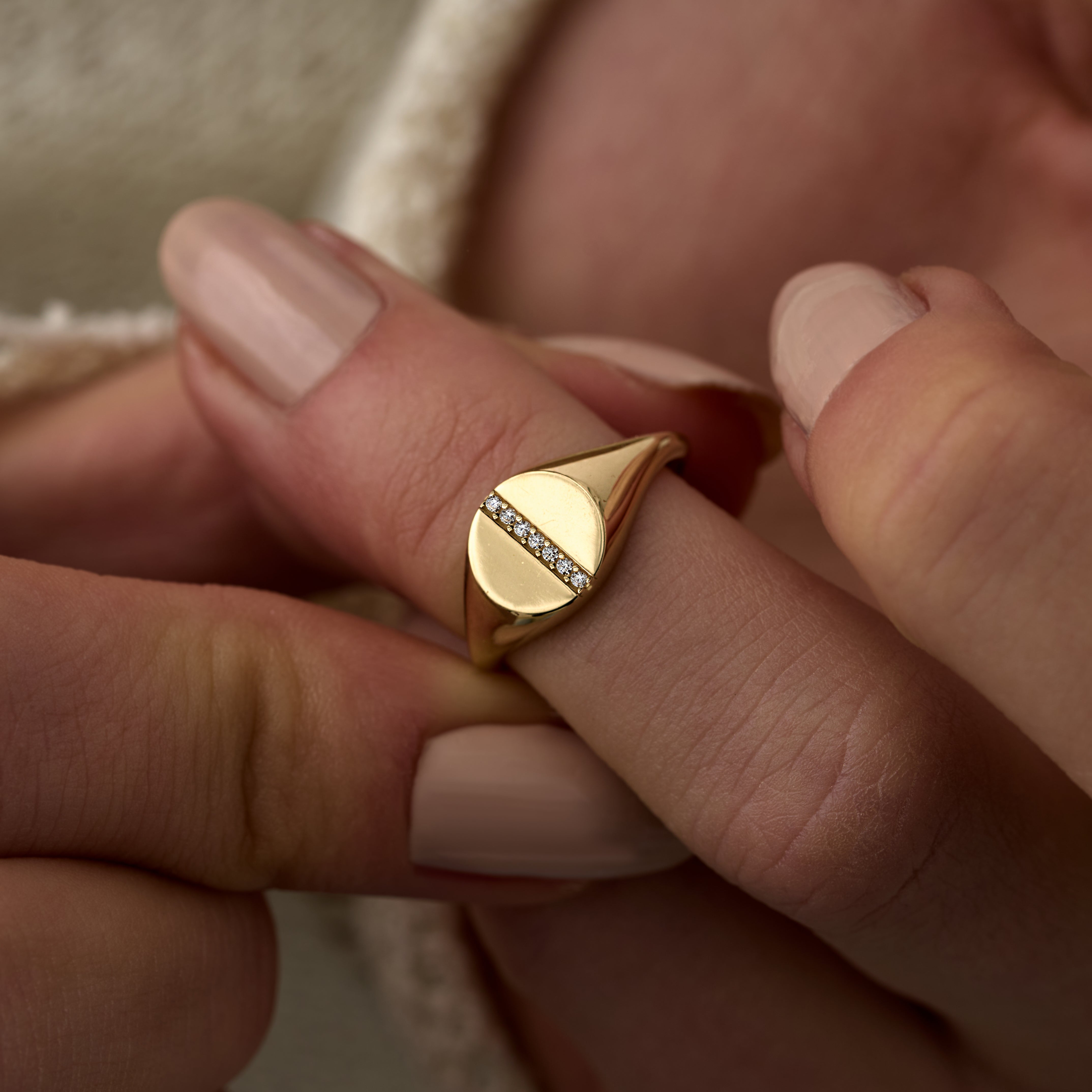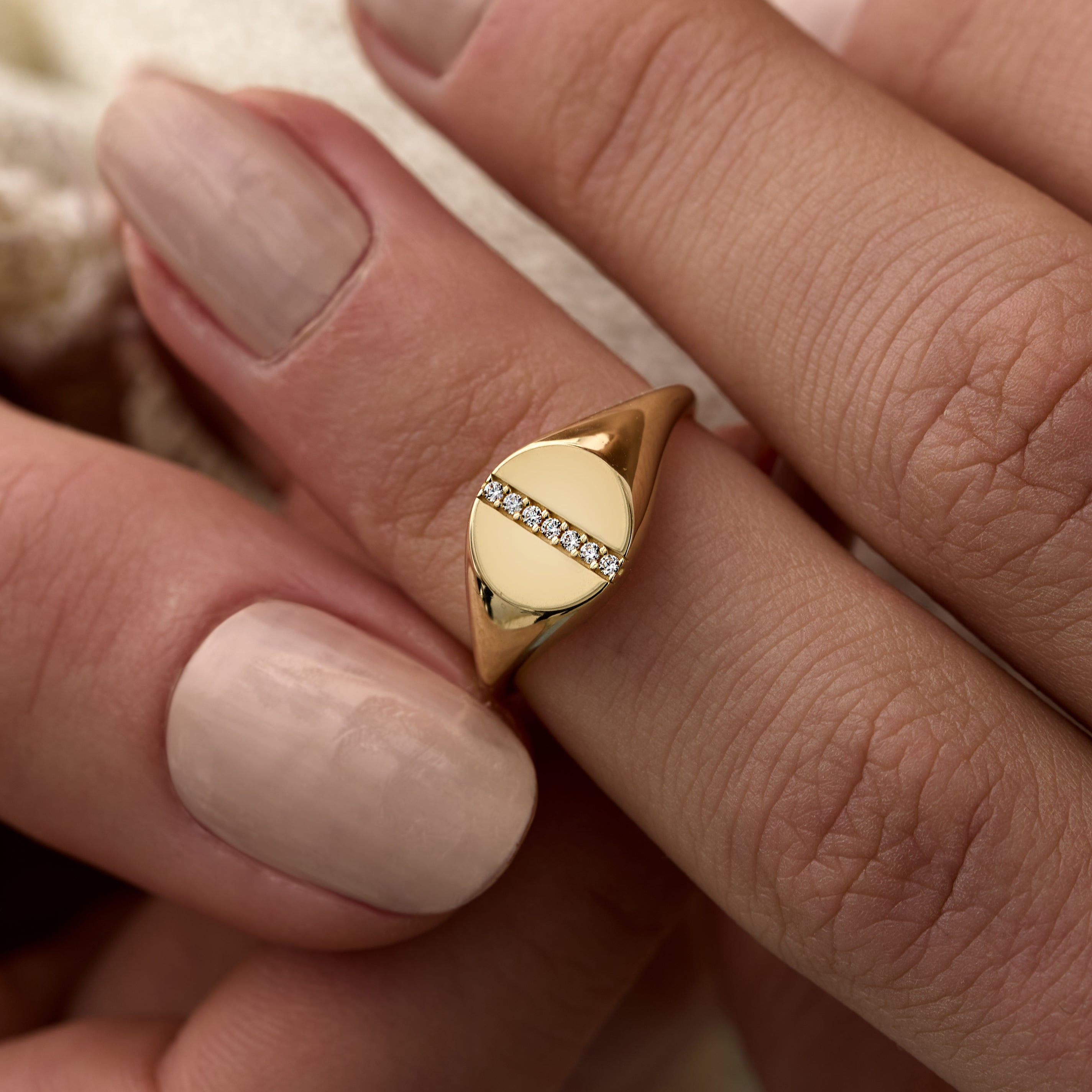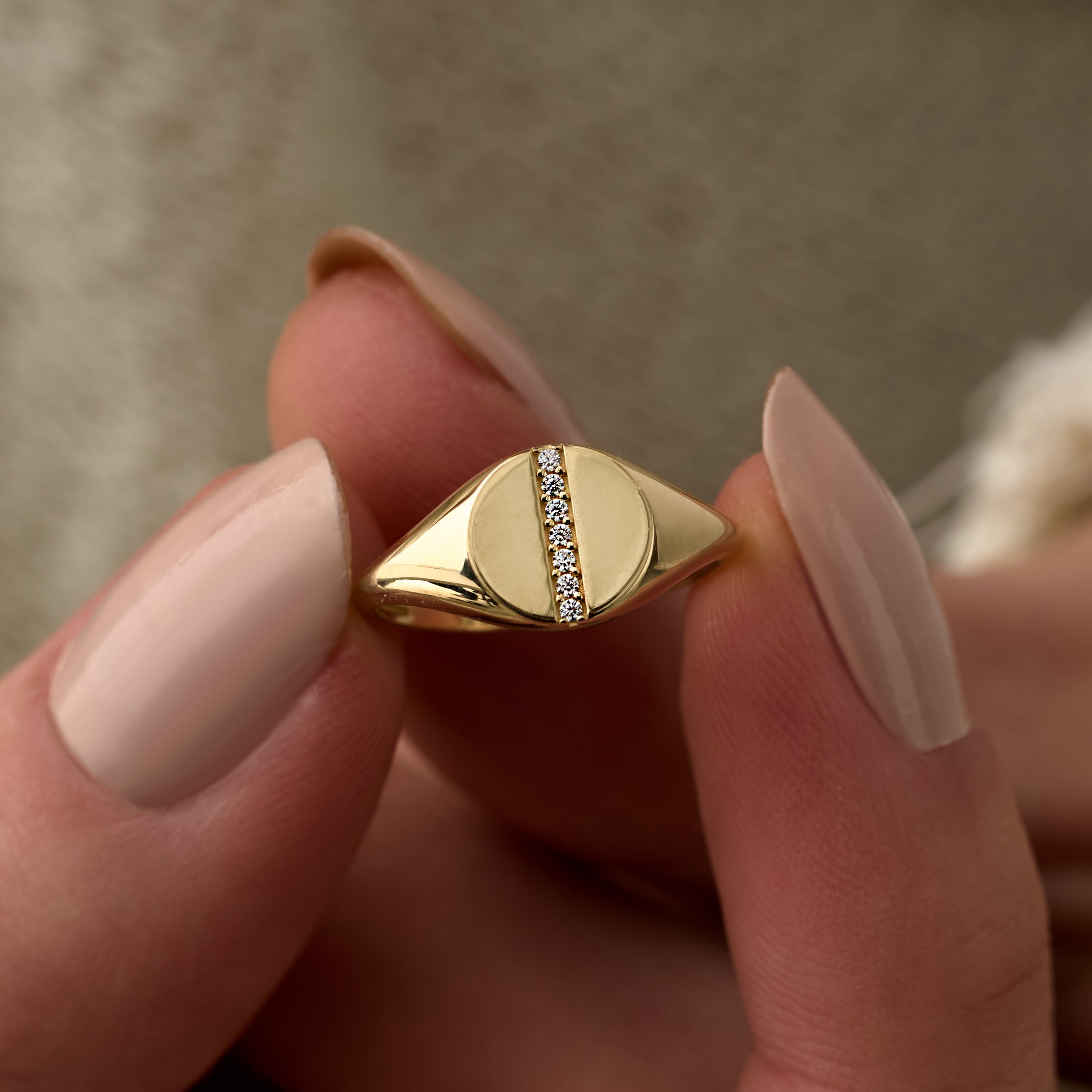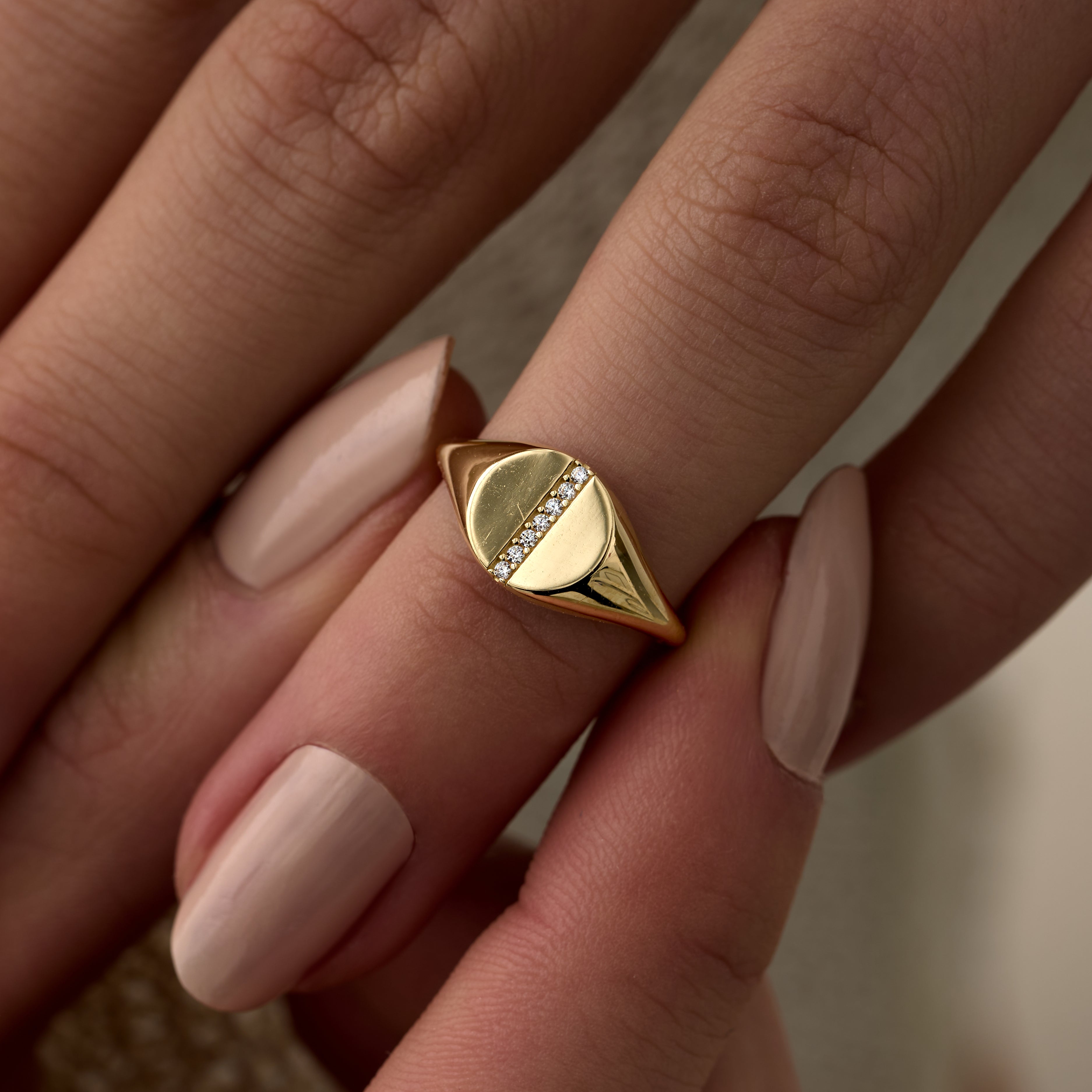 Şerit Detaylı Pırlanta Yüzük modeli, yaklaşık 1.44 gr ağırlığında 14 Ayar Sarı Altın kullanılarak özel olarak tasarlanmıştır.