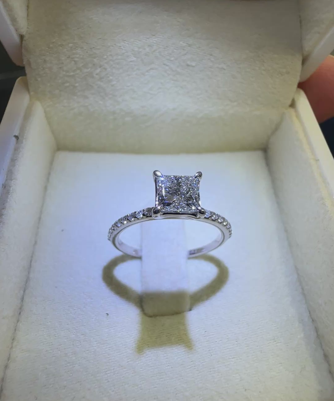 1.25 Karat Prenses (Kare) & 0.28 Karat Yuvarlak Kesim HRD Sertifikalı Tektaş Yüzük - RNF0887