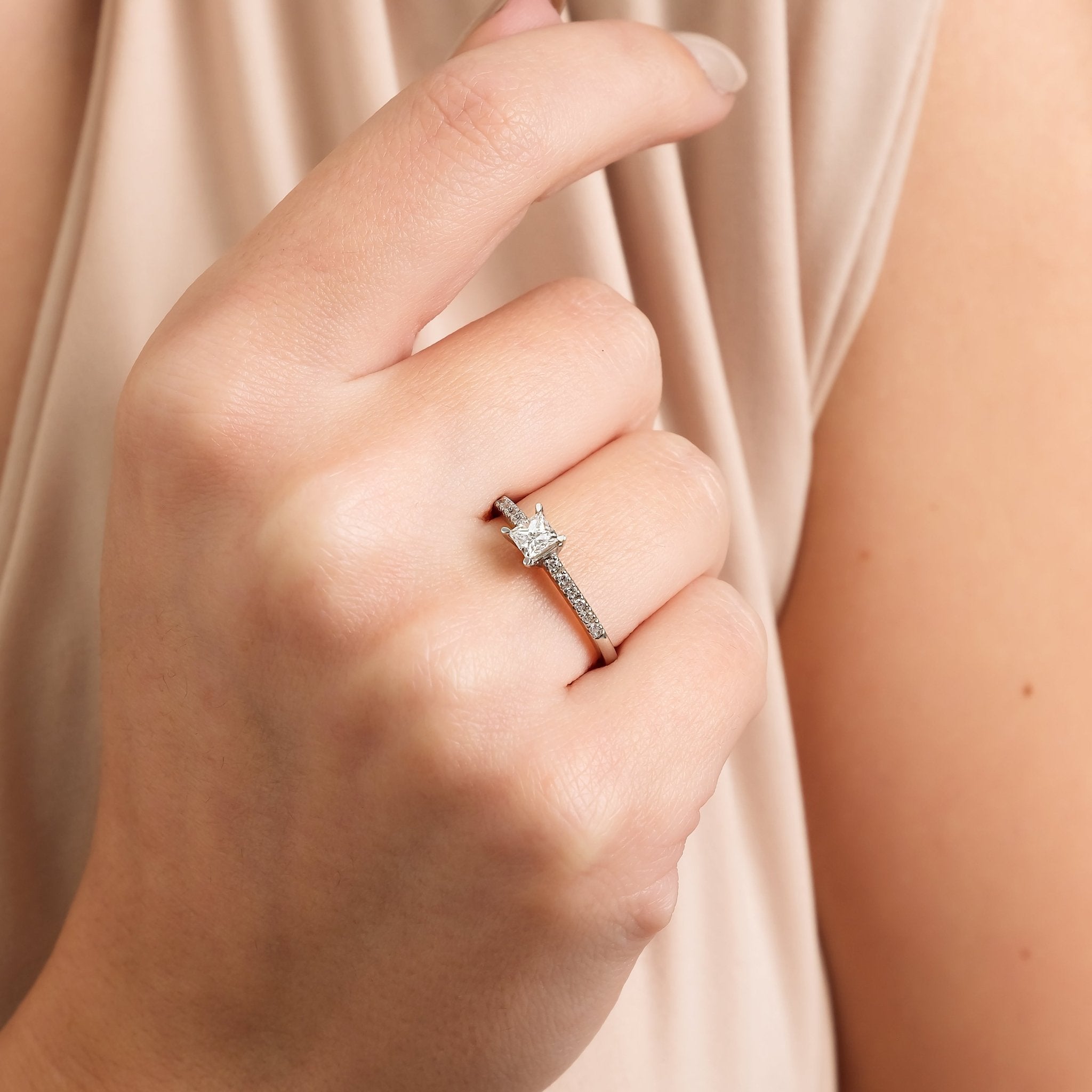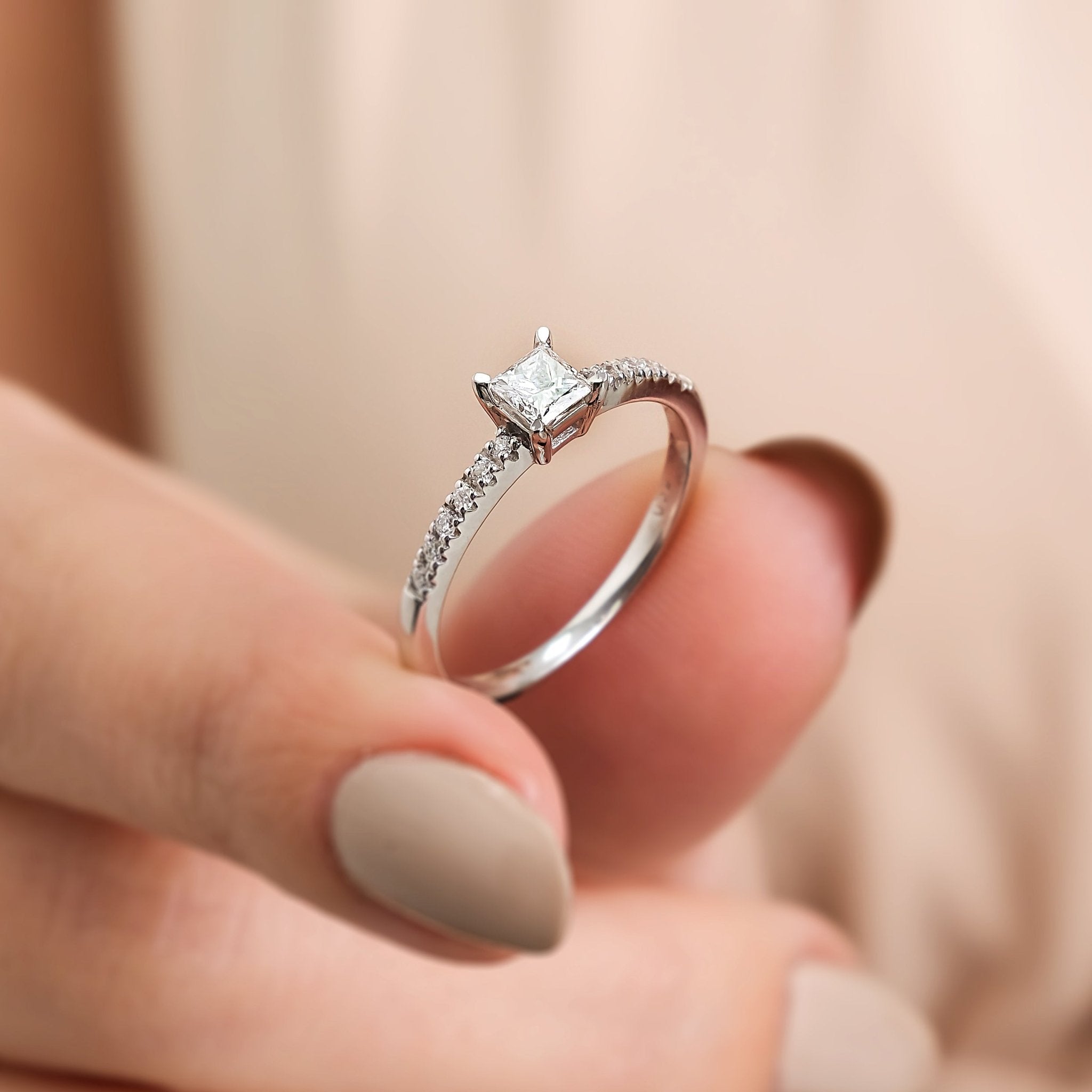 0.30 Karat Merkez & 0.12 Karat Kenar Pırlanta HRD Sertifikalı Klasik Tektaş Yüzük modeli, yaklaşık 2.08 gr ağırlığında 14 Ayar Beyaz Altın kullanılarak özel olarak tasarlanmıştır.