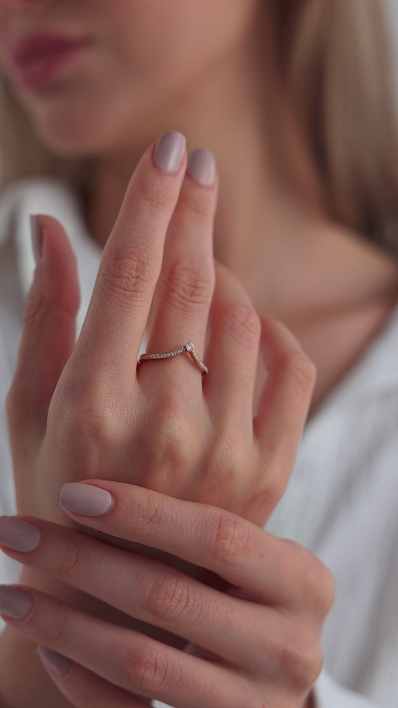 0.12 Karat Yuvarlak & 0.04 Karat Prenses Kesim Tasarım Yüzük modeli, yaklaşık 1.86 gr ağırlığında 14 Ayar Rose Altın kullanılarak özel olarak tasarlanmıştır.