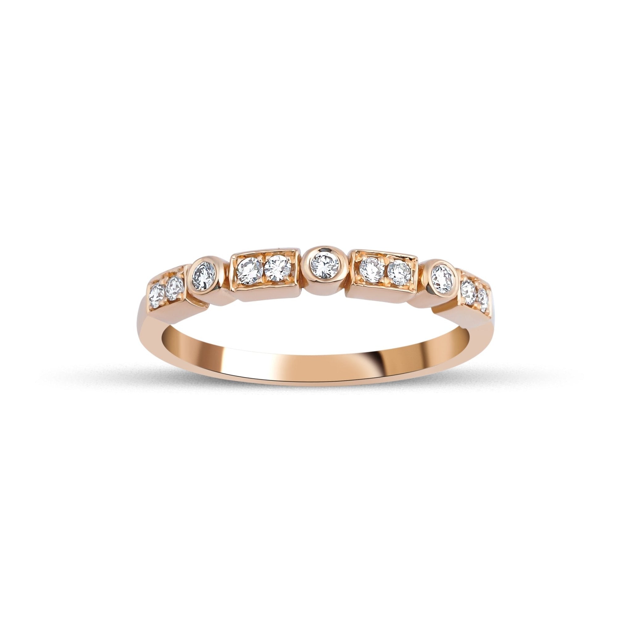 0.18 Karat Yuvarlak Kesim Yarımtur Yüzük modeli, yaklaşık 1.88 gr ağırlığında 14 Ayar Rose Altın kullanılarak özel olarak tasarlanmıştır.