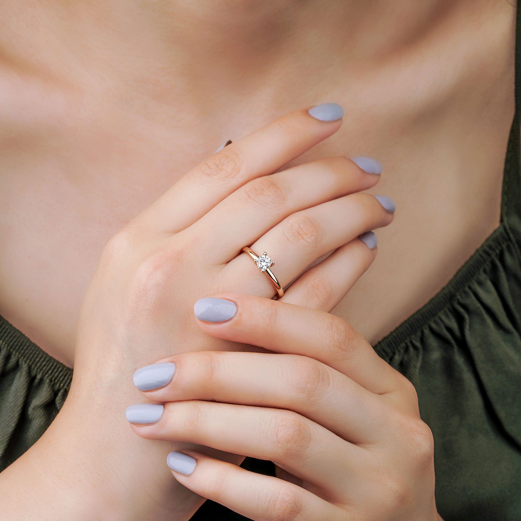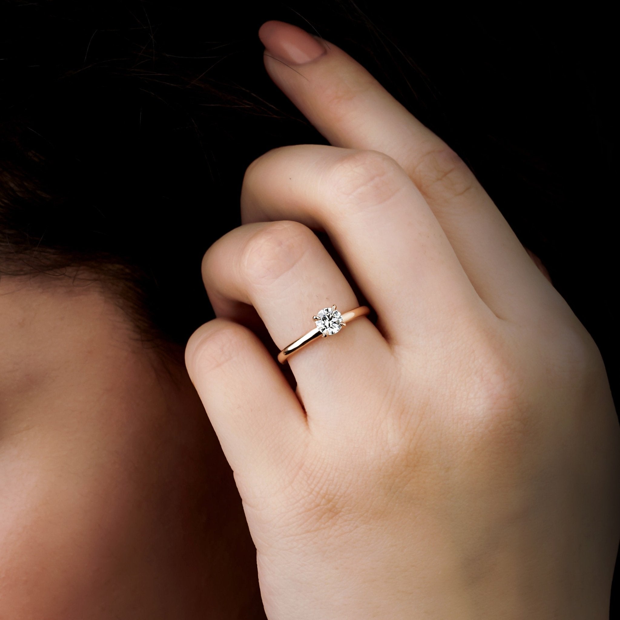 0.30 Karat Yuvarlak Kesim HRD Sertifikalı Tektaş Pırlanta Yüzük modeli, yaklaşık 2.68 gr ağırlığında 14 Ayar Rose Altın kullanılarak özel olarak tasarlanmıştır.