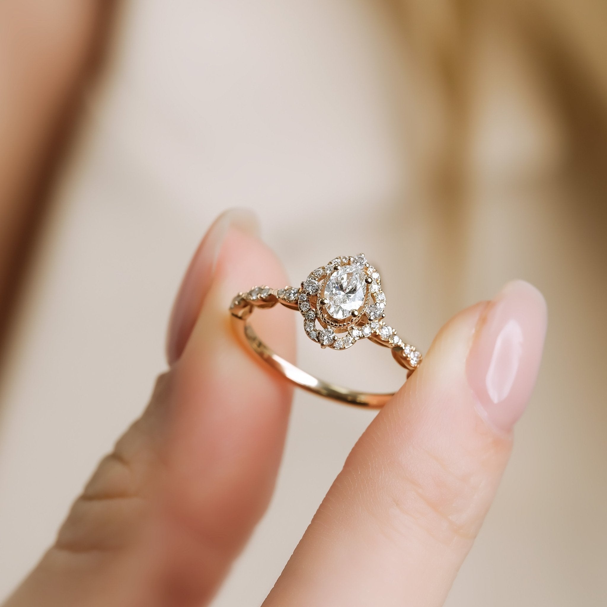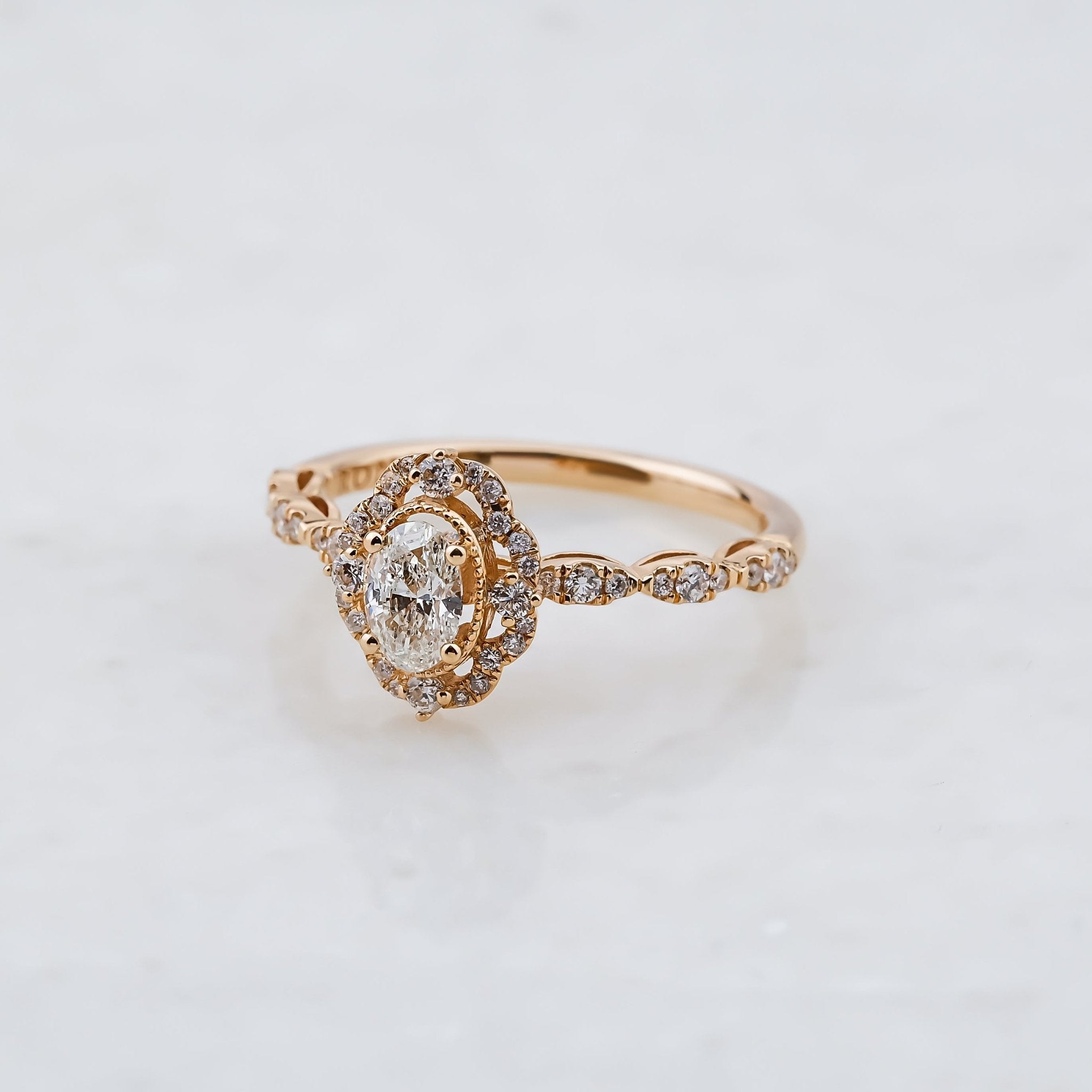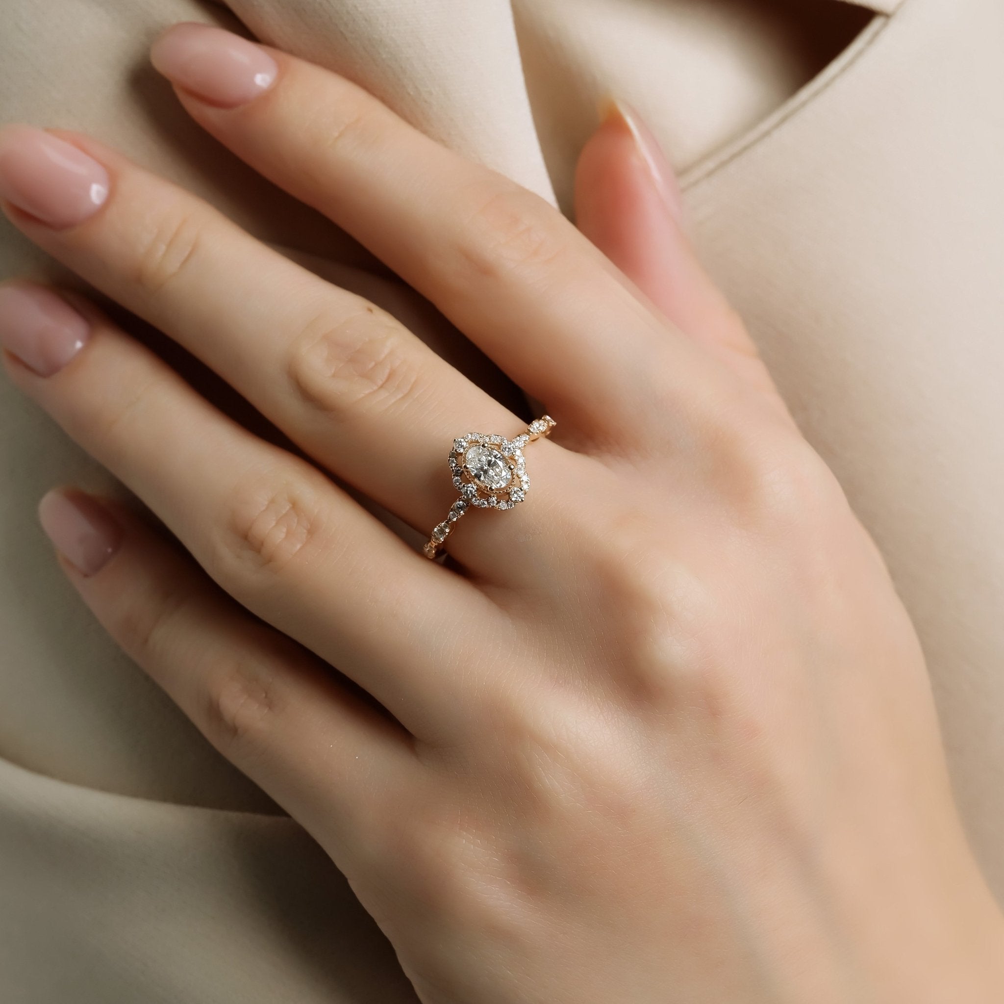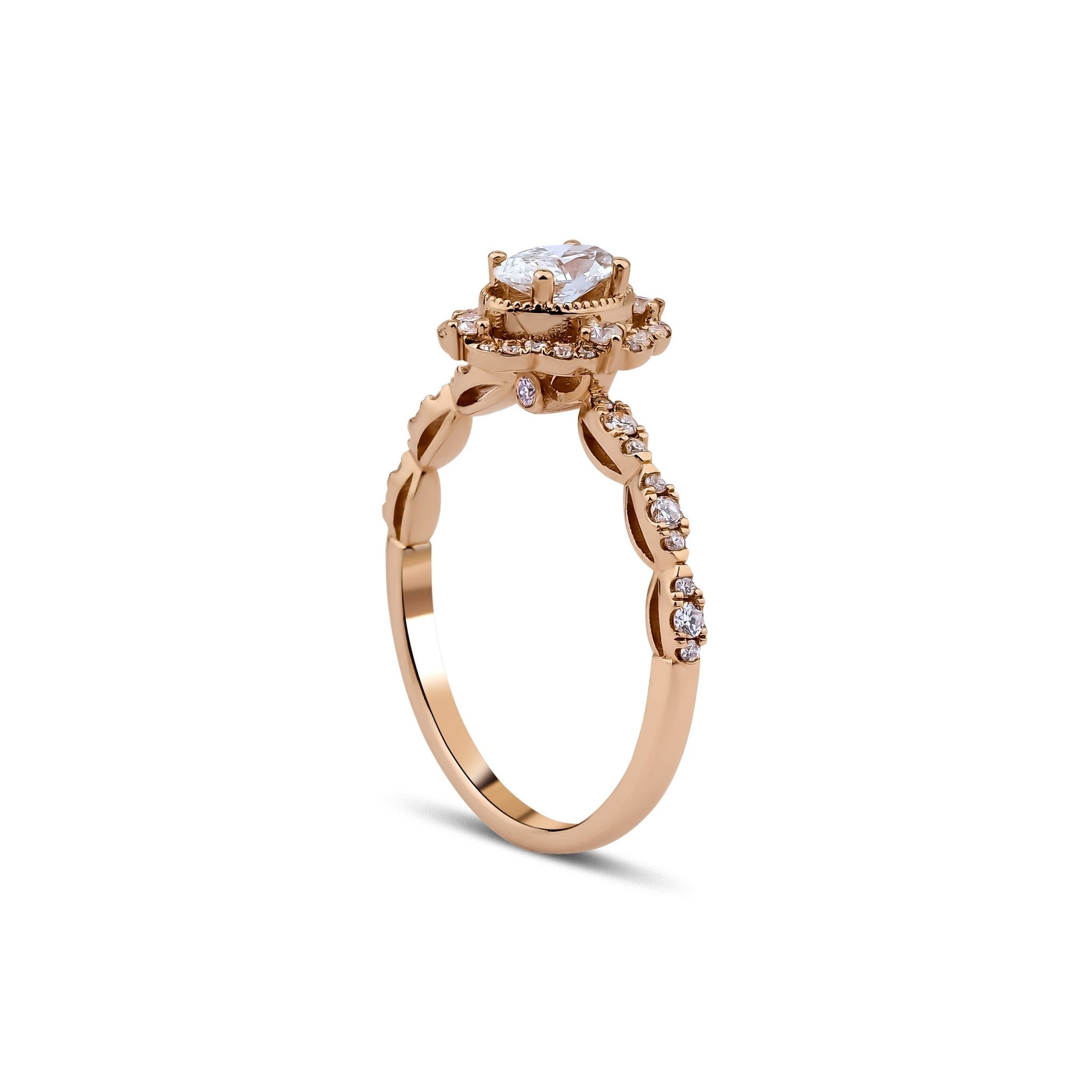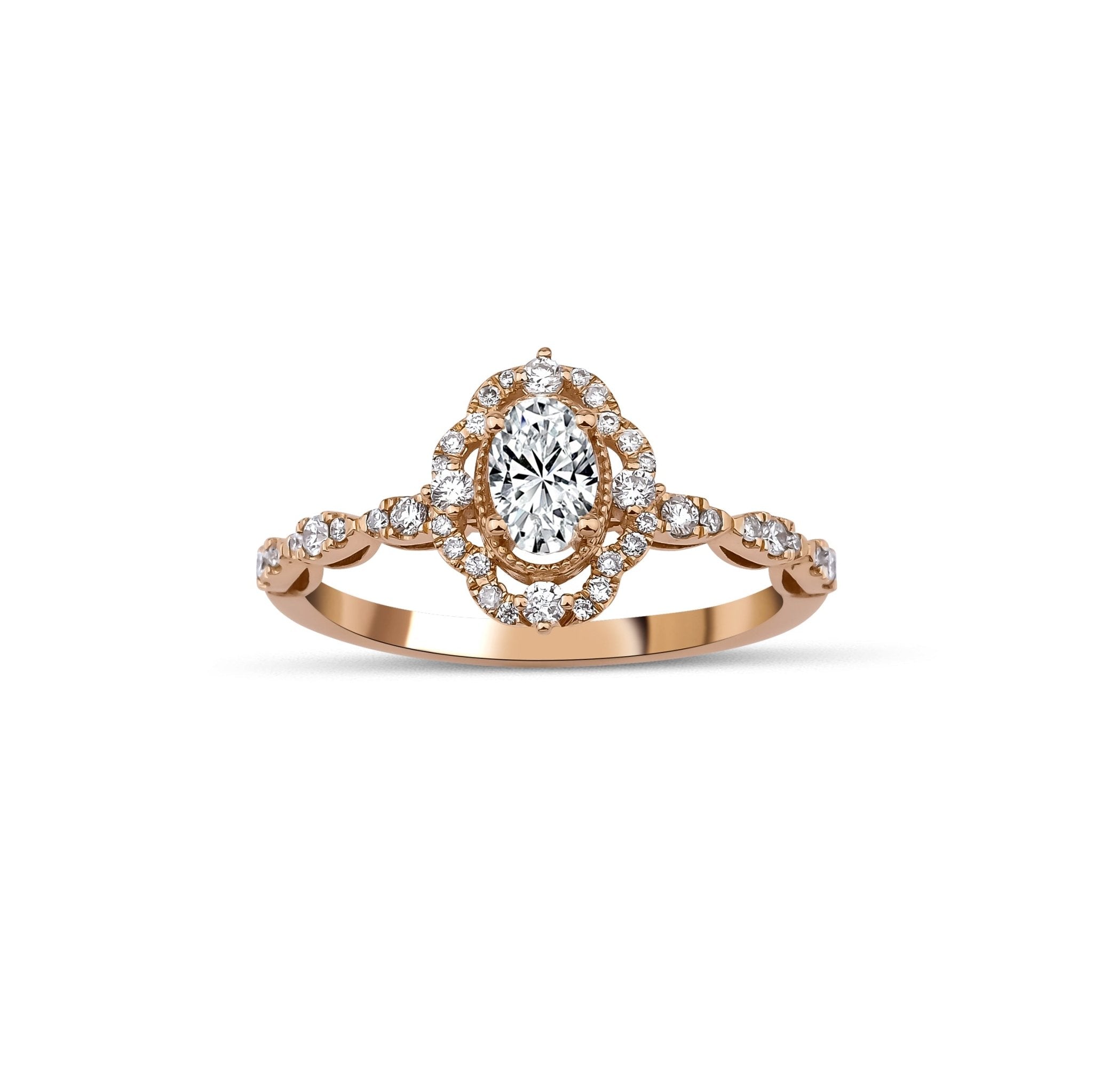0.40 Karat Merkez Oval & 0.18 Karat Kenar Pırlantalı HRD Sertifikalı Tasarım Tektaş Yüzük modeli, yaklaşık 2.12 gr ağırlığında 14 Ayar Rose Altın kullanılarak özel olarak tasarlanmıştır.