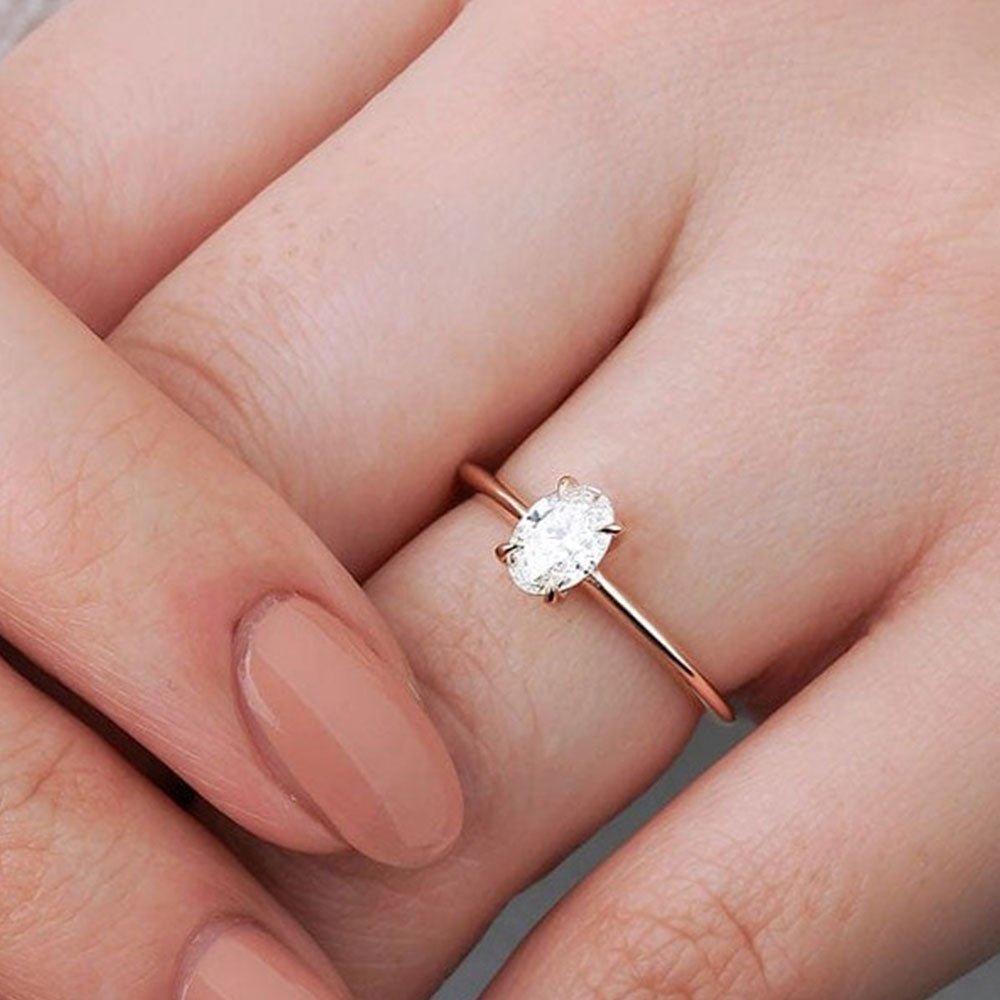 0.47 Karat Oval Kesim GIA/HRD Sertifikalı Tektaş Pırlanta Yüzük modeli, yaklaşık 3.00 gr ağırlığında 14 Ayar Rose Altın kullanılarak özel olarak tasarlanmıştır.