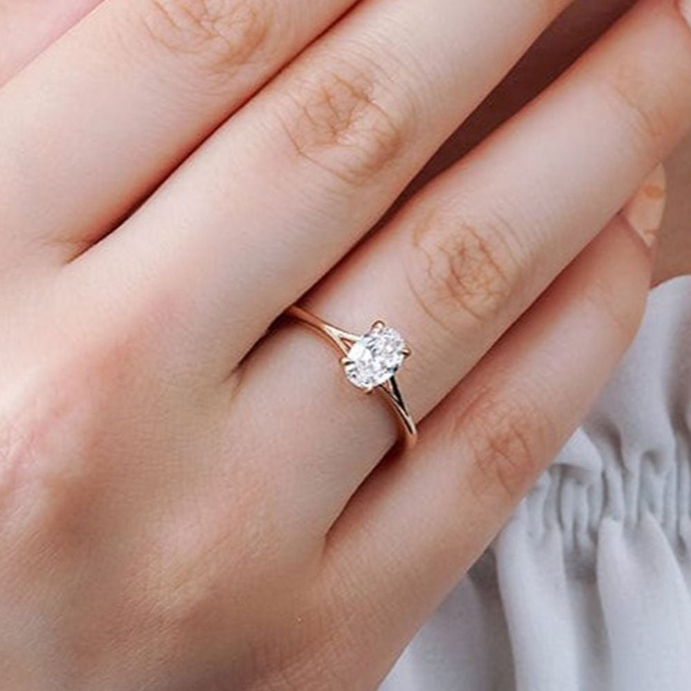 0.54 Karat Oval Kesim HRD Sertifikalı Tektaş Pırlanta Yüzük modeli, yaklaşık 3.23 gr ağırlığında 14 Ayar Rose Altın kullanılarak özel olarak tasarlanmıştır.