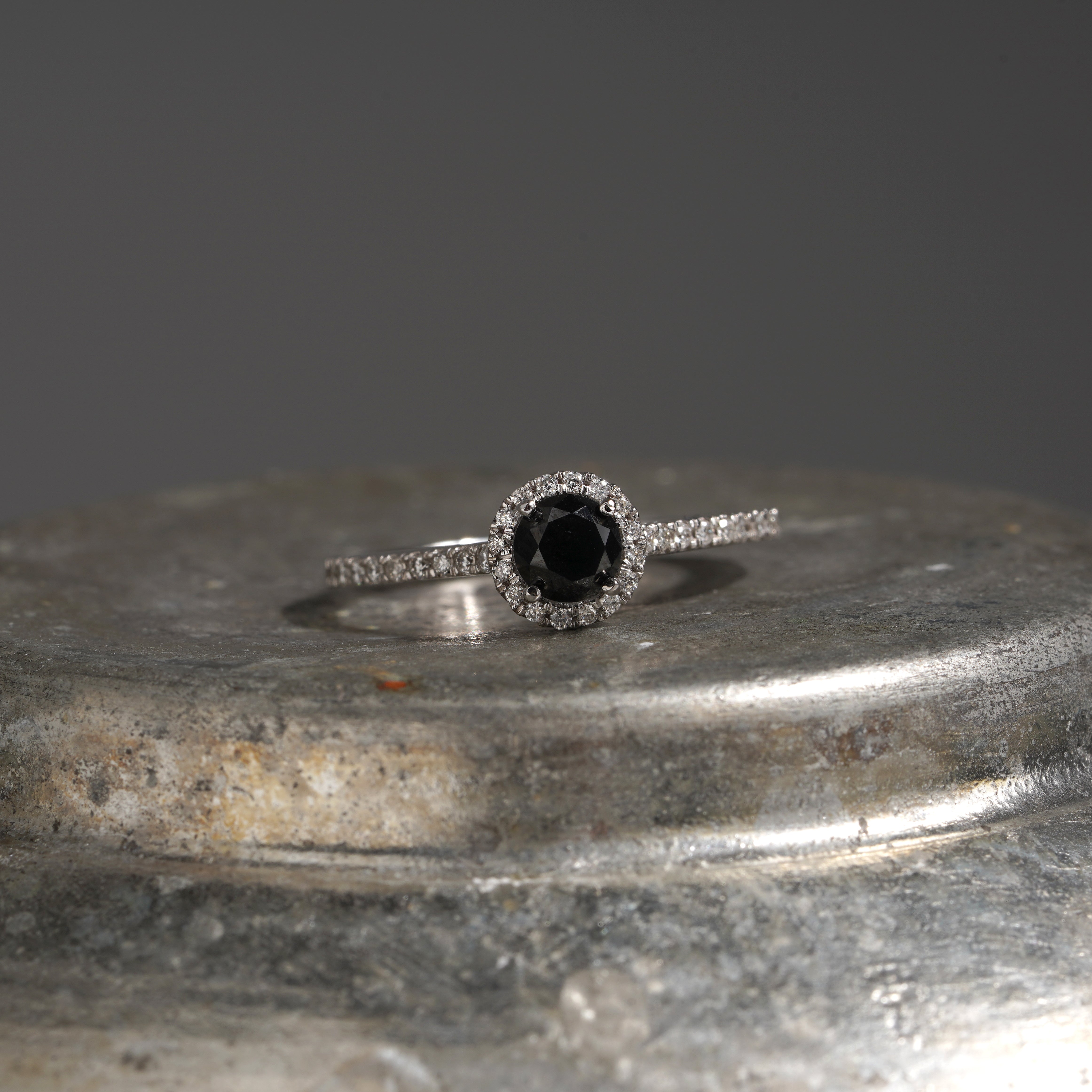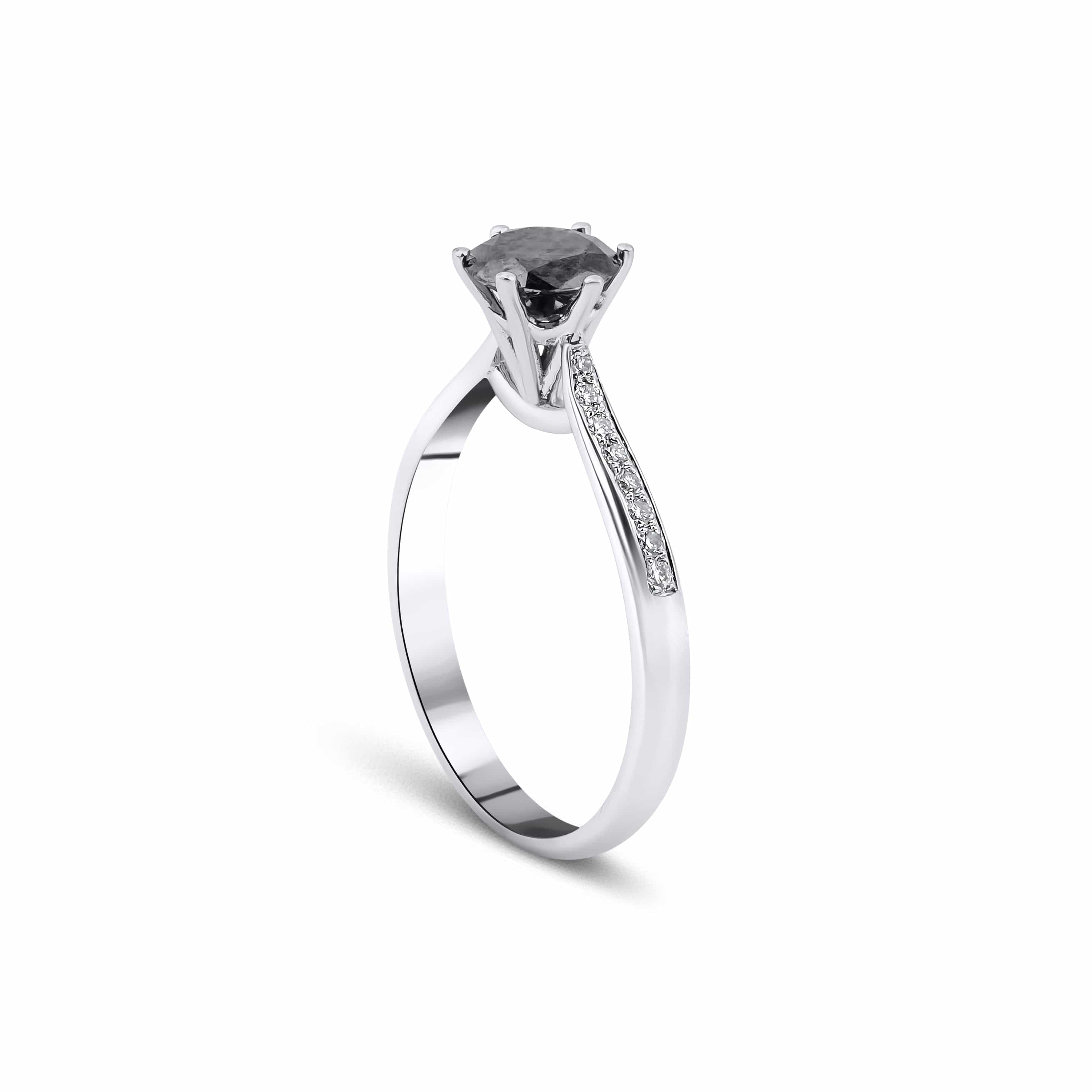0.70 Karat Siyah Tektaş Pırlanta Yüzük modeli, yaklaşık 3.14 gr ağırlığında 14 Ayar Beyaz Altın kullanılarak özel olarak tasarlanmıştır.