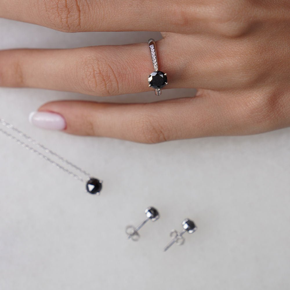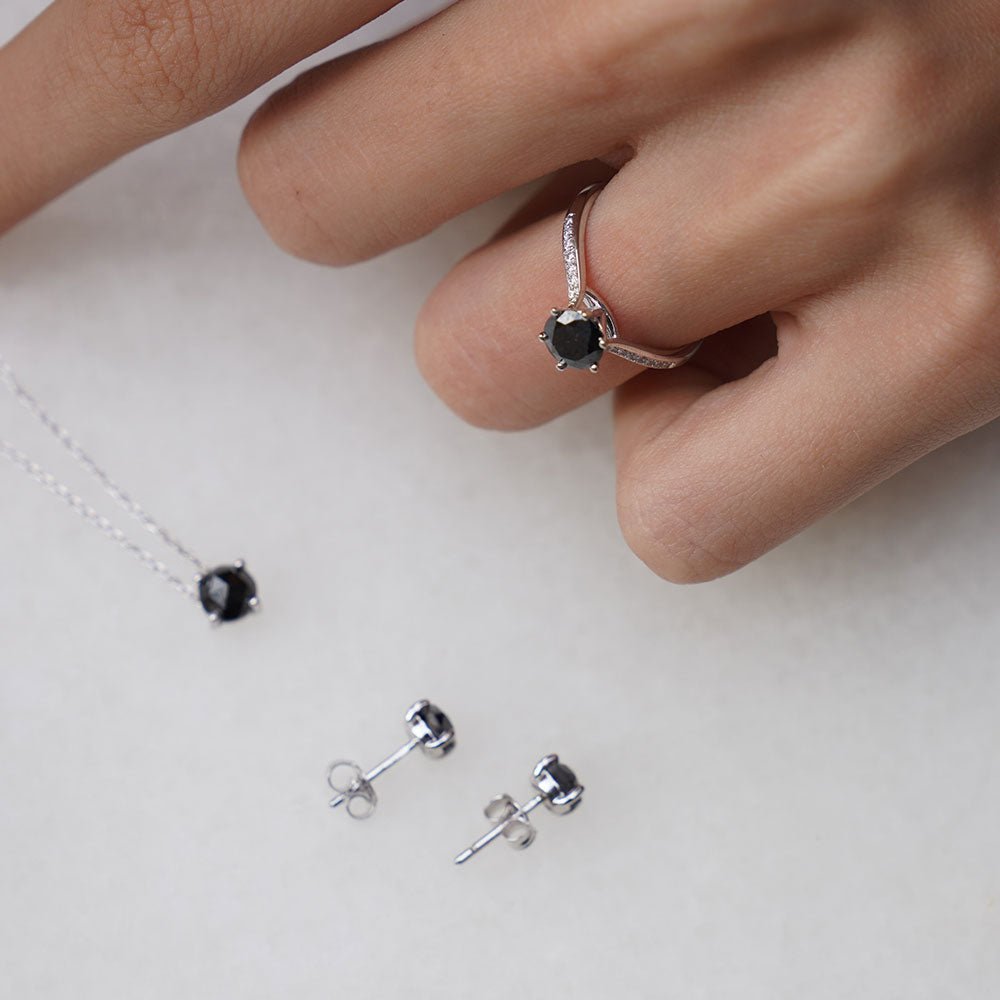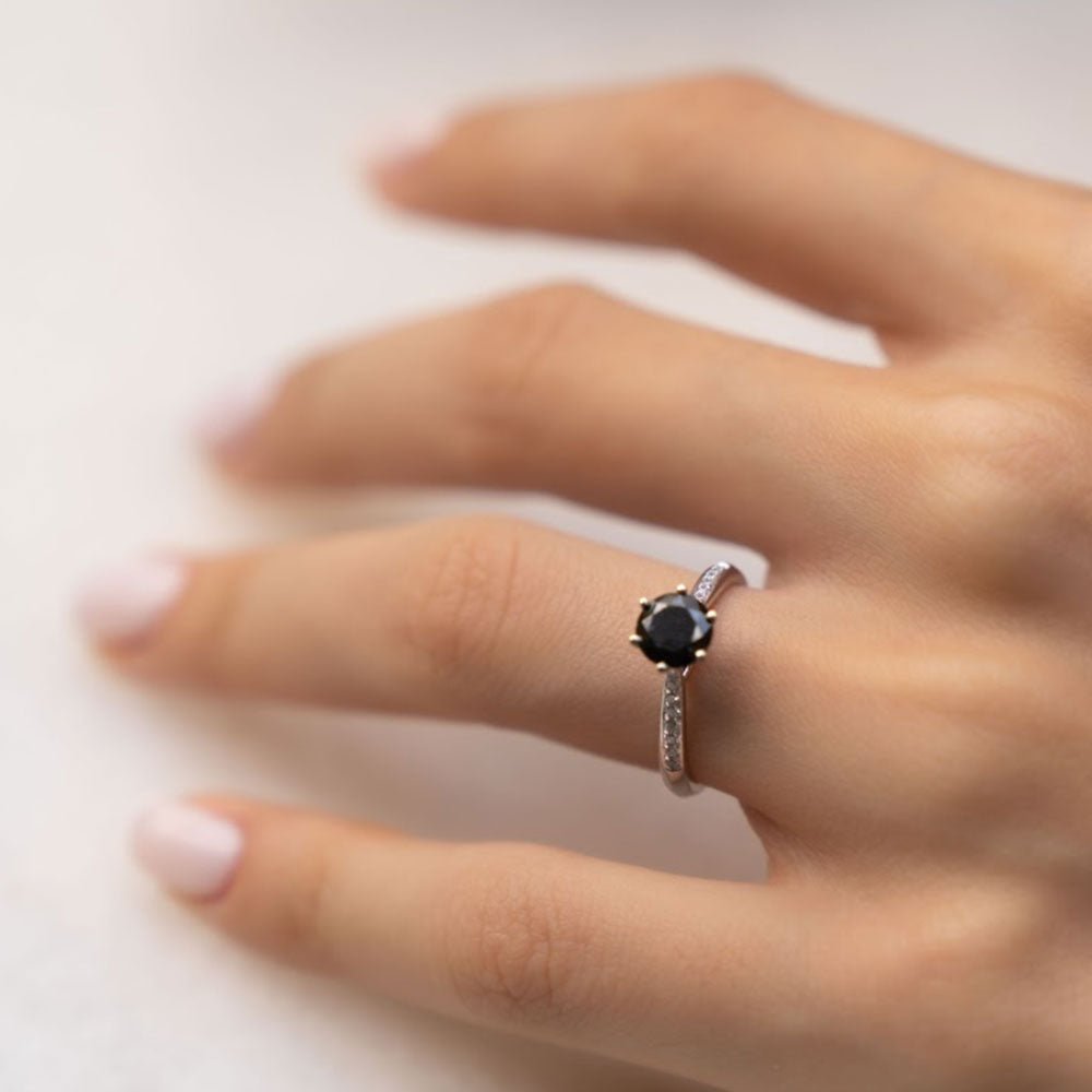 0.70 Karat Siyah Tektaş Pırlanta Yüzük - RNF0639