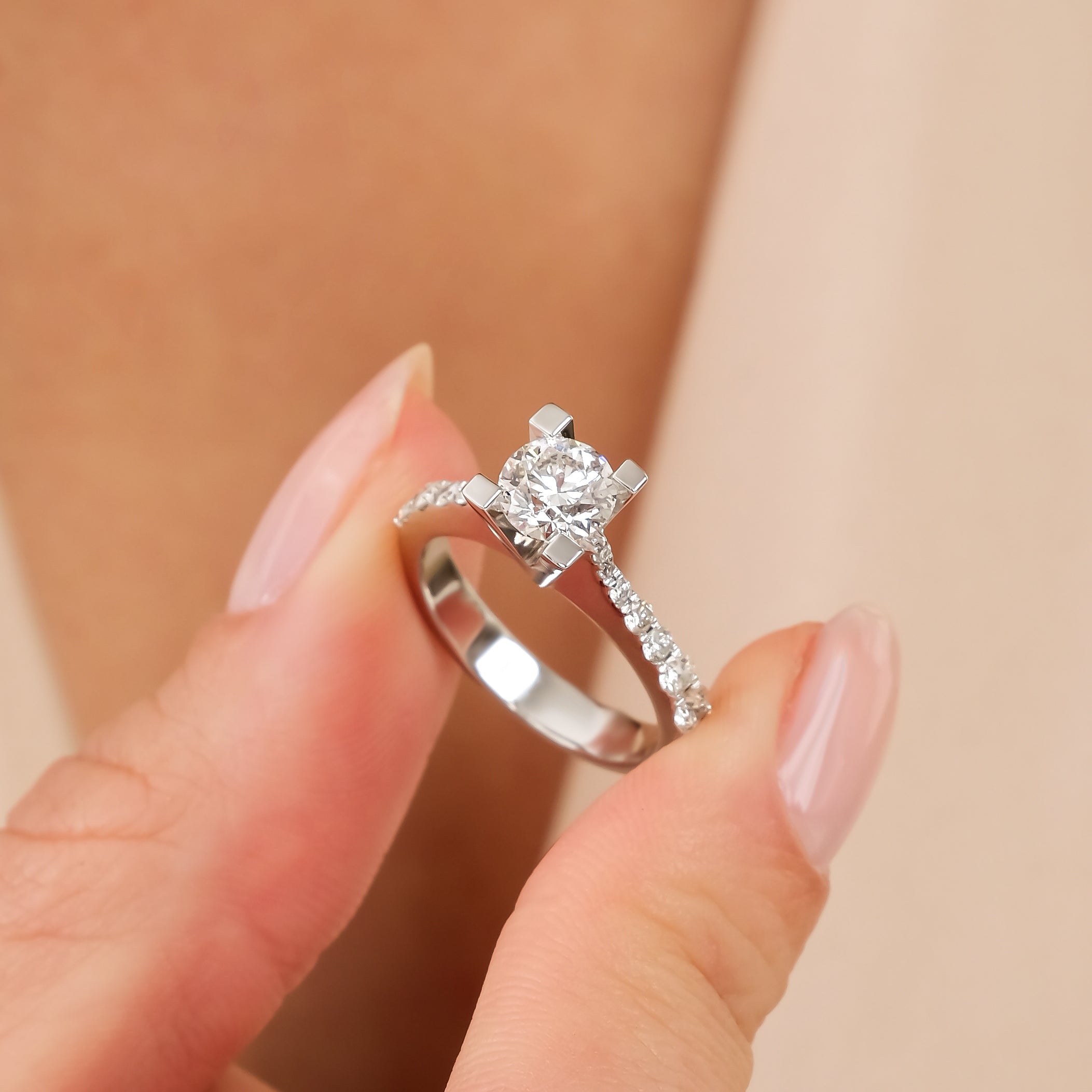 0.80 Karat Merkez & 0.20 Karat Kenar Pırlanta HRD Sertifikalı Tektaş Yüzük modeli, yaklaşık 3.87 gr ağırlığında 14 Ayar Beyaz Altın kullanılarak özel olarak tasarlanmıştır.