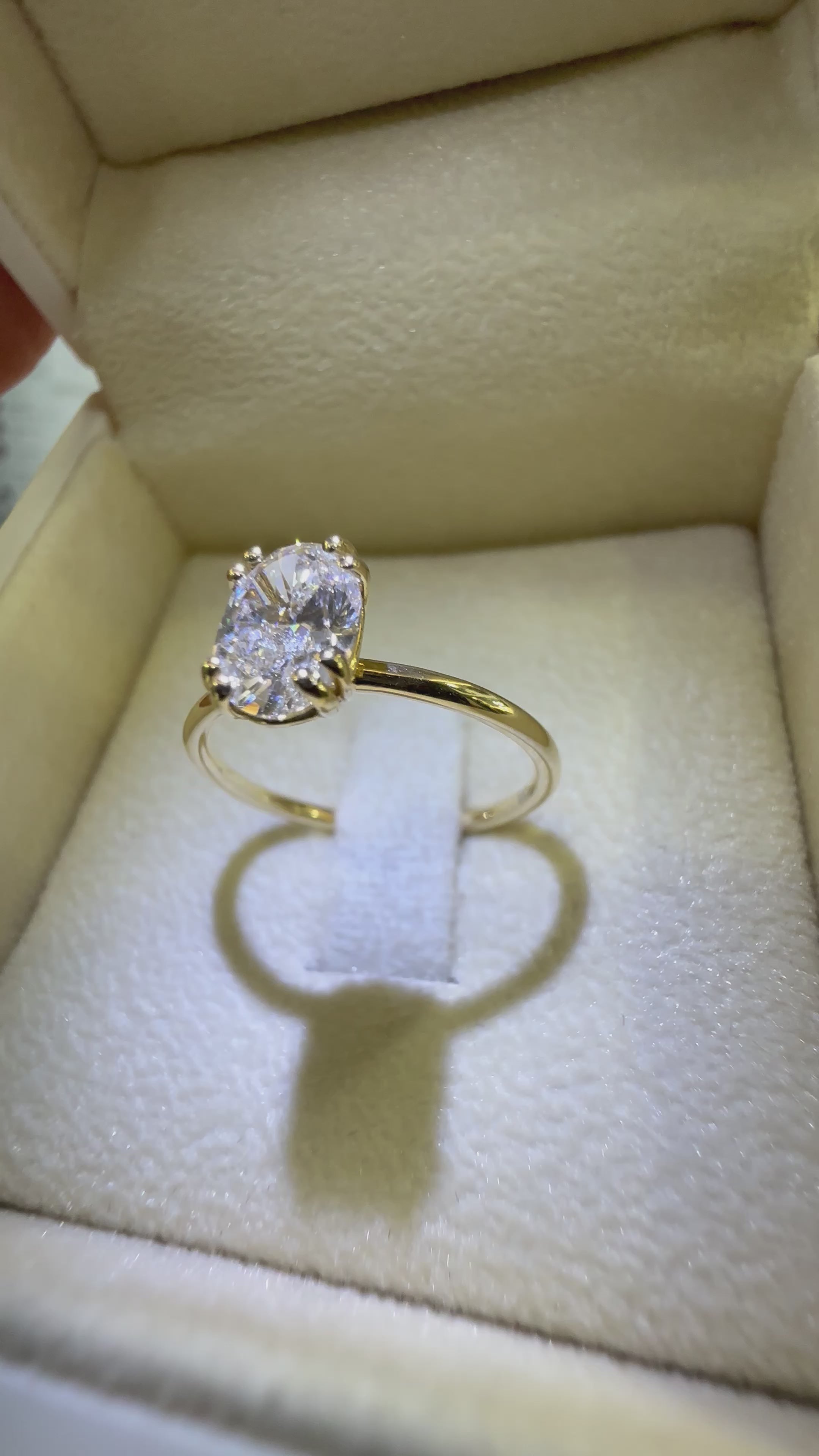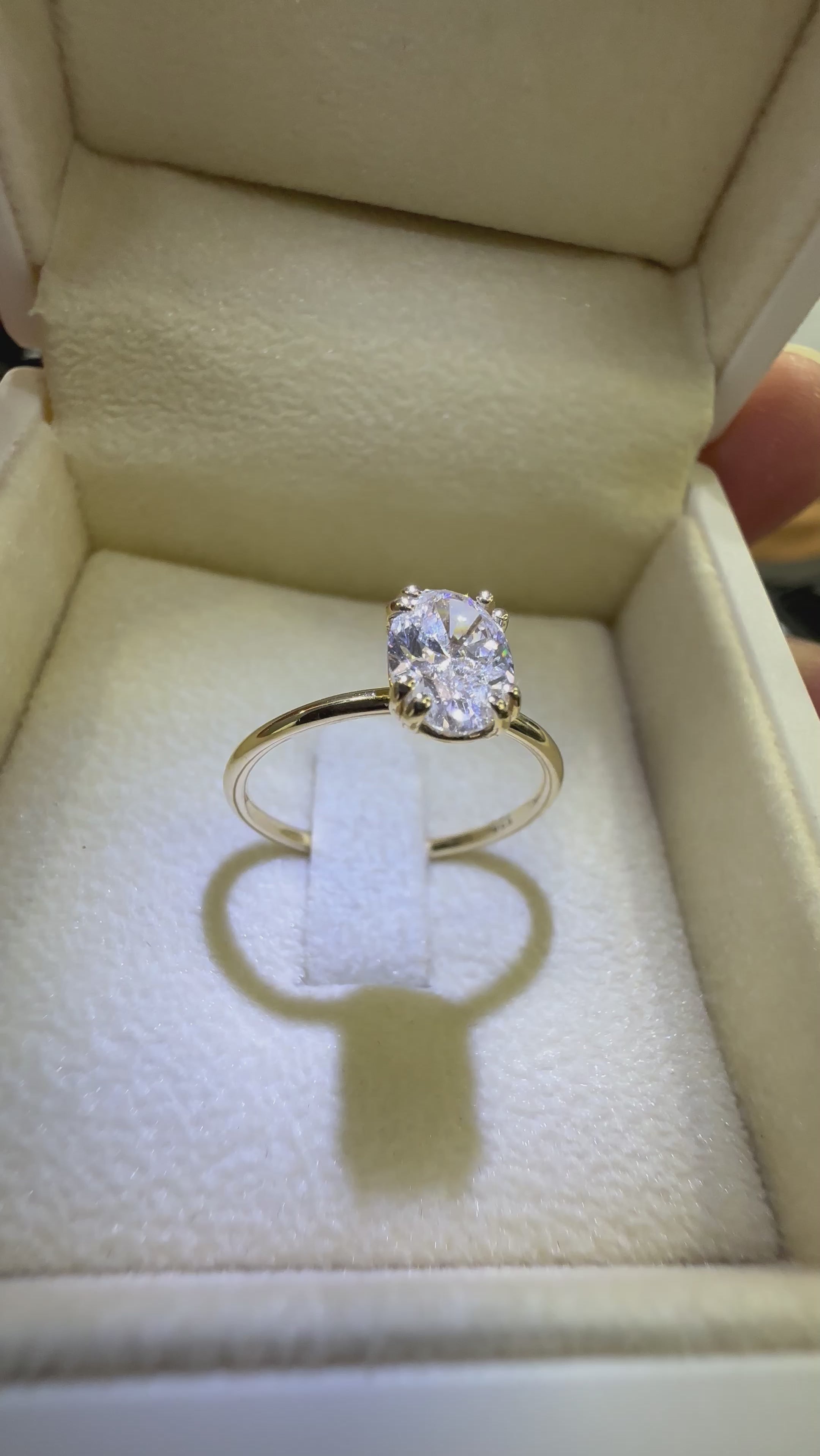 1.00 Karat Oval Kesim HRD Sertifikalı Tektaş Pırlanta Yüzük modeli, yaklaşık 3.24 gr ağırlığında 14 Ayar Sarı/Beyaz Altın kullanılarak özel olarak tasarlanmıştır.