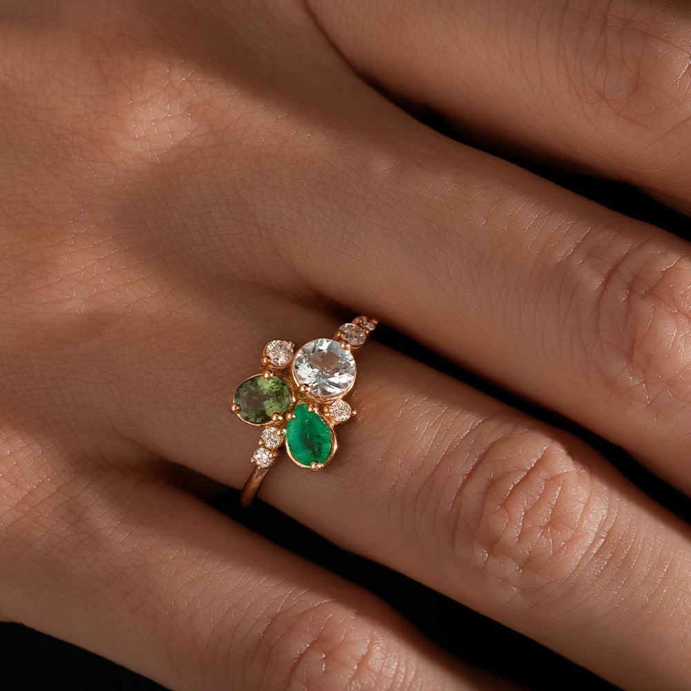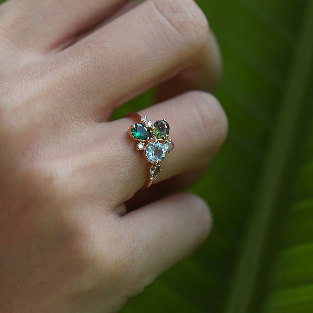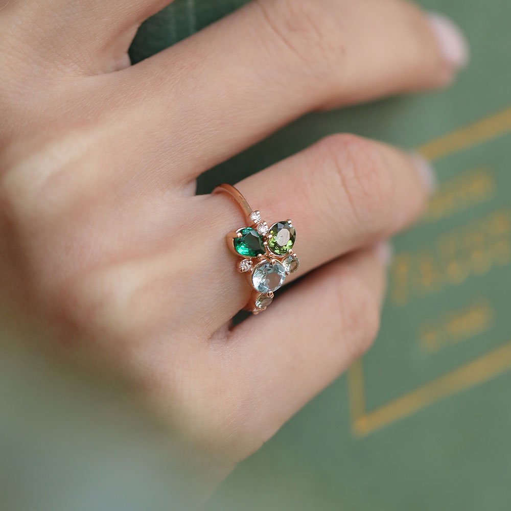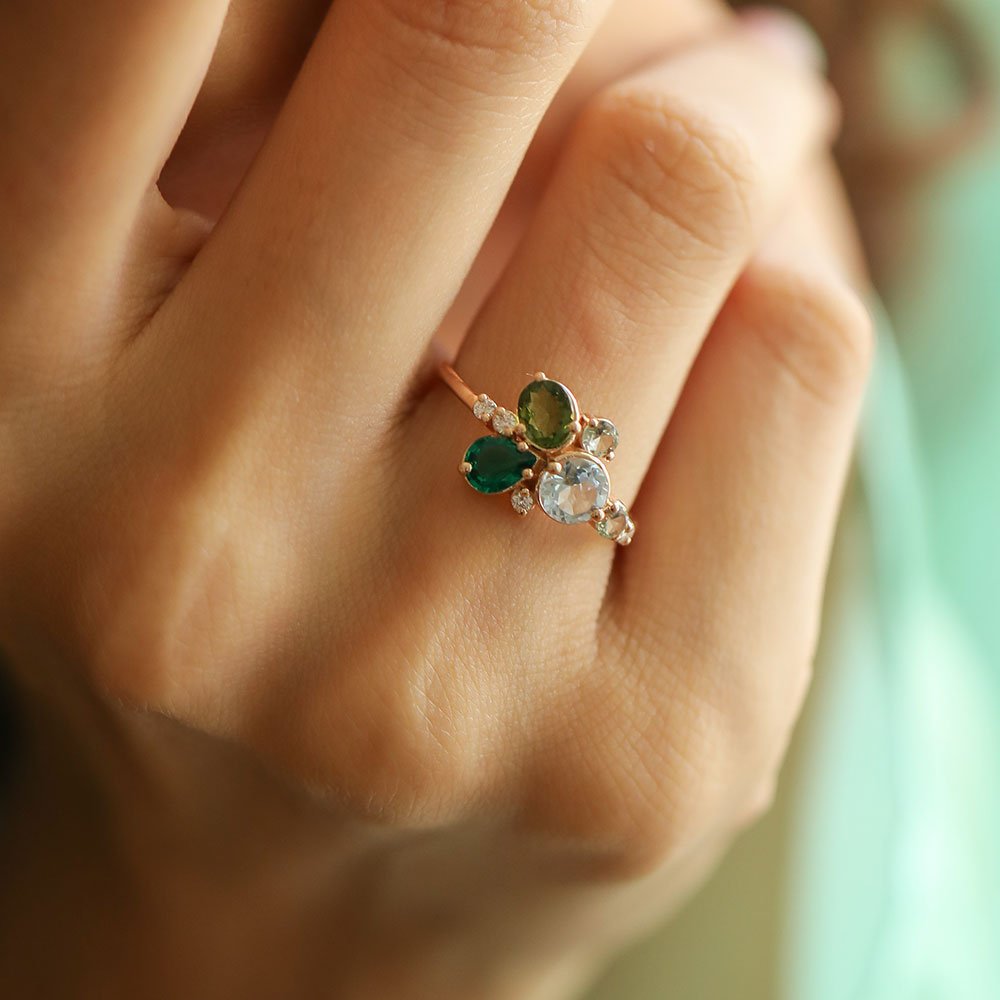 1.32 Karat Yeşilin Tonları Renkli Pırlantalı Özel Tasarım Yüzük - RNF0143