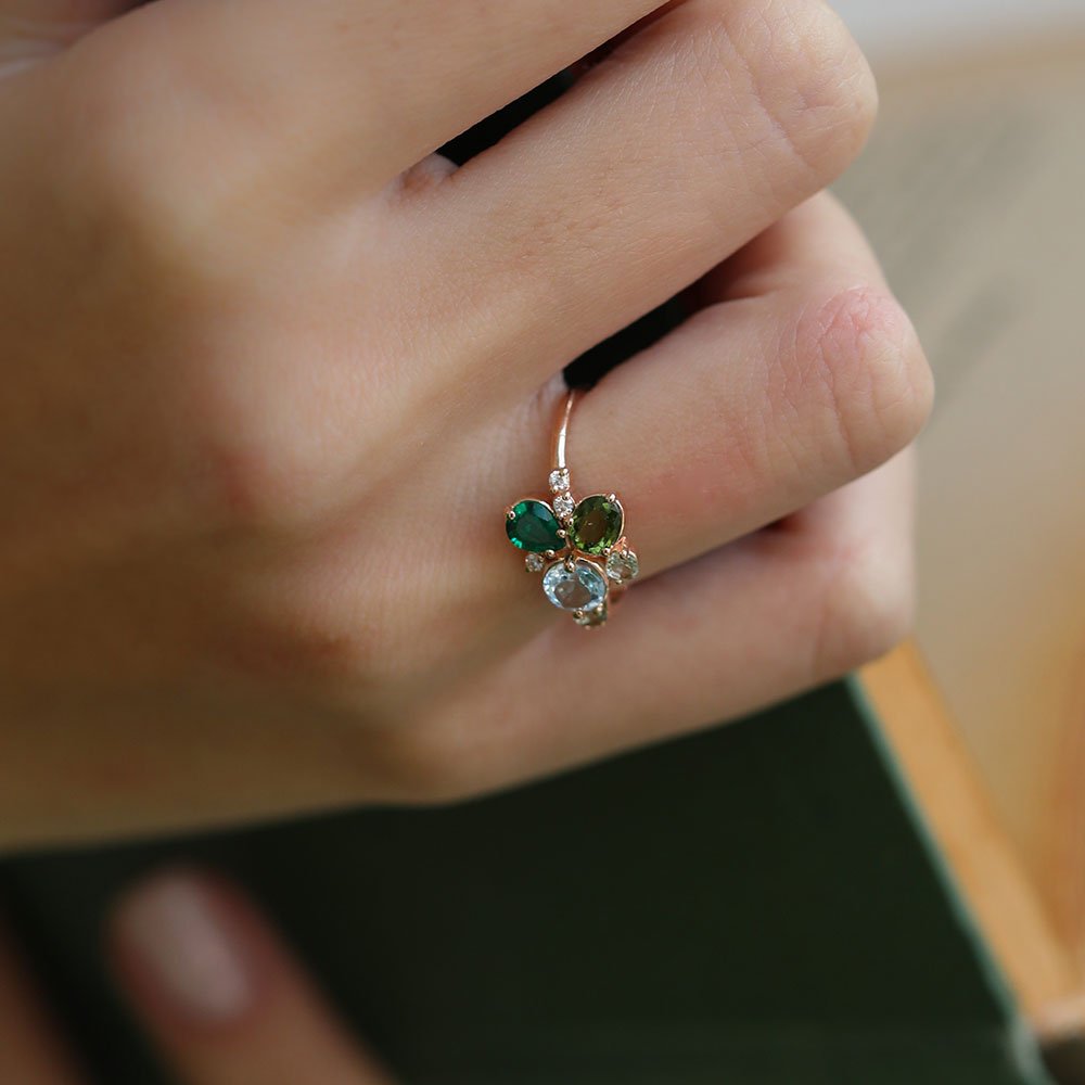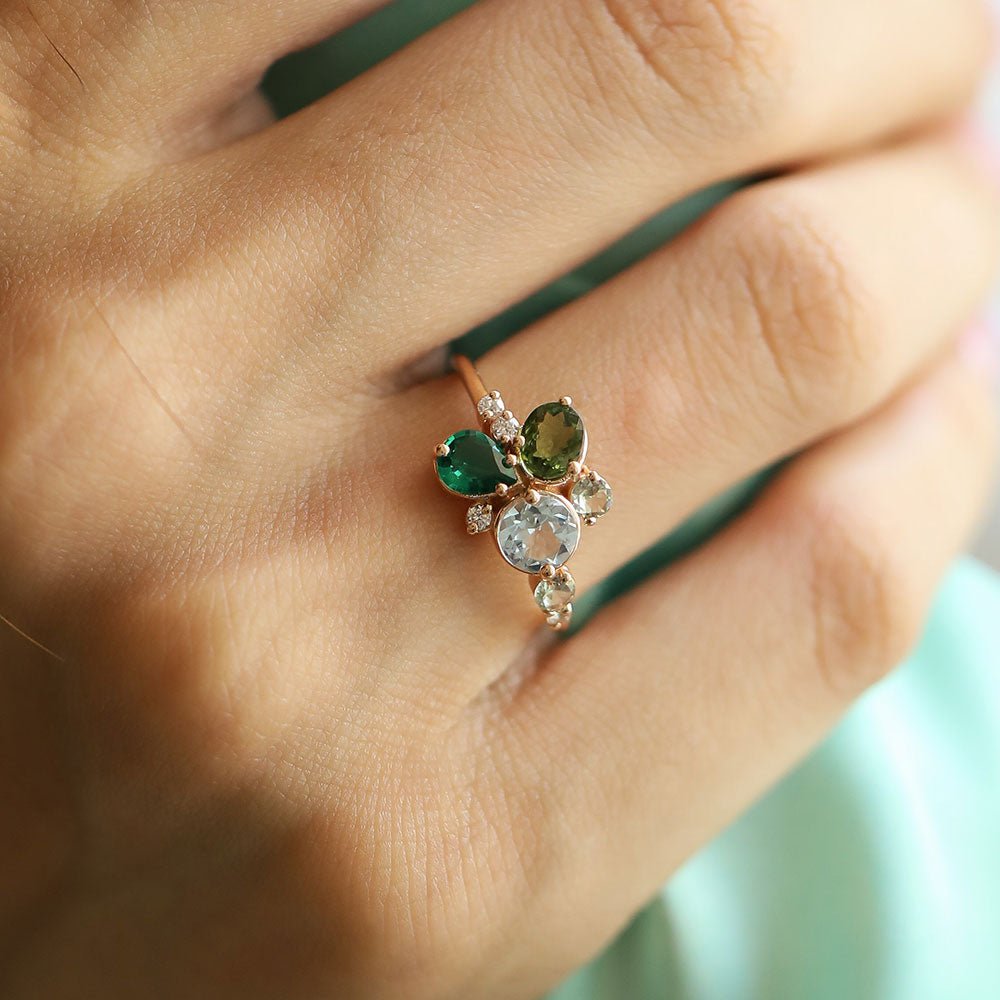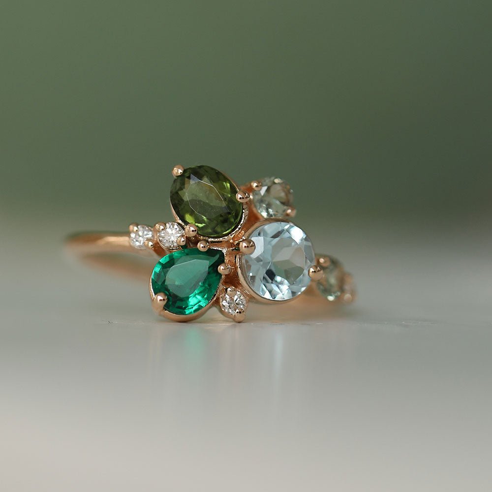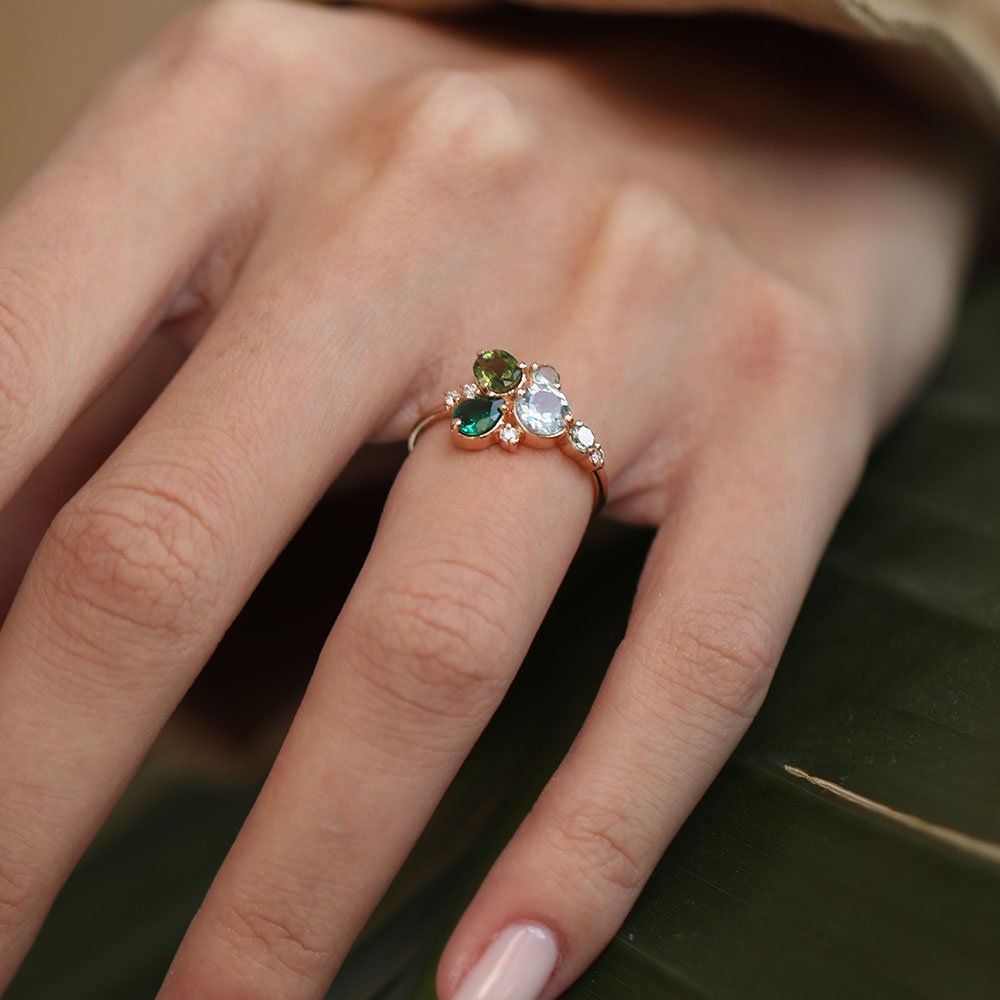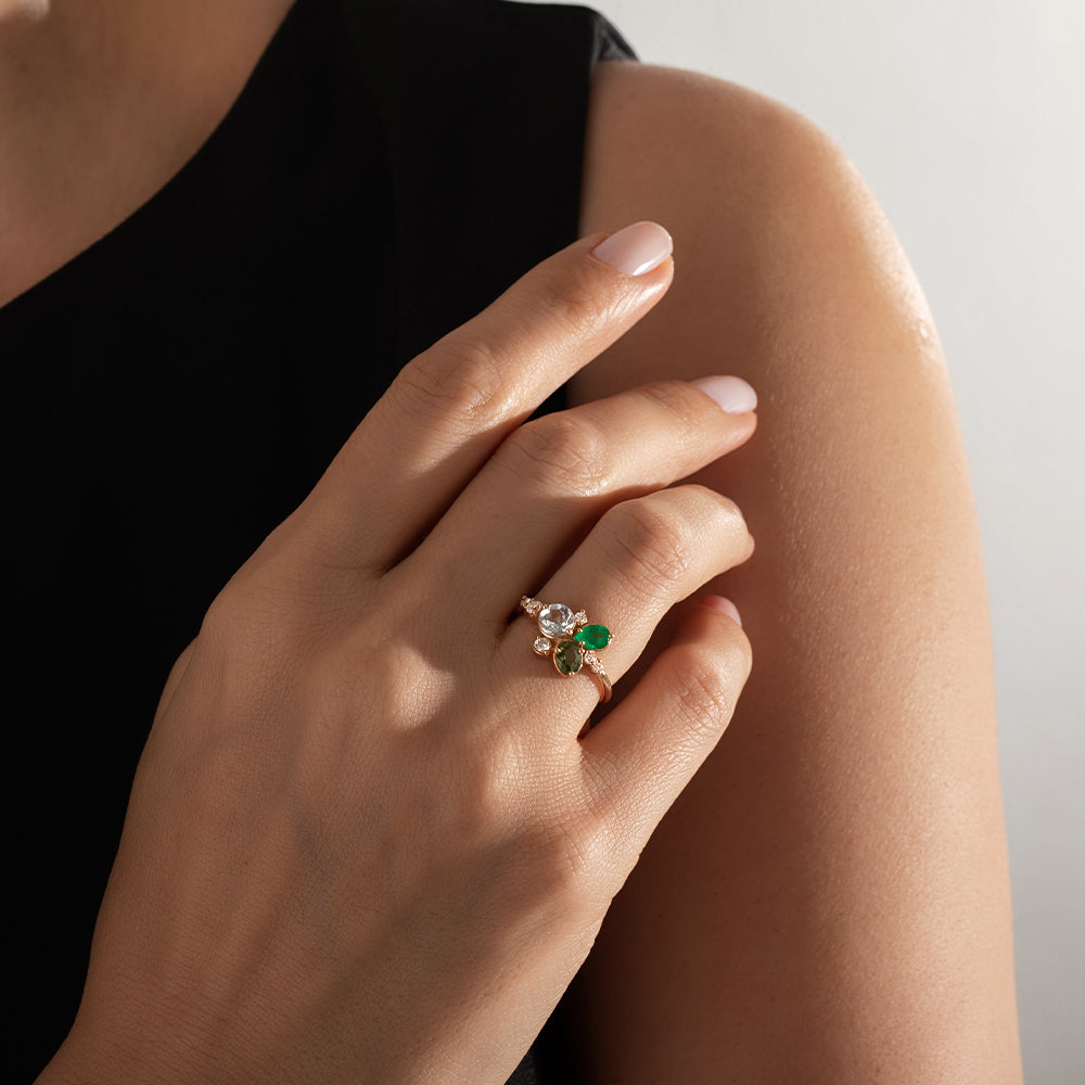 1.32 Karat Yeşilin Tonları Renkli Pırlantalı Özel Tasarım Yüzük - RNF0143