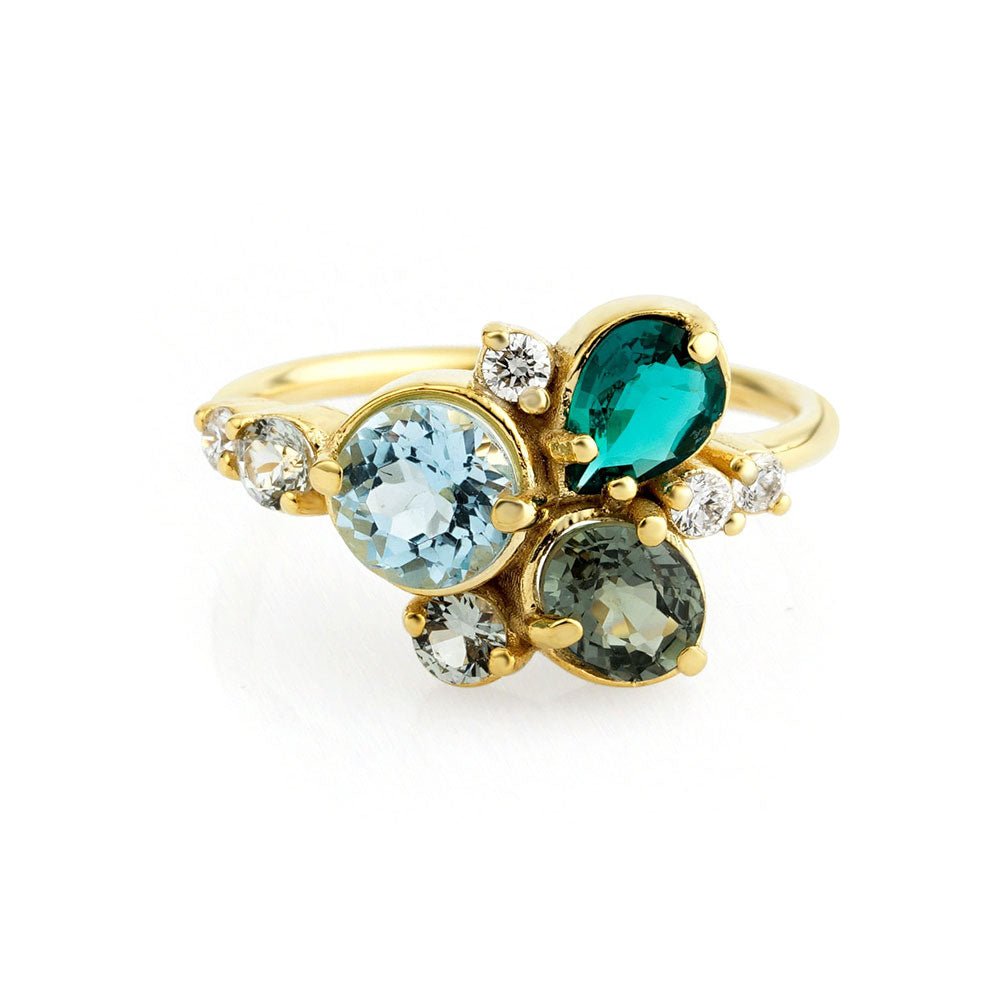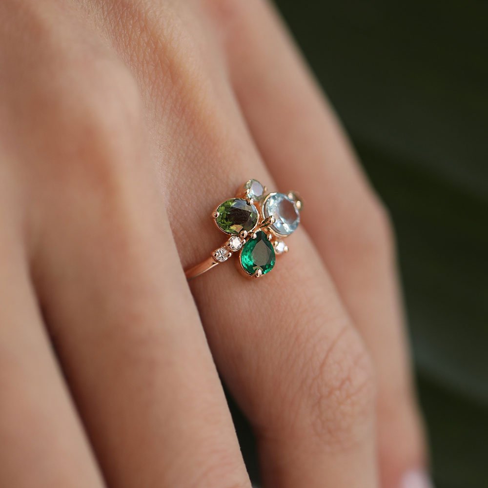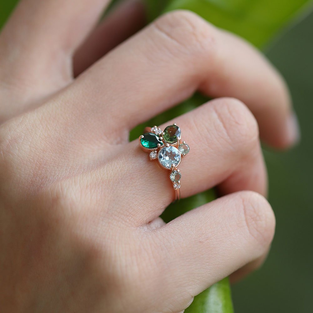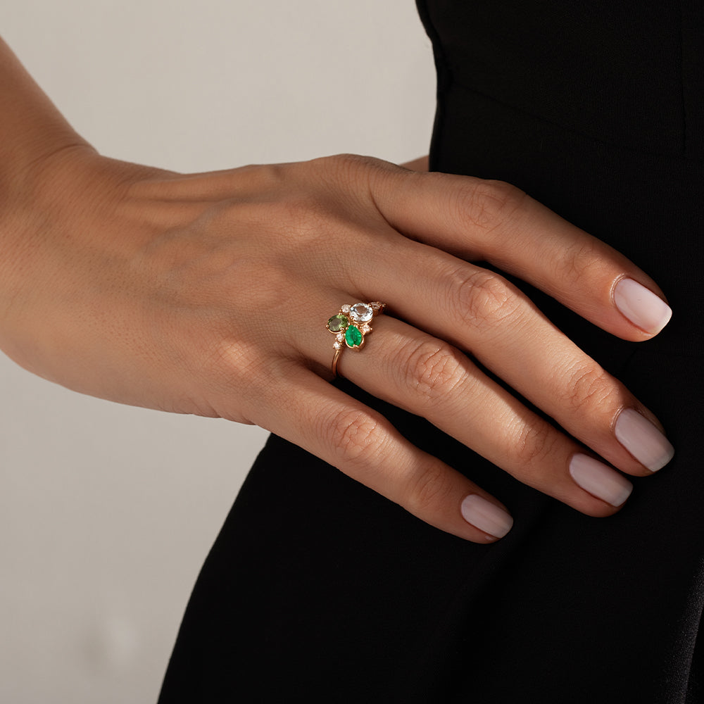 1.32 Karat Yeşilin Tonları Renkli Pırlantalı Özel Tasarım Yüzük - RNF0143