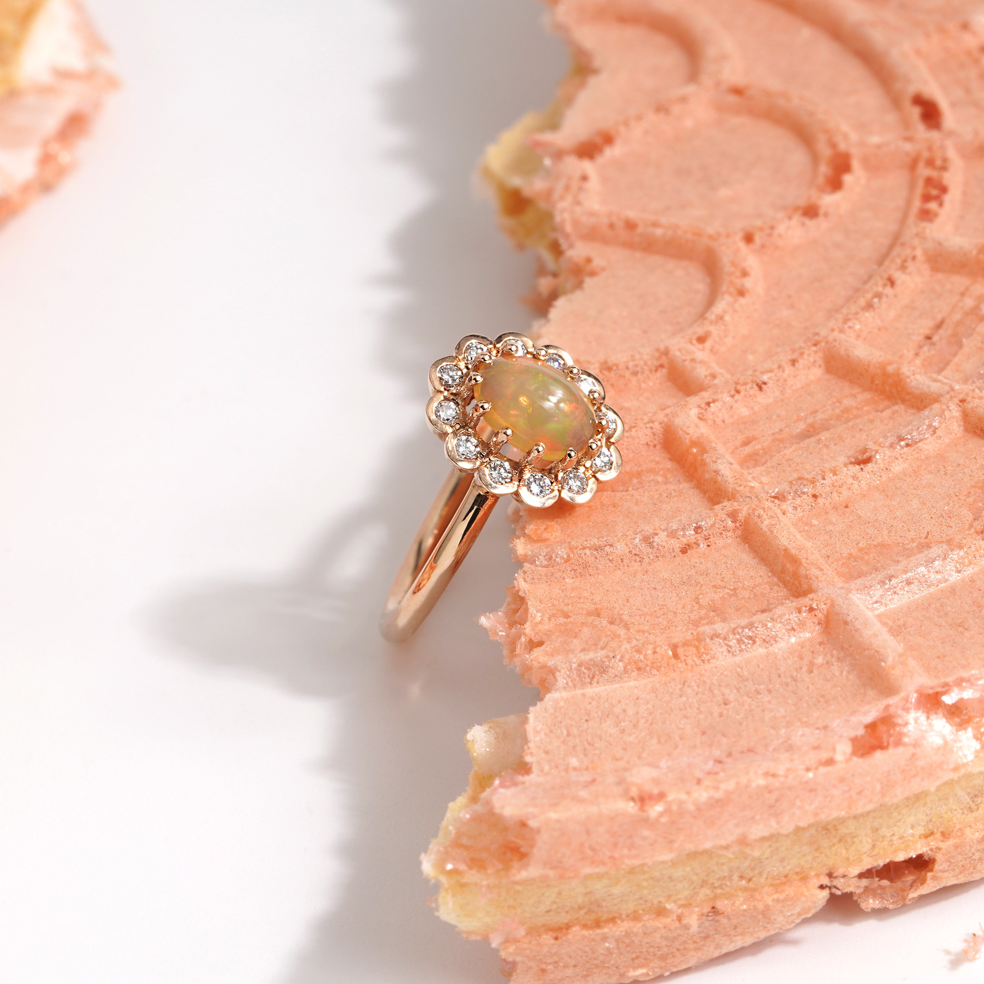 2.38 Karat Opal & 0.14 Karat Pırlantalı Yüzük modeli, yaklaşık 3.45 gr ağırlığında 14 Ayar Sarı Altın kullanılarak özel olarak tasarlanmıştır.