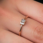 0.15 Karat Baget Pırlantalı Mini Yüzük modeli, yaklaşık 1.94 gr ağırlığında 14 Ayar Rose Altın kullanılarak özel olarak tasarlanmıştır.