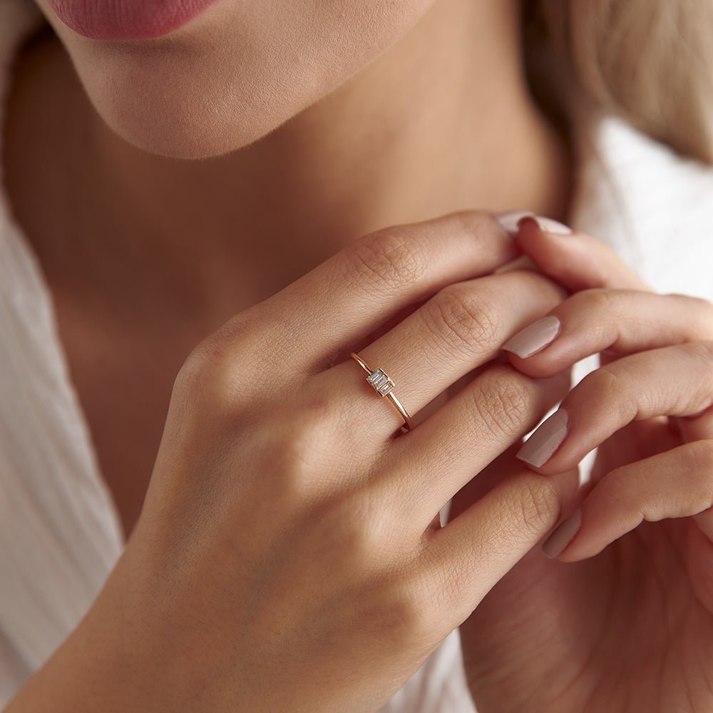 0.15 Karat Baget Pırlantalı Mini Yüzük - RNF0291