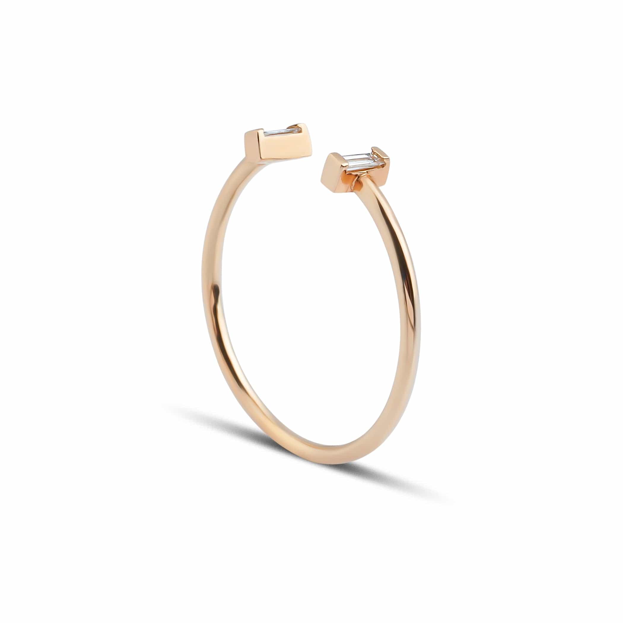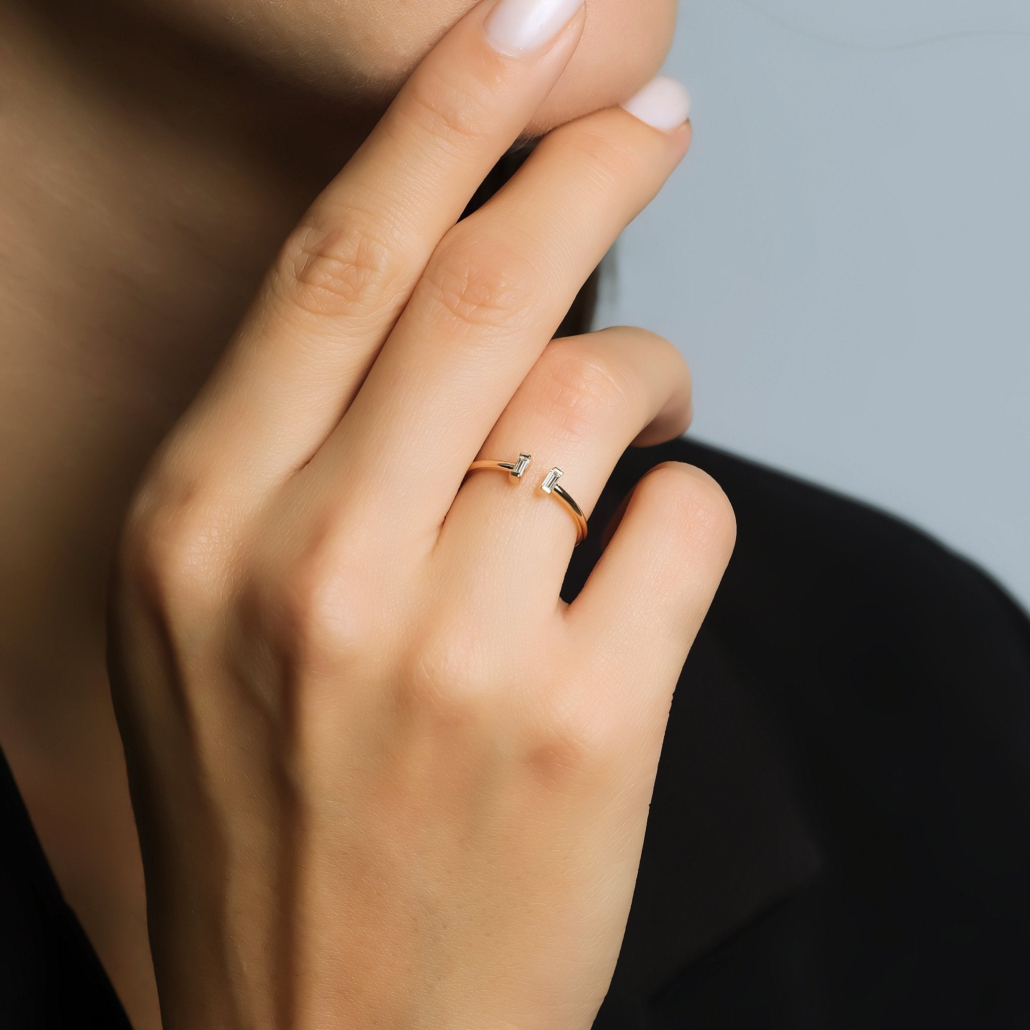 0.08 Karat Baget Pırlantalı Yüzük modeli, yaklaşık 1.80 gr ağırlığında 14 Ayar Rose Altın kullanılarak özel olarak tasarlanmıştır.