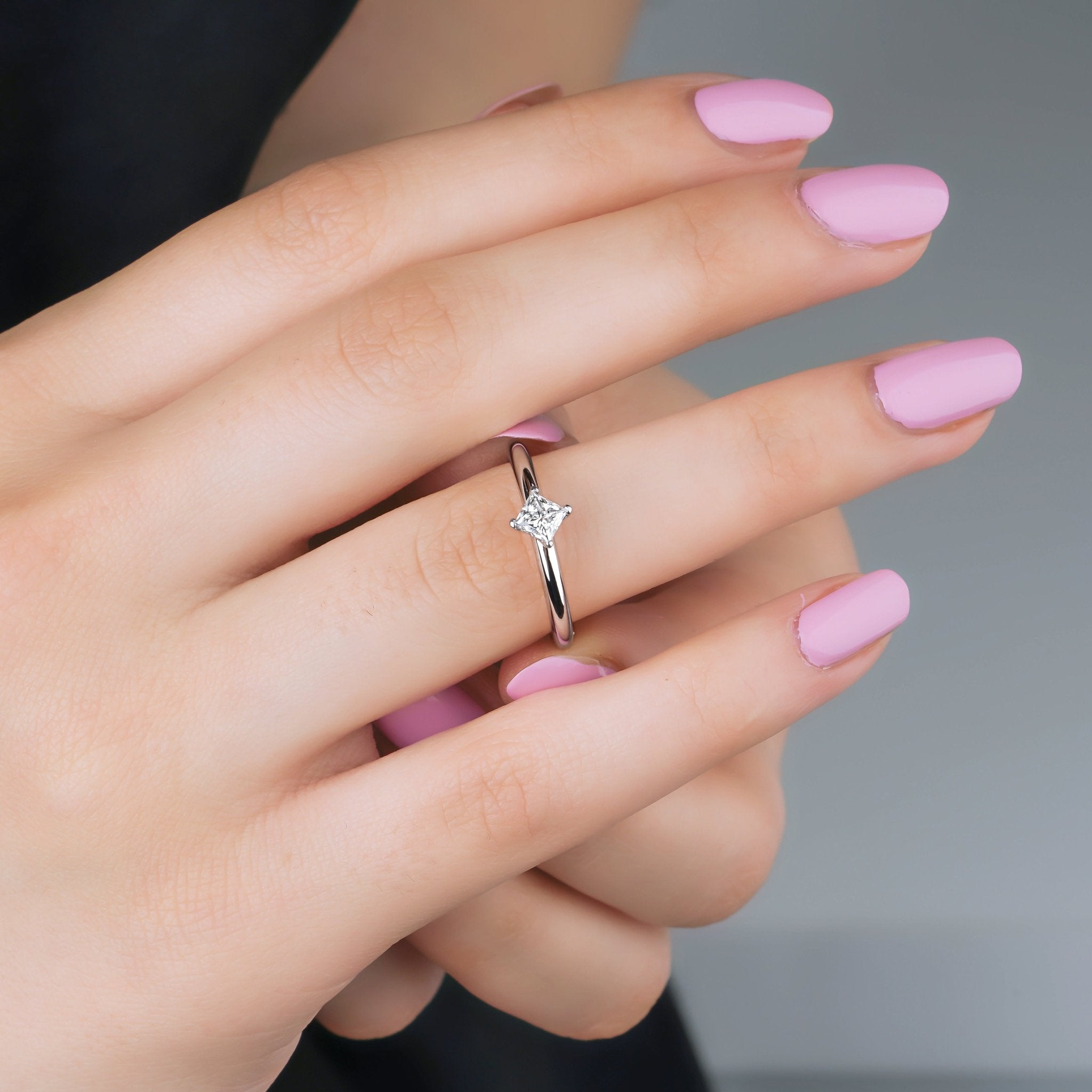 0.30 Karat Prenses Kesim HRD Sertifikalı Pırlanta Tektaş Yüzük - RNF0393
