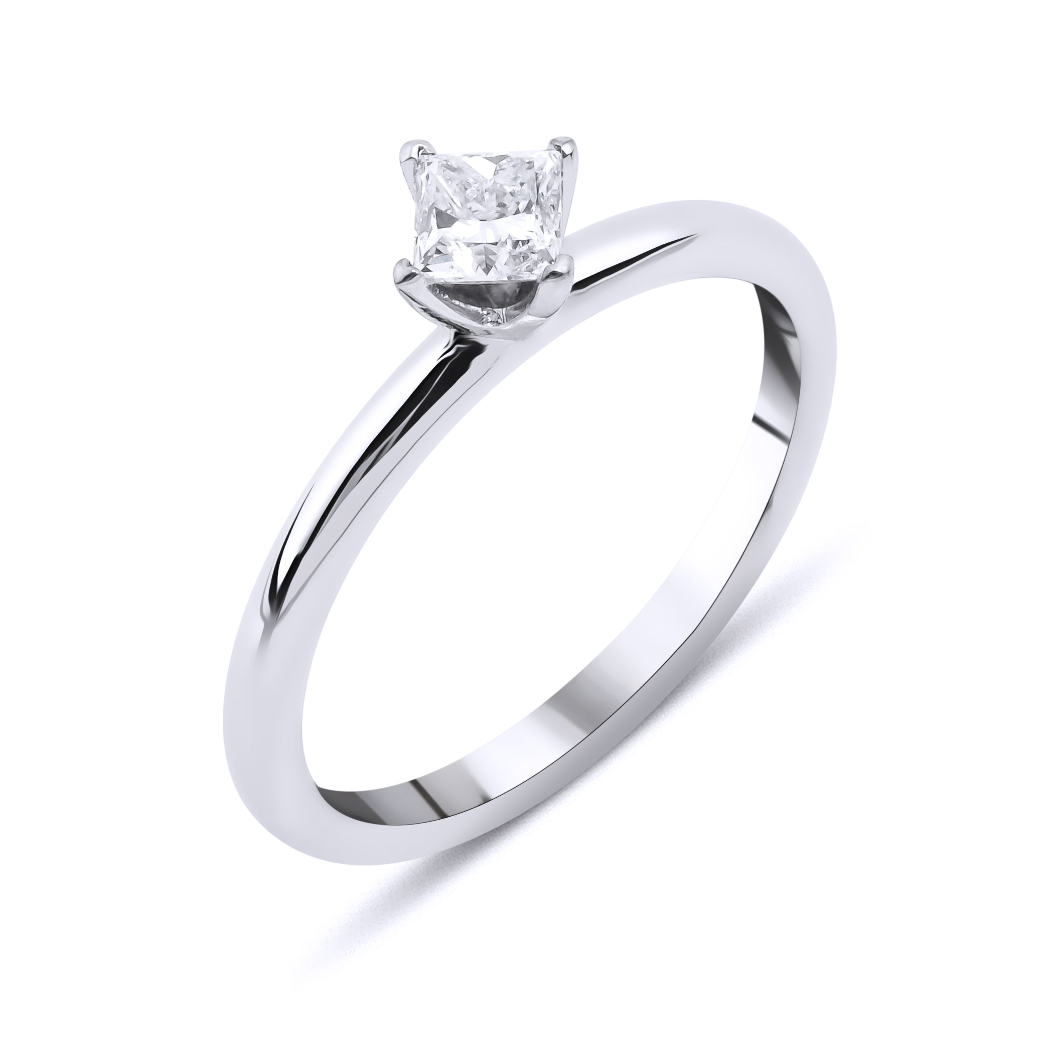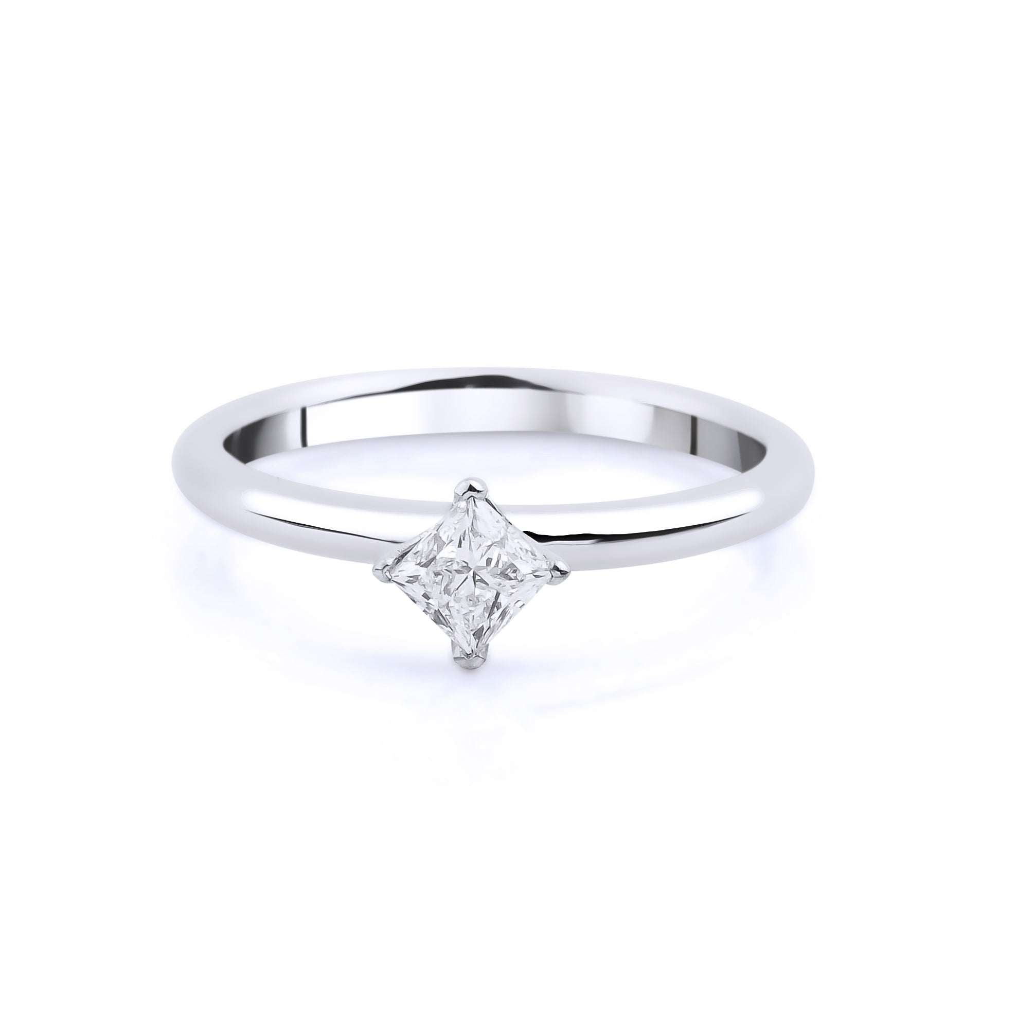 0.30 Karat Prenses Kesim HRD Sertifikalı Pırlanta Tektaş Yüzük modeli, yaklaşık 2.00 gr ağırlığında 14 Ayar Beyaz Altın kullanılarak özel olarak tasarlanmıştır.