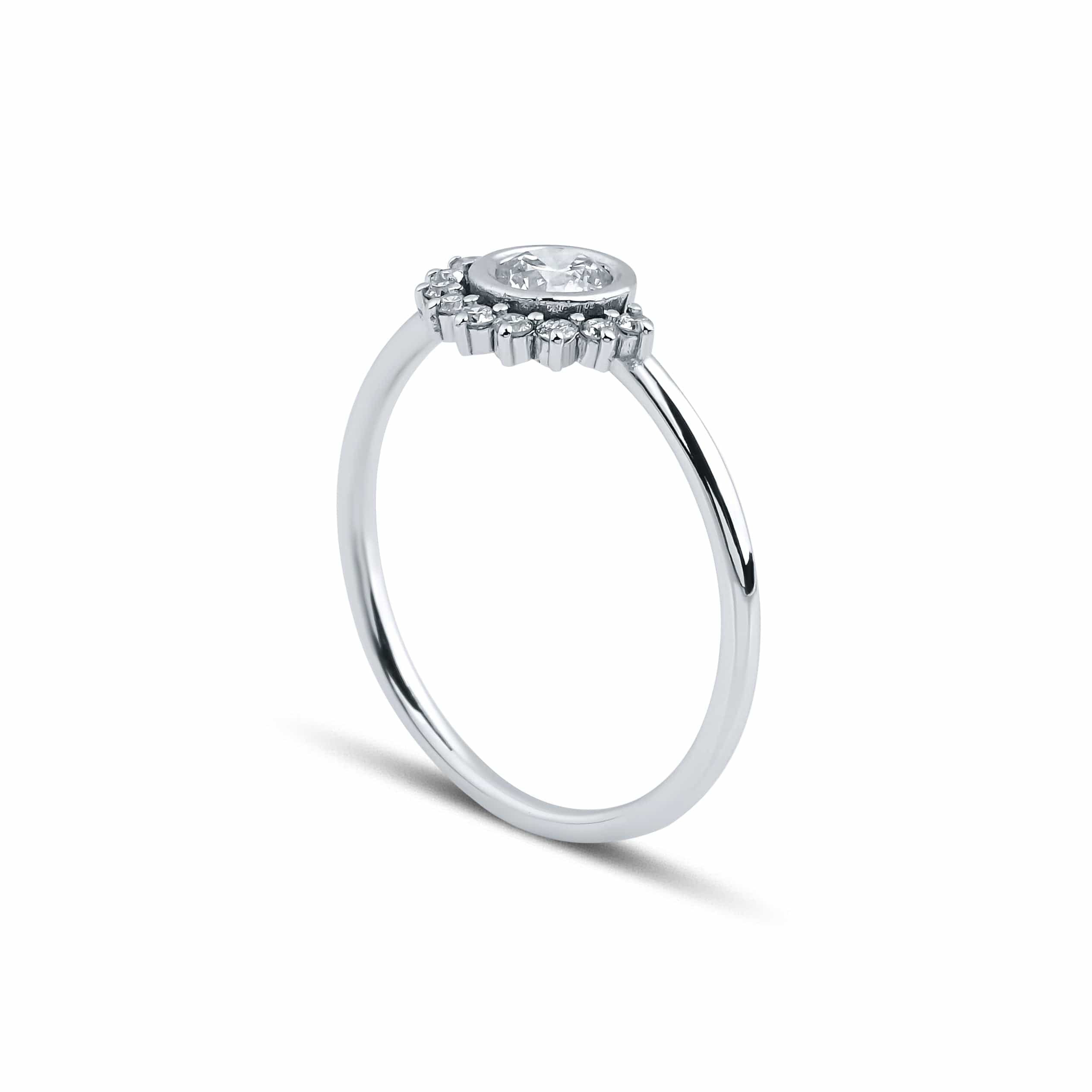 0.38 Karat Yuvarlak Pırlantalı Vintage Yüzük modeli, yaklaşık 2.38 gr ağırlığında 14 Ayar Beyaz Altın kullanılarak özel olarak tasarlanmıştır.