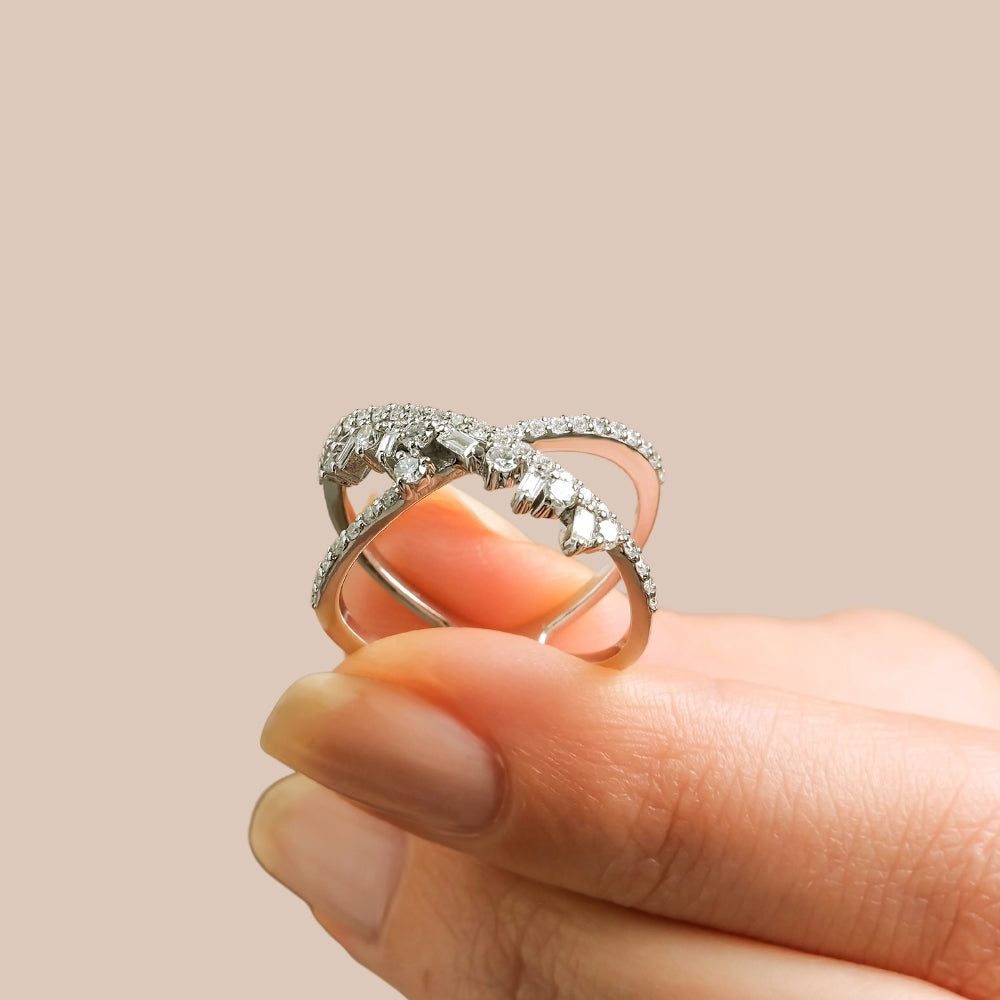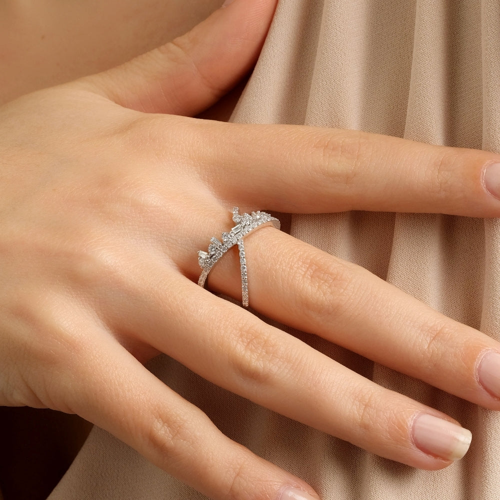 0.67 Karat Pırlanta Yüzük modeli, yaklaşık 4.00 gr ağırlığında 14 Ayar Beyaz Altın kullanılarak özel olarak tasarlanmıştır.