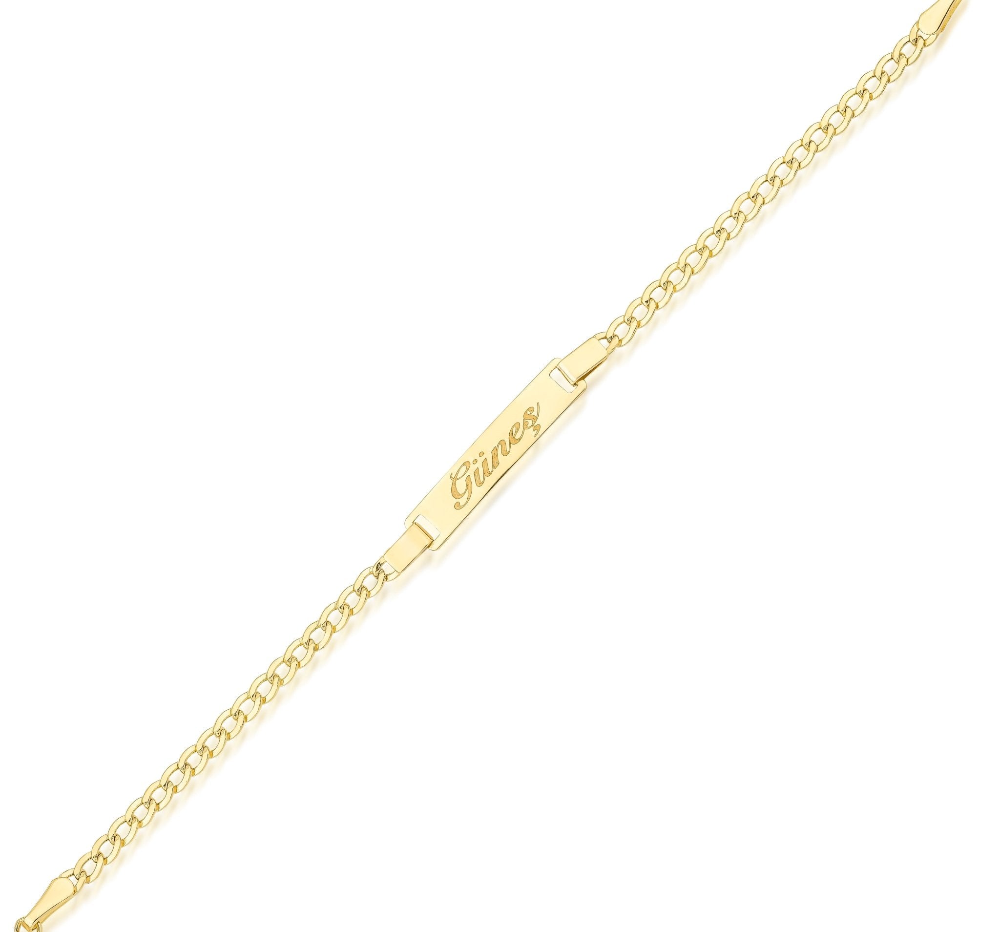 The 14 Carat Yellow Gold Named Child Tag model is specially designed using 14 Carat Yellow Gold weighing approximately 2.52 gr.