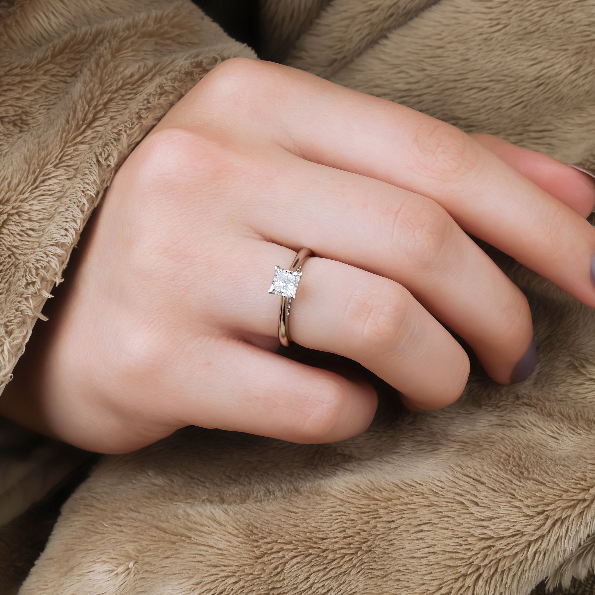Each product from the Princess (Square) Solitaire collection you purchase will be delivered to you safely, with a warranty certificate and an elegant jewelry box, with free and insured shipping.