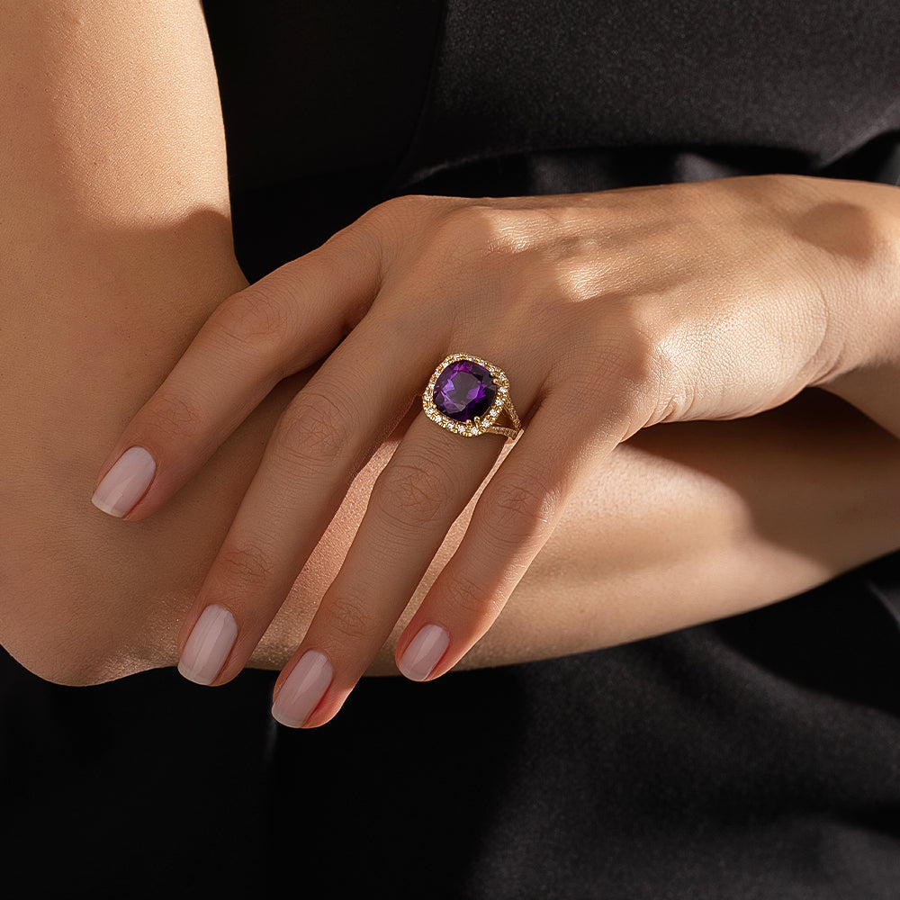8.00 Carat Purple Amethyst & 0.60 Carat Edge Diamond Design Ring model is specially designed using 14 Carat Yellow Gold weighing approximately 9.00 gr.