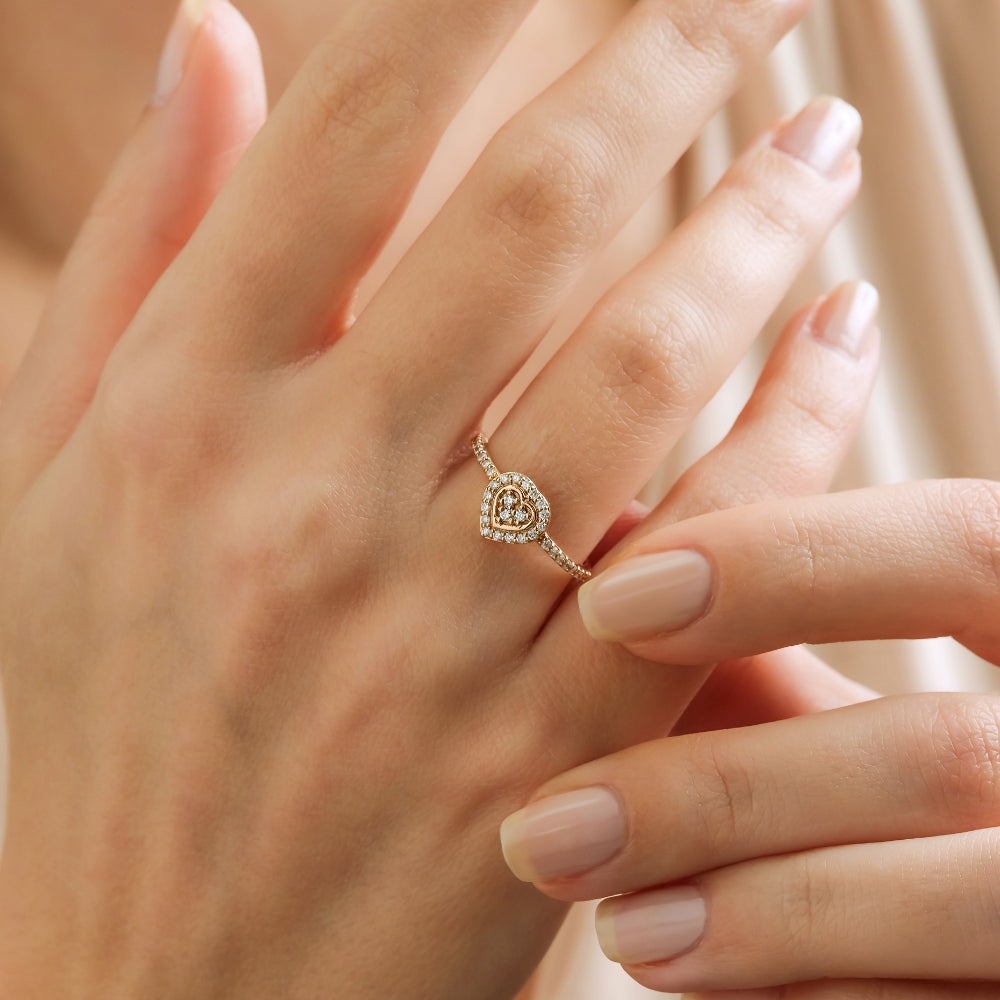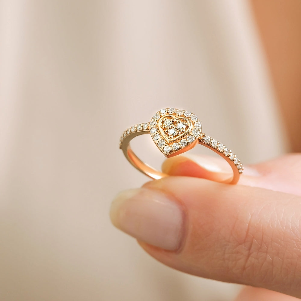 The 0.26 Carat Heart Diamond Ring model is specially designed using 14 Carat Rose Gold weighing approximately 2.13 grams.