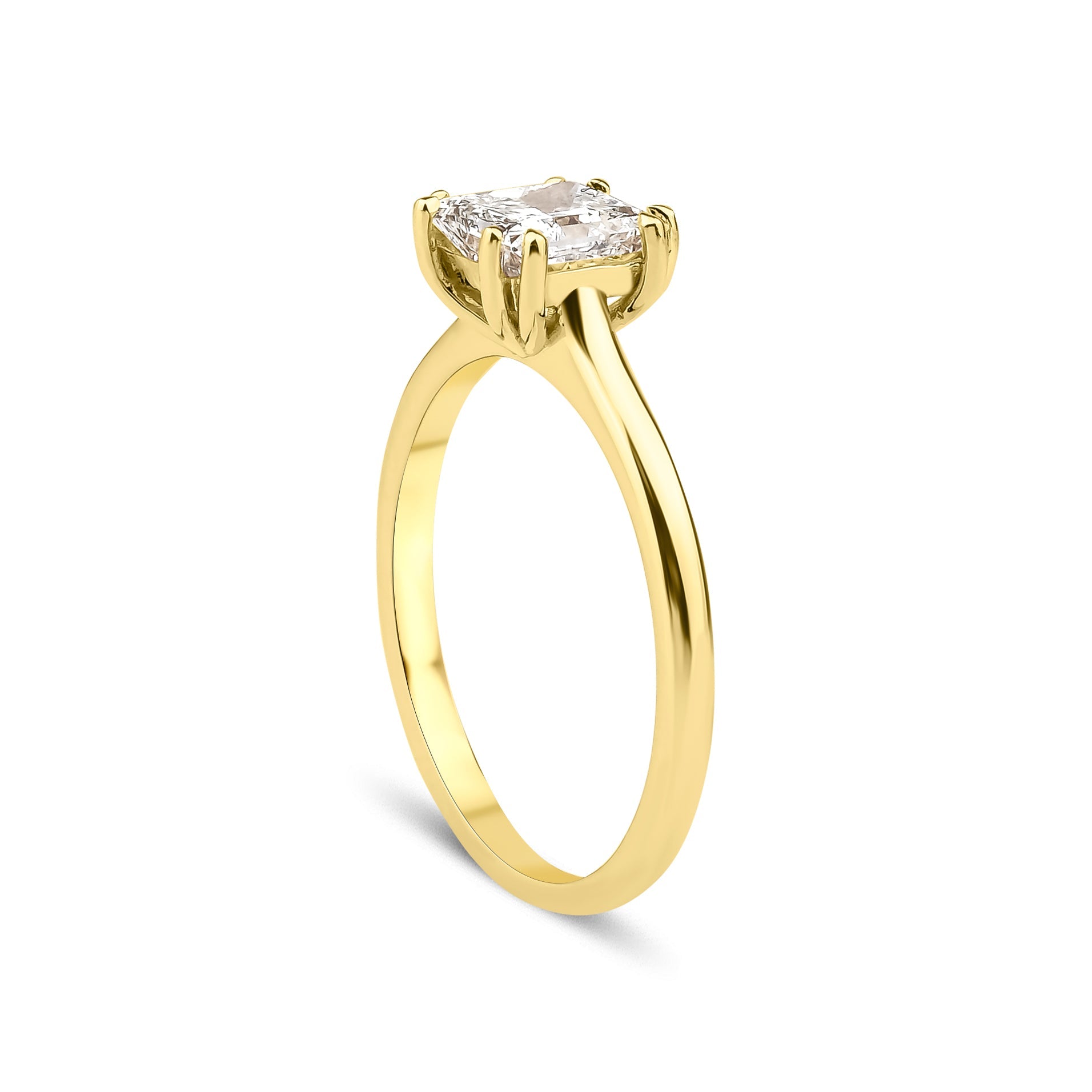 The 1.20 Carat Princess (square) Cut Solitaire Diamond Ring model is specially designed using 14 Carat Yellow Gold weighing approximately 2.80 grams.