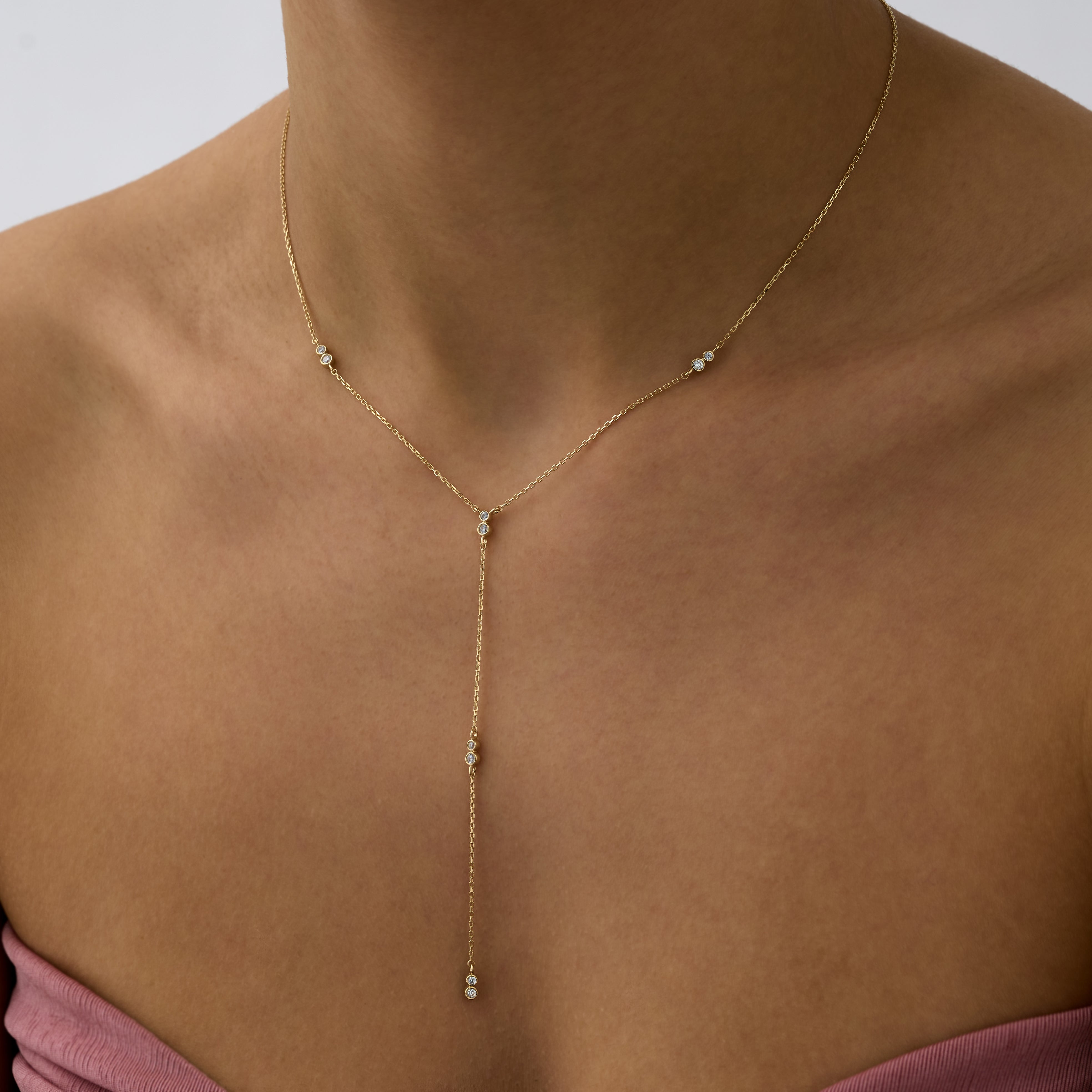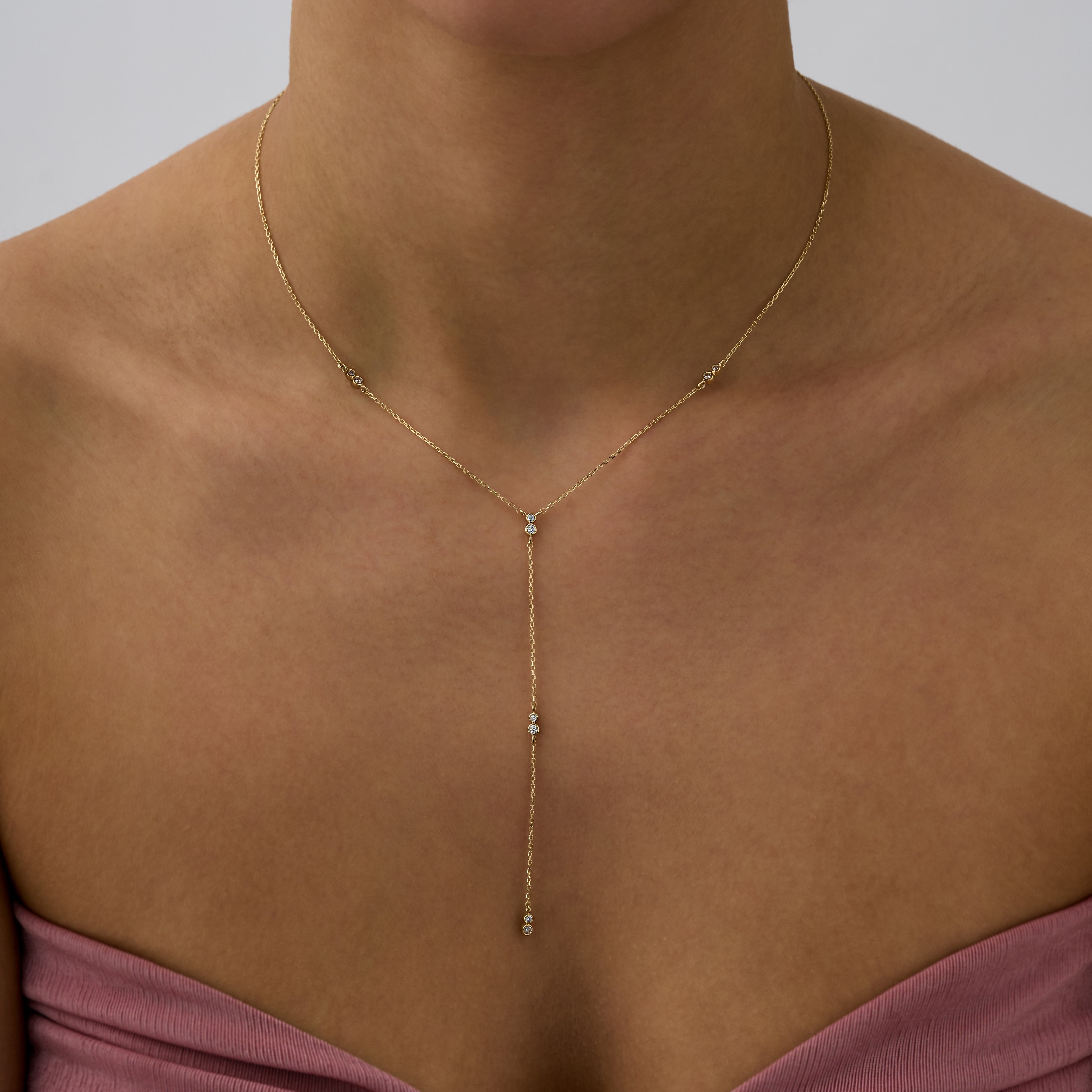 Şelale Zincir Detaylı Pırlanta Kolye modeli, yaklaşık 2.77 gr ağırlığında 14 Ayar Sarı Altın kullanılarak özel olarak tasarlanmıştır.