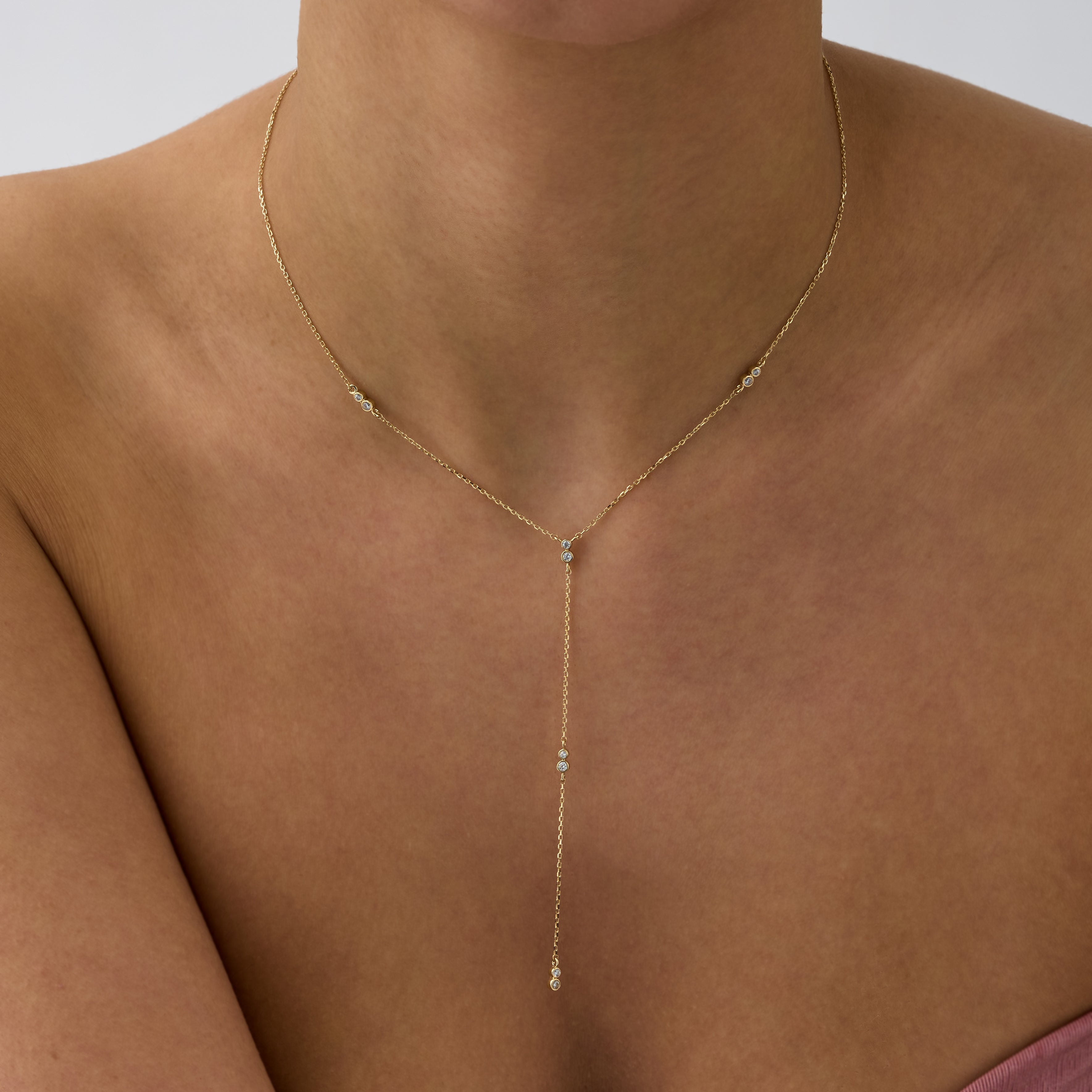 14 Ayar Altın Şelale Zincir Detaylı Pırlanta Kolye RG078