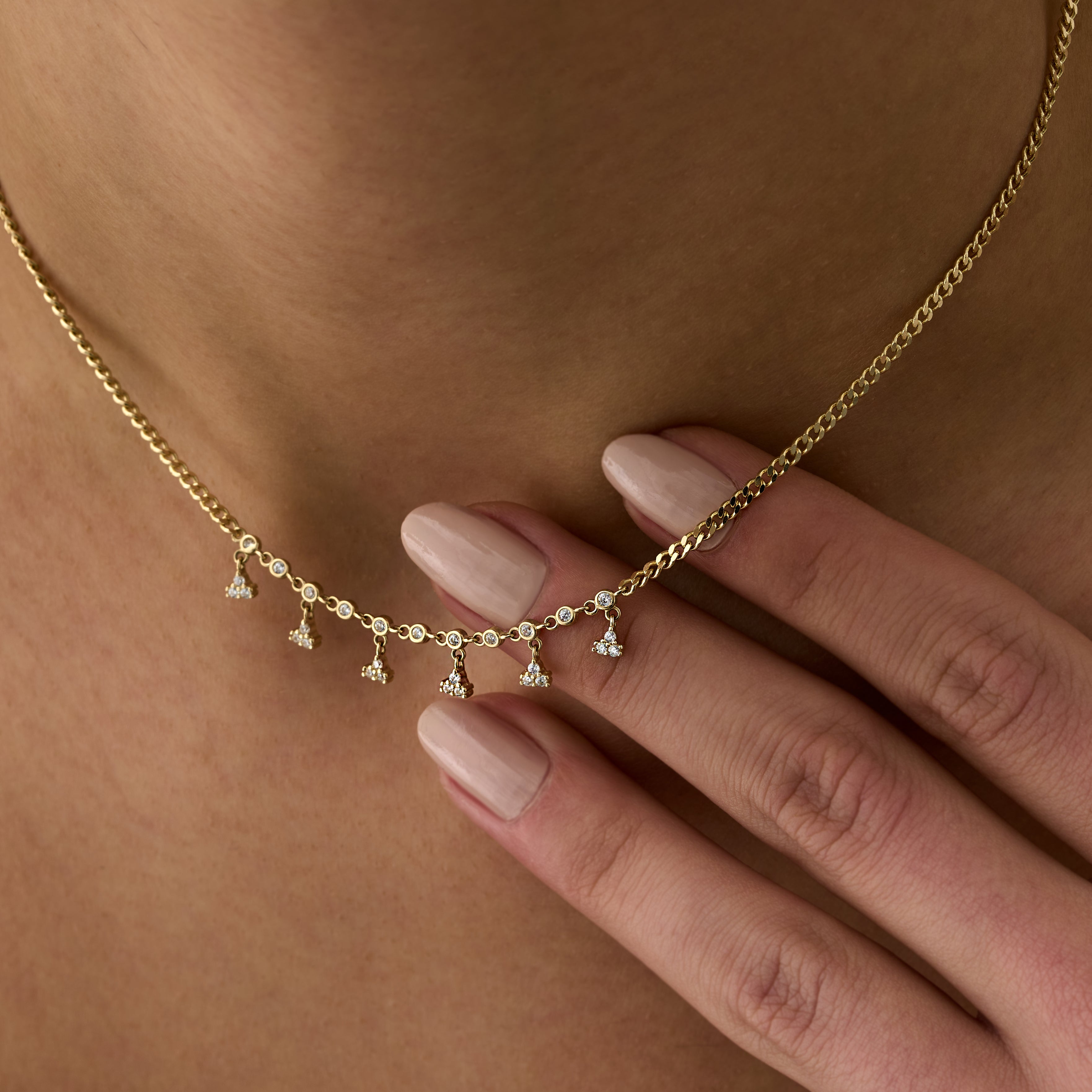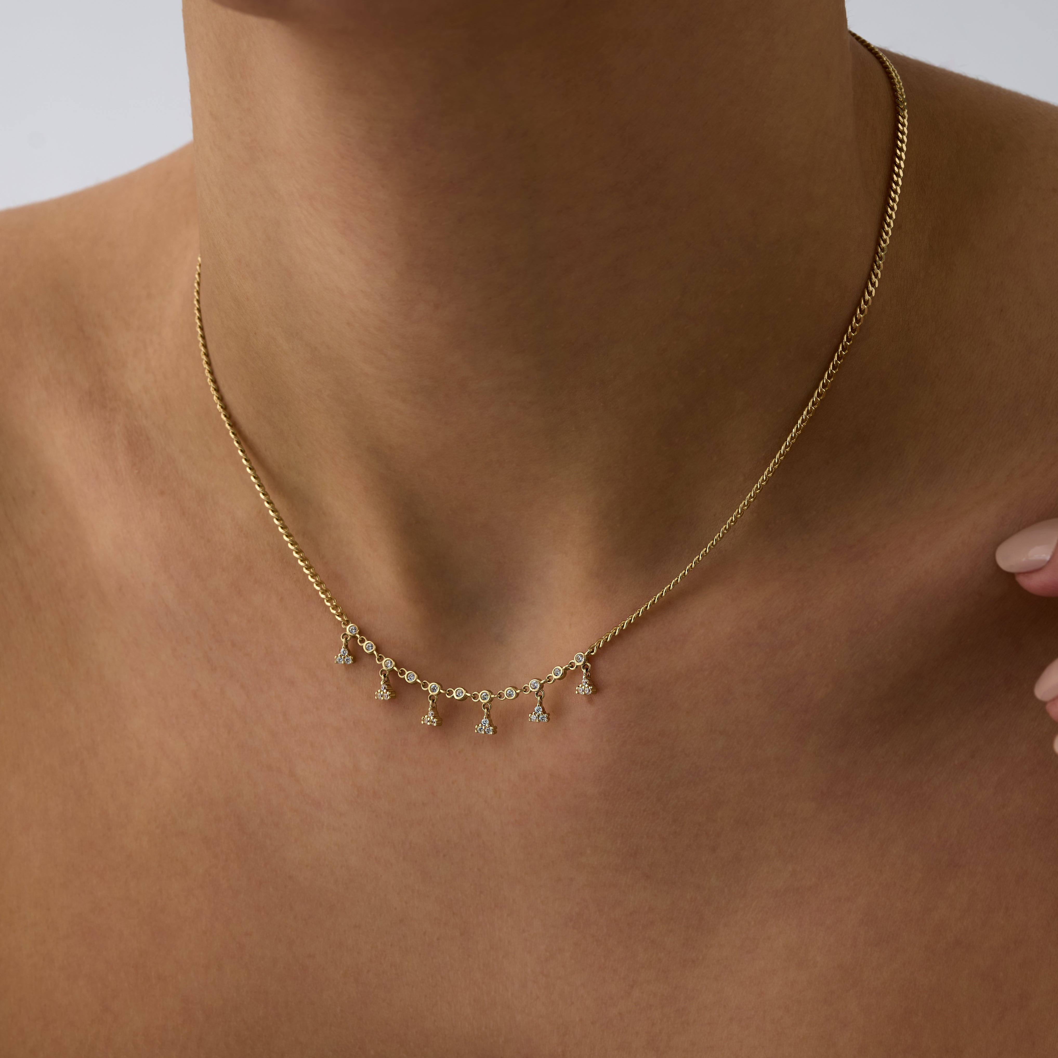 Üçgen Taş Sallantılı Minimal Kolye modeli, yaklaşık 6.73 gr ağırlığında 14 Ayar Sarı Altın kullanılarak özel olarak tasarlanmıştır.